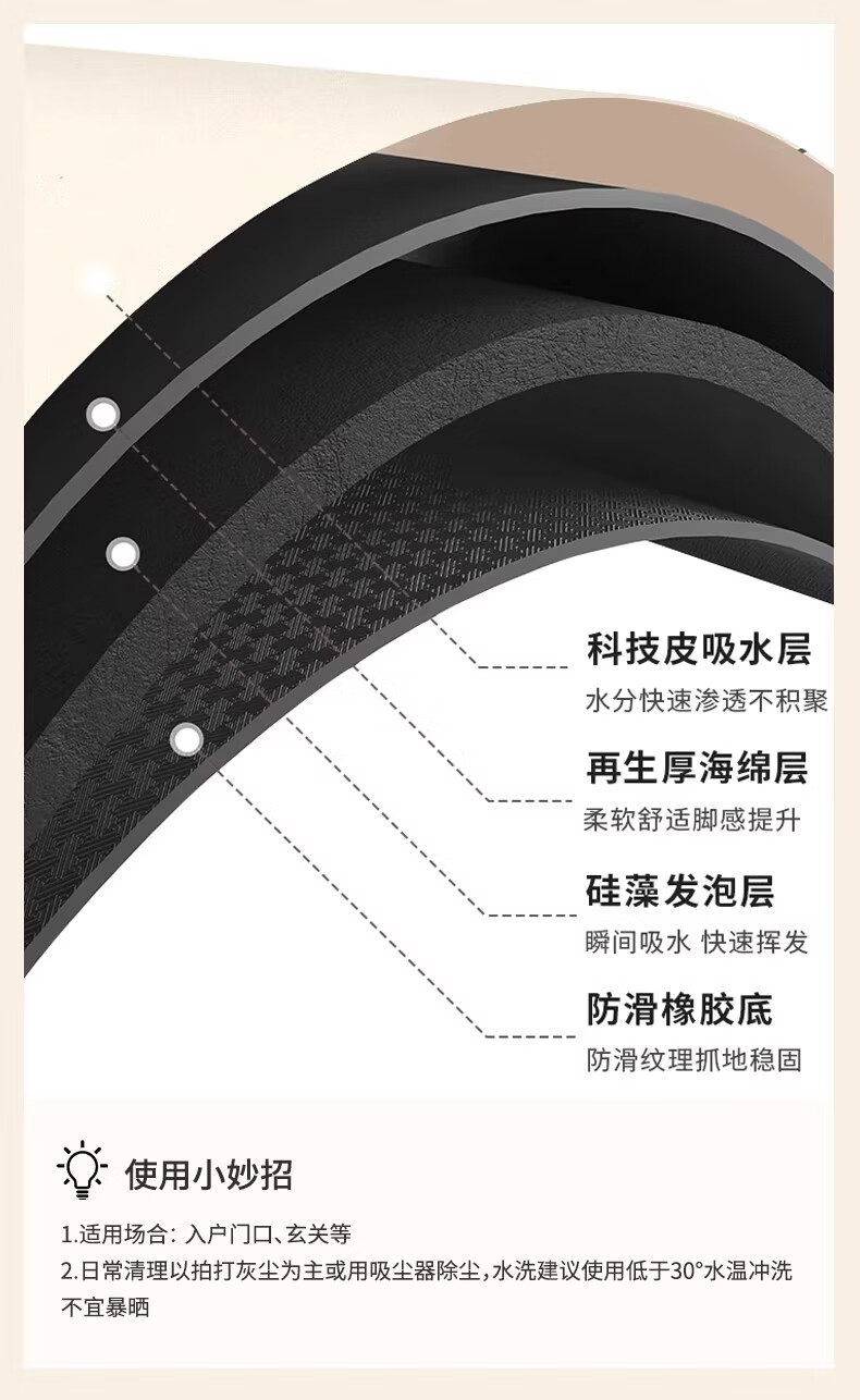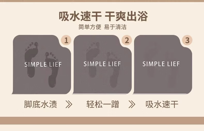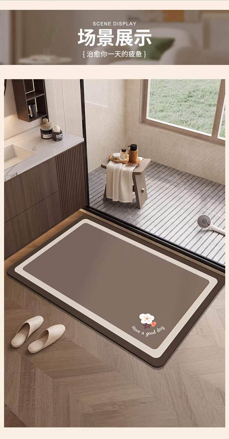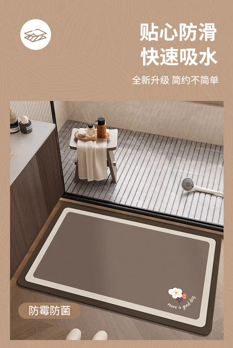 金玉铭川浴室地垫家用卫浴吸水垫速干防滑垫子卫生间厕所耐脏可擦免洗脚垫 GZN-小花-方形 40X60cm【吸水速干防滑】