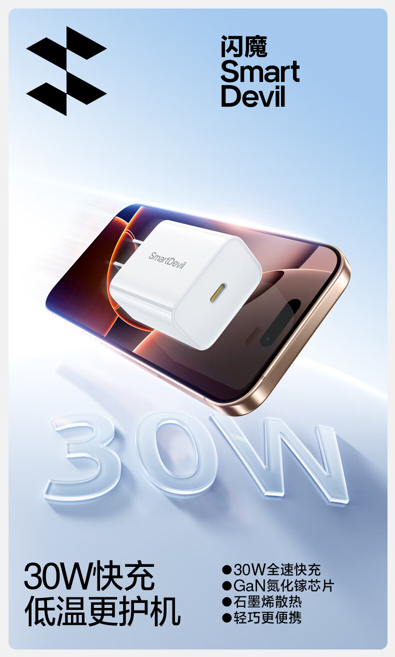 闪魔适用苹果17/16/15充电器头30W兼容20W氮化镓套装iPhone17/16/15proMax电源适配器快充数据线Type-C 【苹果15-17套装】充电器+1.2M100W线