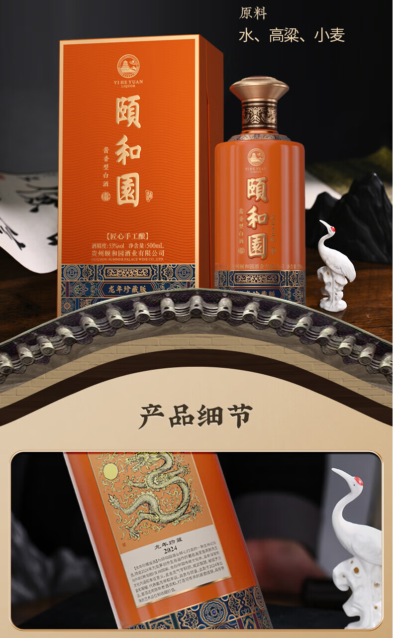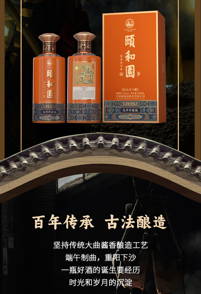 頤和園 颐和园白酒 53度500ml 酱香型白酒 礼盒装 53度 500mL 1瓶 2024年 龙酒(珍藏版)