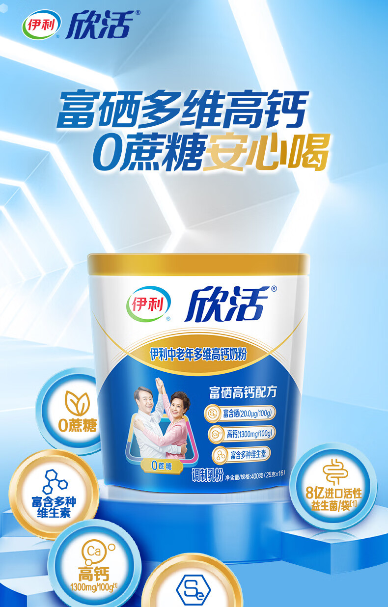 伊利欣活中老年多维高钙奶粉 中老年奶粉 年货节送礼 营养品高钙 400g