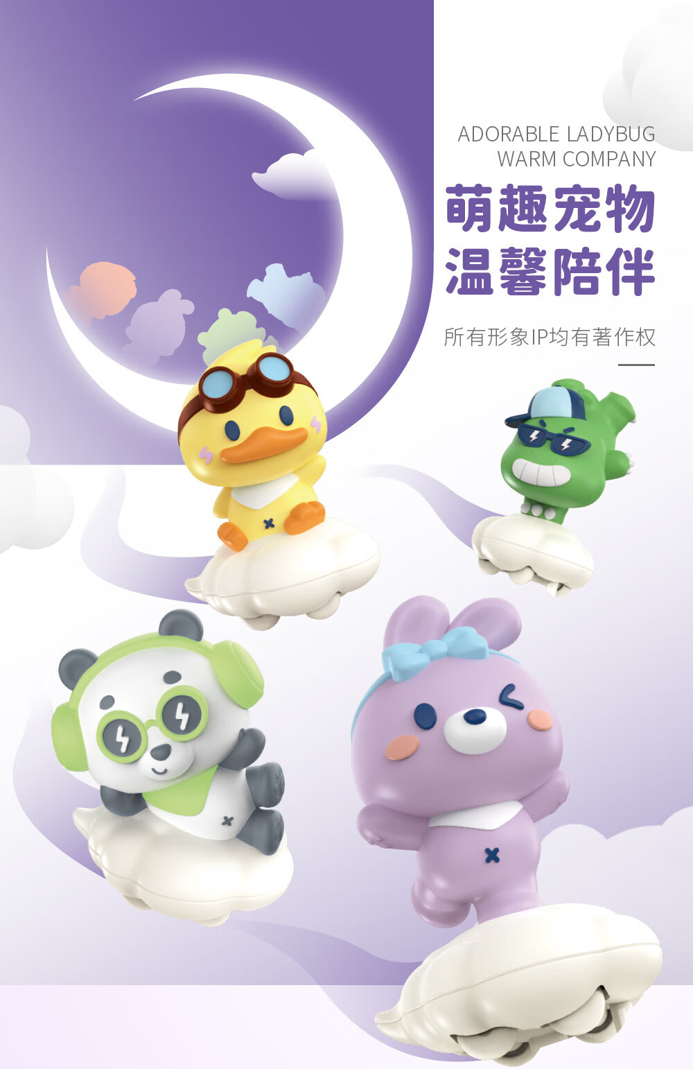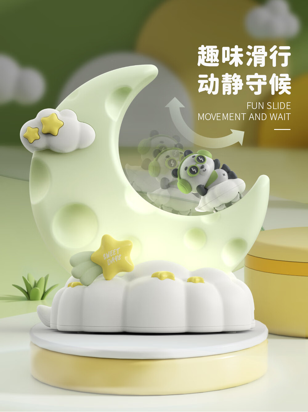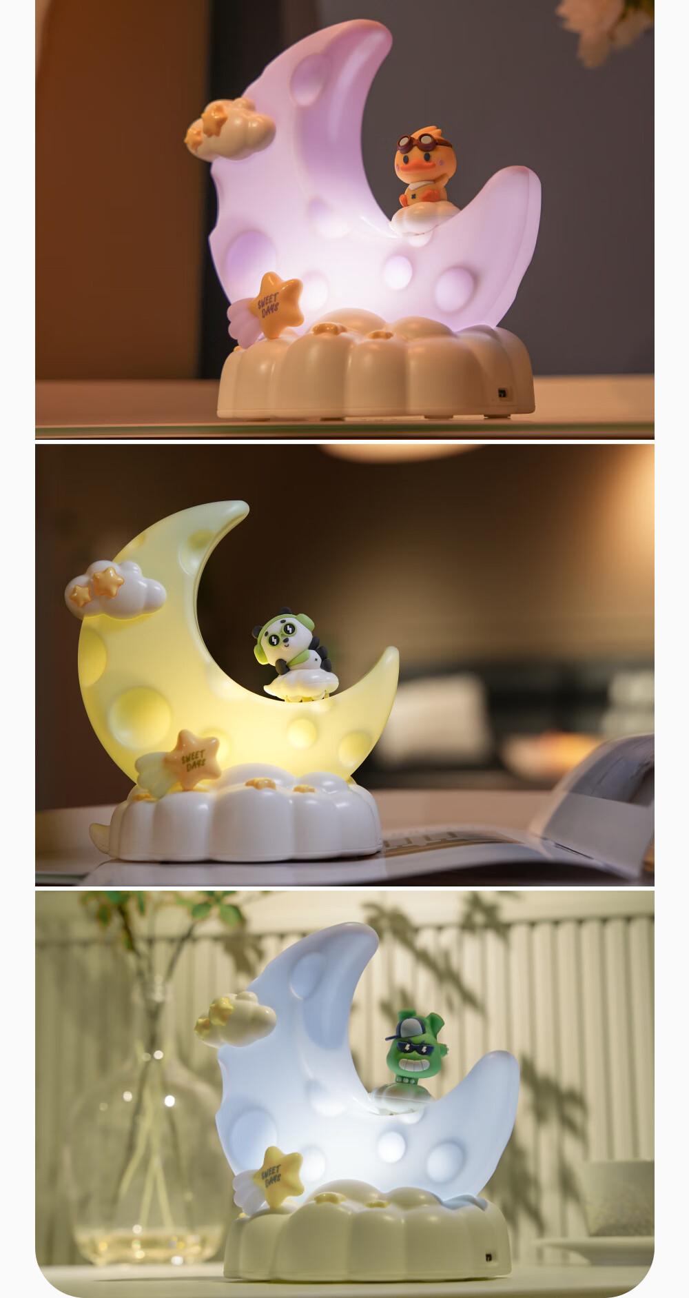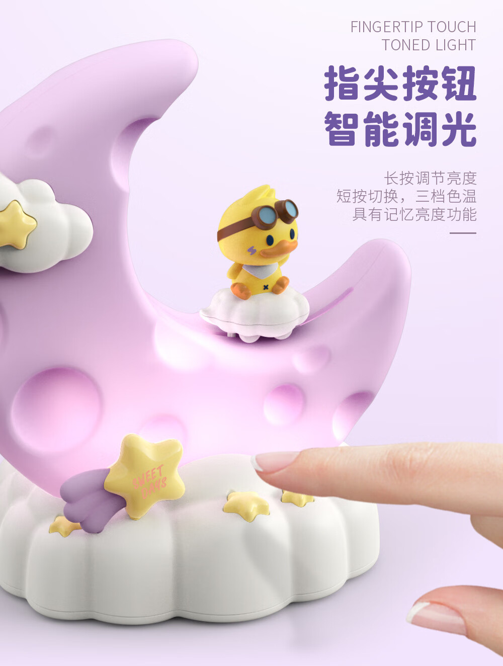 OUMIROLED触控三色调光USB台灯卡通创意月亮可充电礼物卧室摆件小夜灯 粉色-兔子月亮精美小夜灯【送充电线】