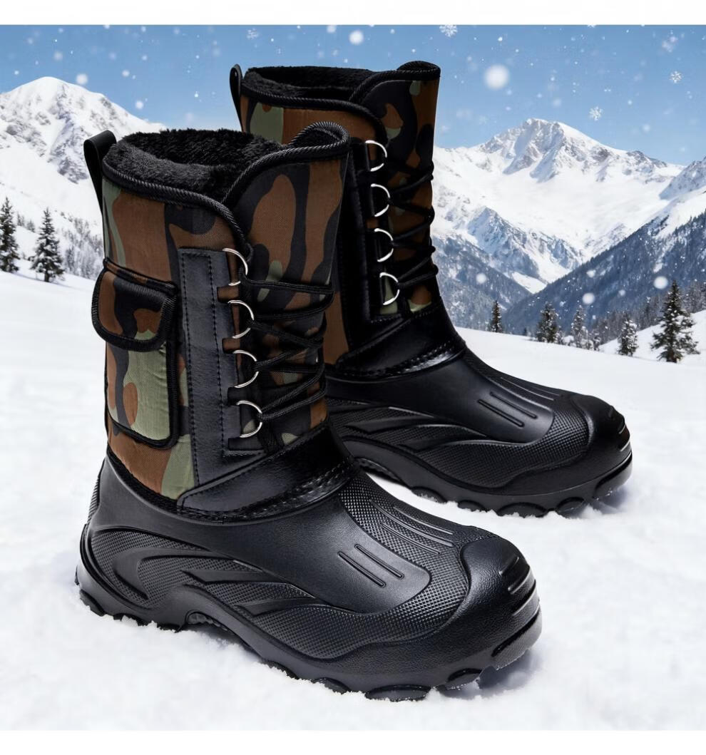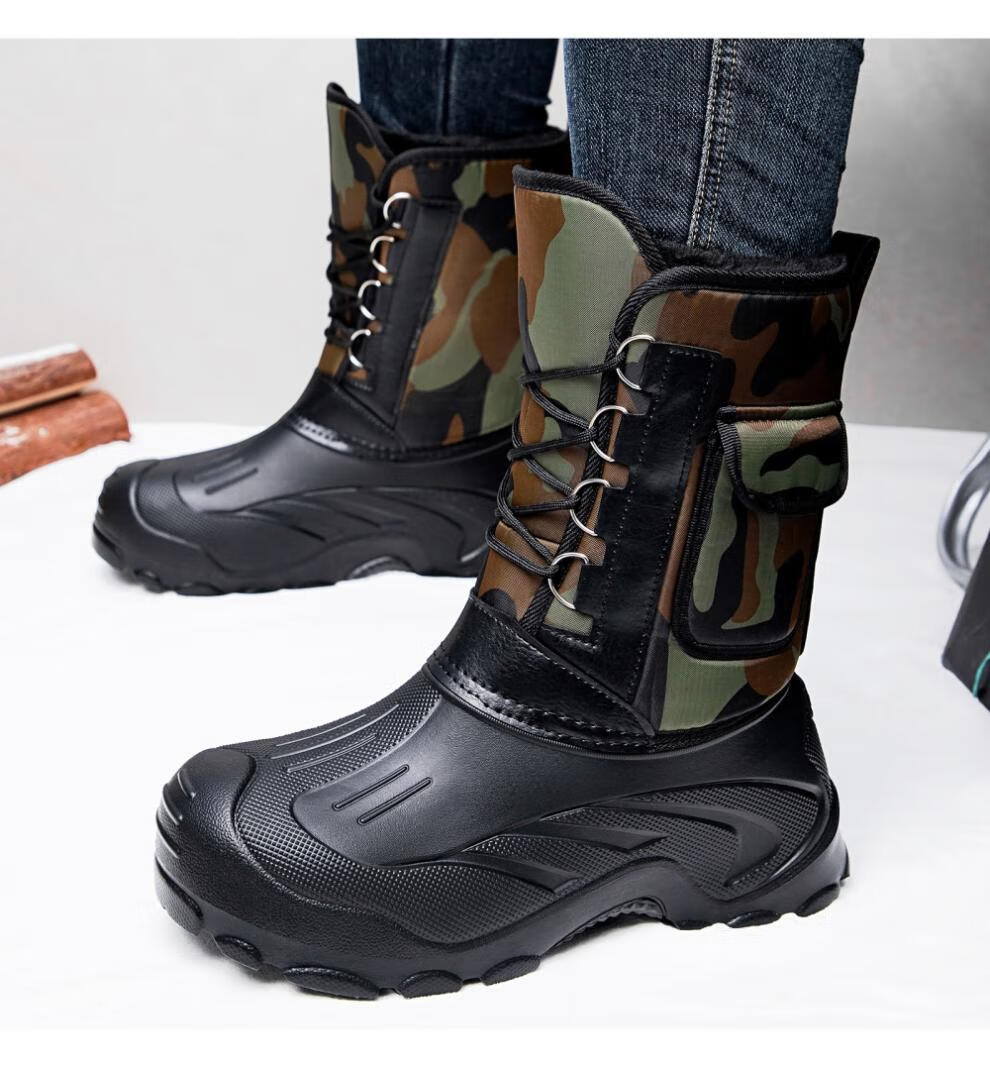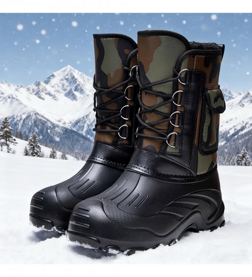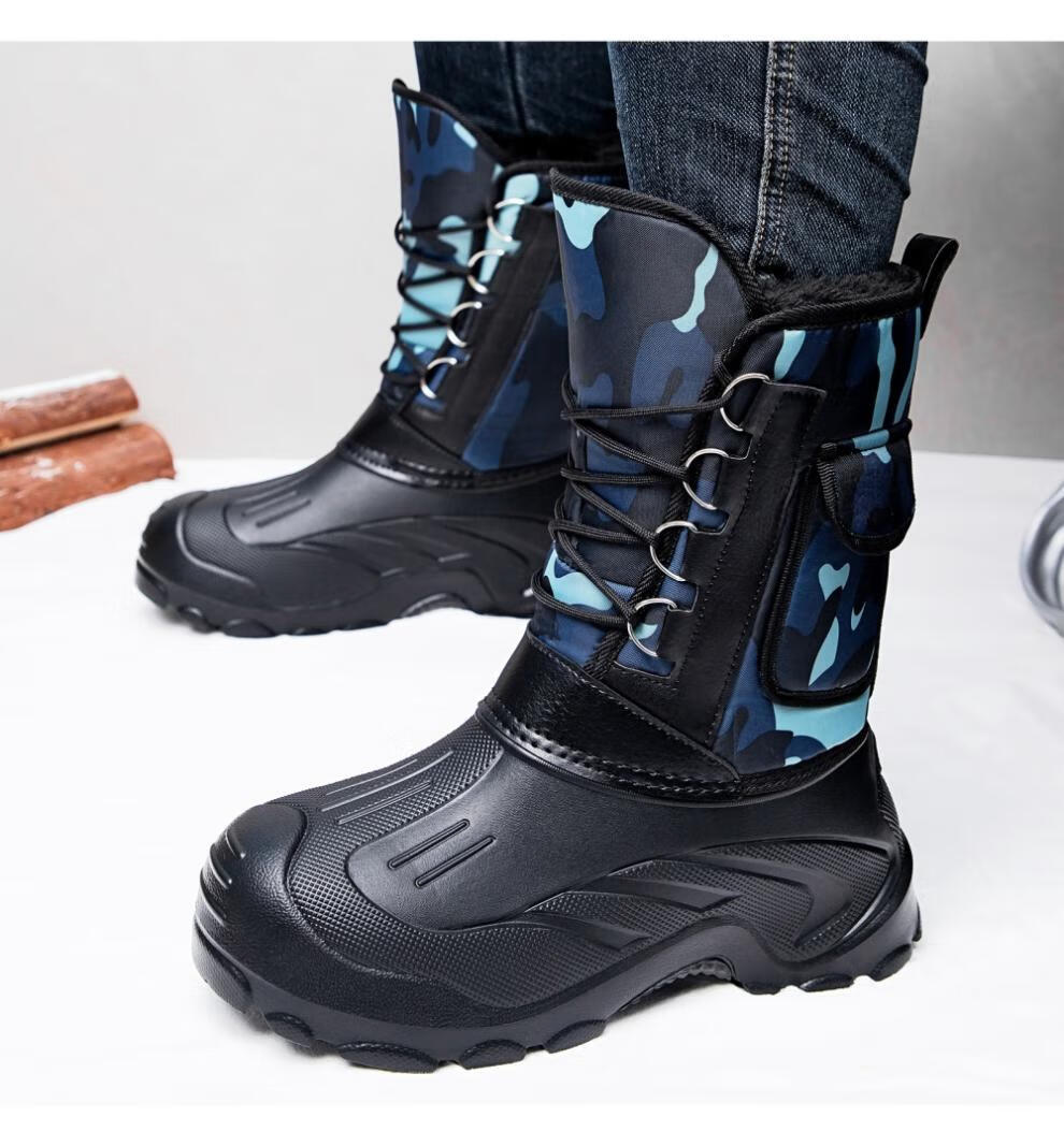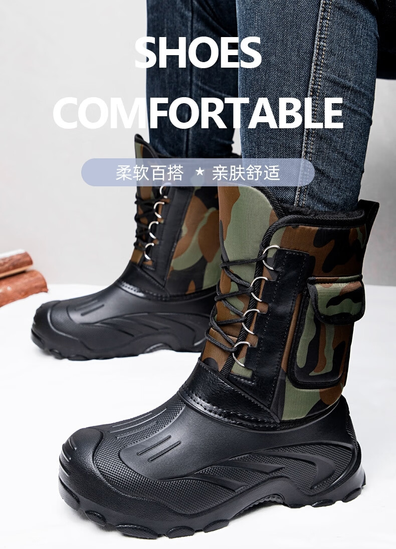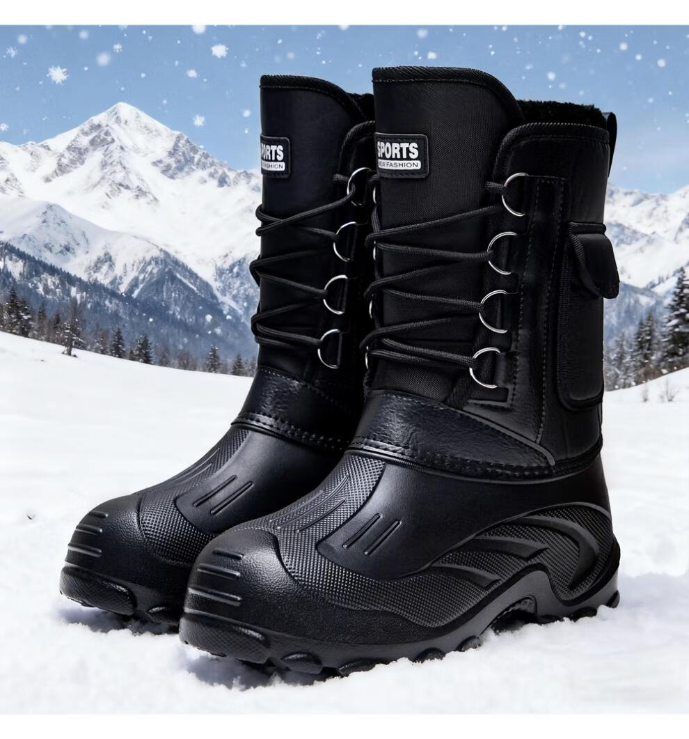 稻草人(MEXICAN)冬季钓鱼保暖棉鞋大码防水男靴防寒防滑棉靴加绒加厚长筒棉靴冬天 DZ-BD68黑色(袋装) 43