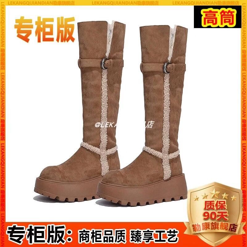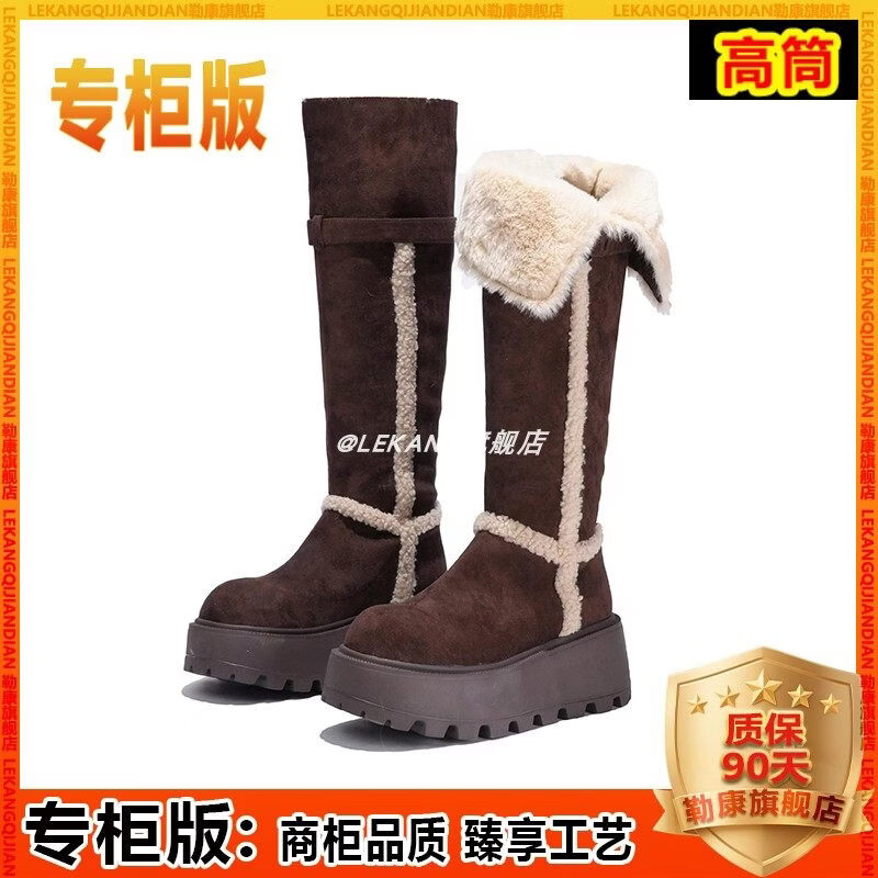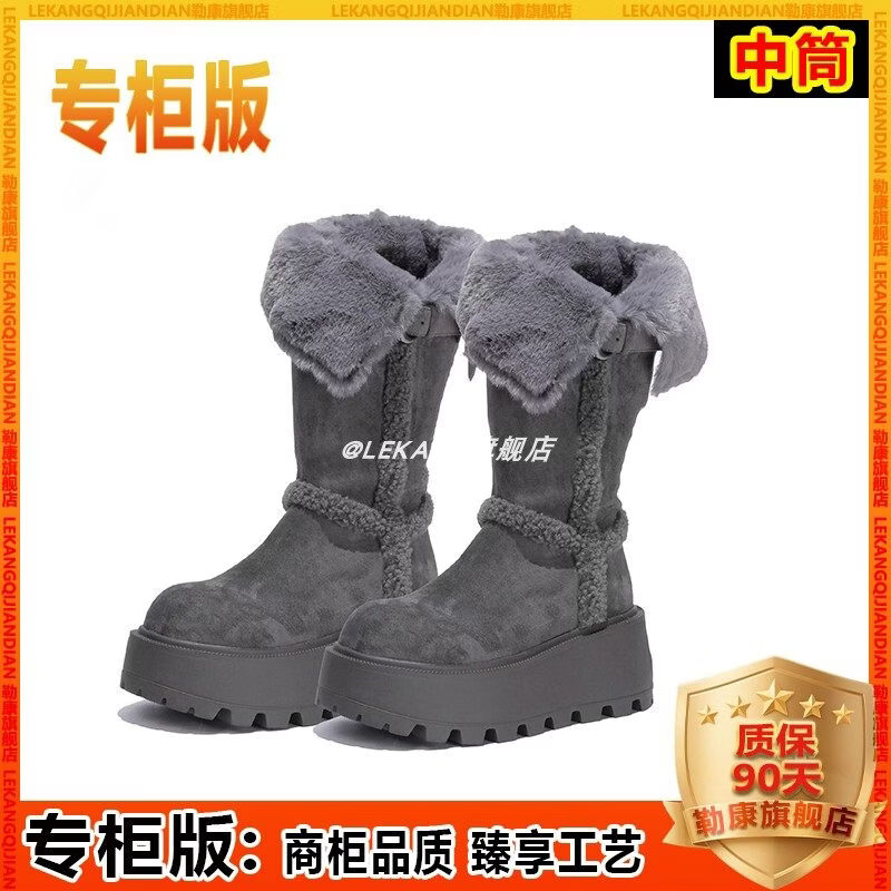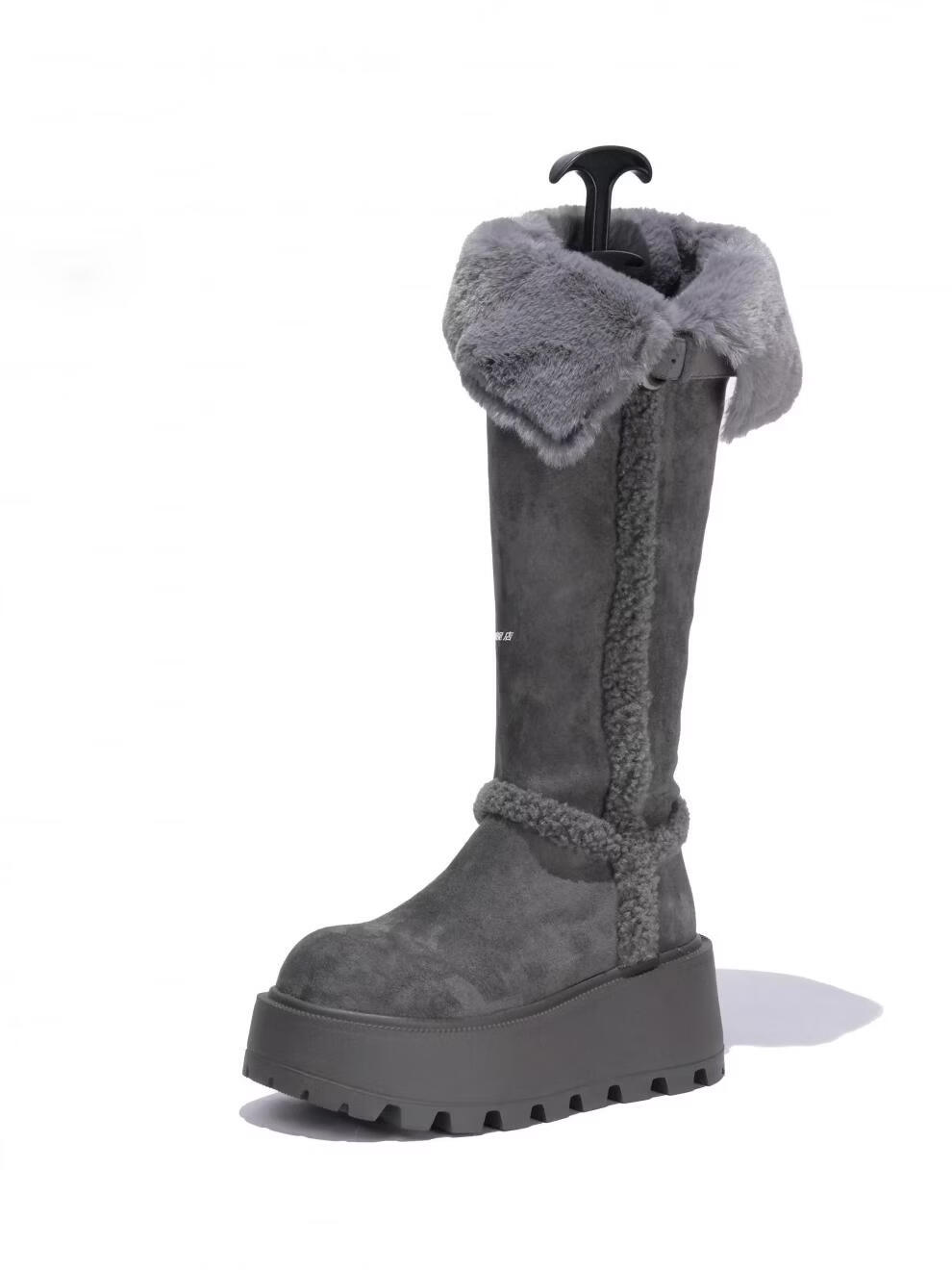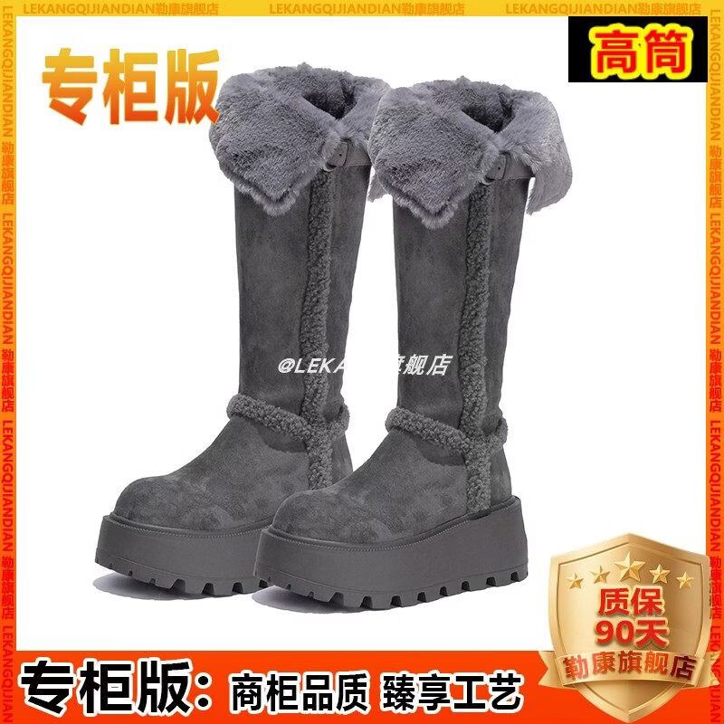 稻草人(MEXICAN)厚底增高不过膝灰色雪地靴女2026冬季新款保暖加厚毛毛长筒棉鞋靴 灰色-高筒【专柜版】商场柜台品质超长质保 35