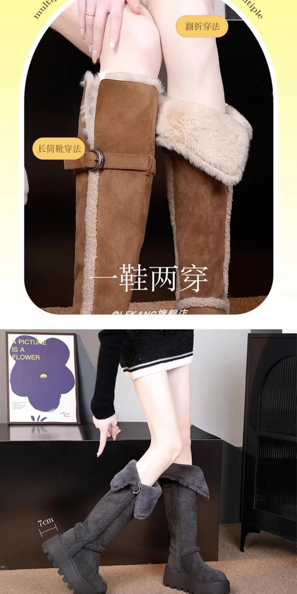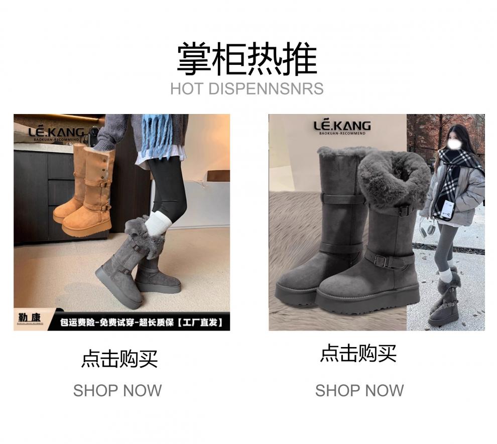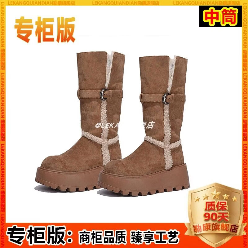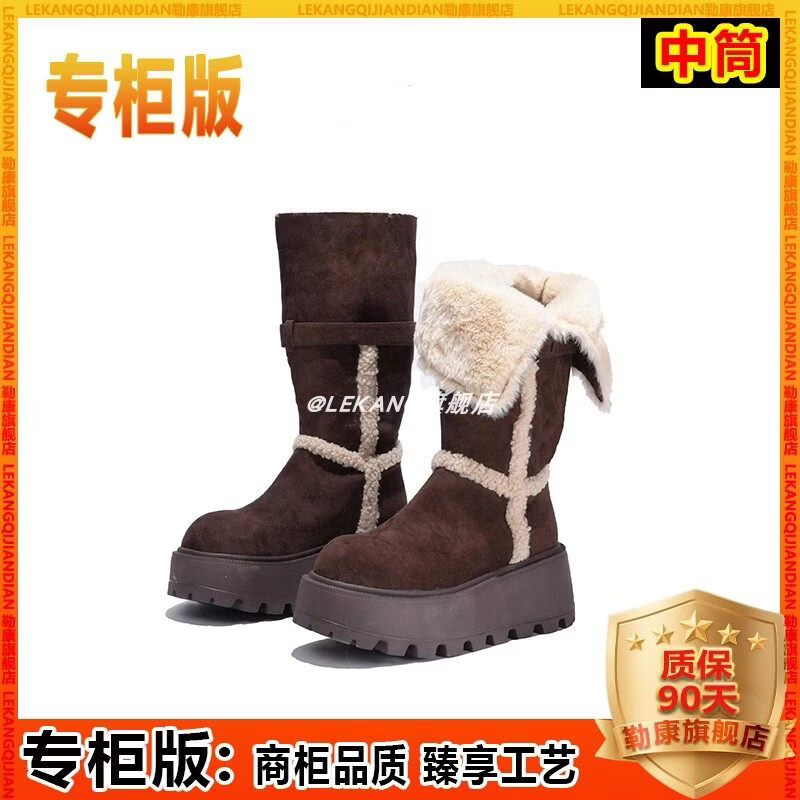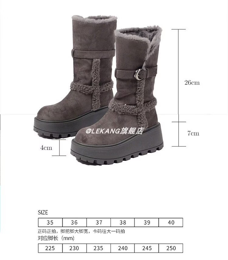 稻草人(MEXICAN)厚底增高不过膝灰色雪地靴女2026冬季新款保暖加厚毛毛长筒棉鞋靴 灰色-高筒【专柜版】商场柜台品质超长质保 35