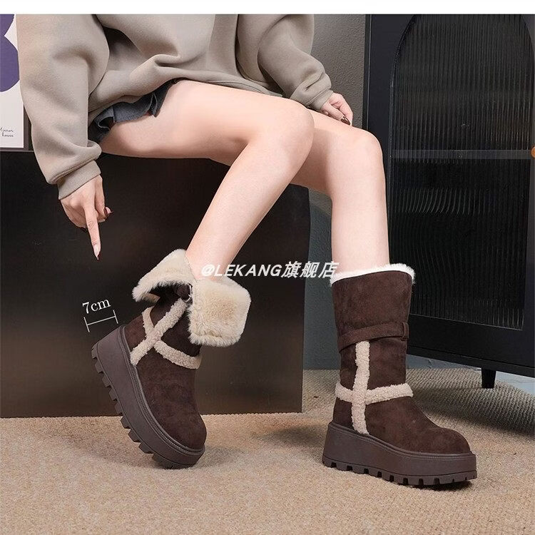 星期六厚底雪地靴女2025新款冬季加绒加厚面包鞋防滑短靴保暖棉鞋 咖啡色 【加绒保暖】 35