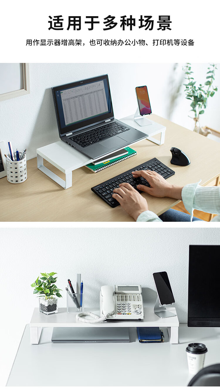 山业(SANWA) 日式简约桌上架 显示器增高架 办公收纳置物架 笔记本电脑支架 MR-C4 M号 白色 600mm*200mm