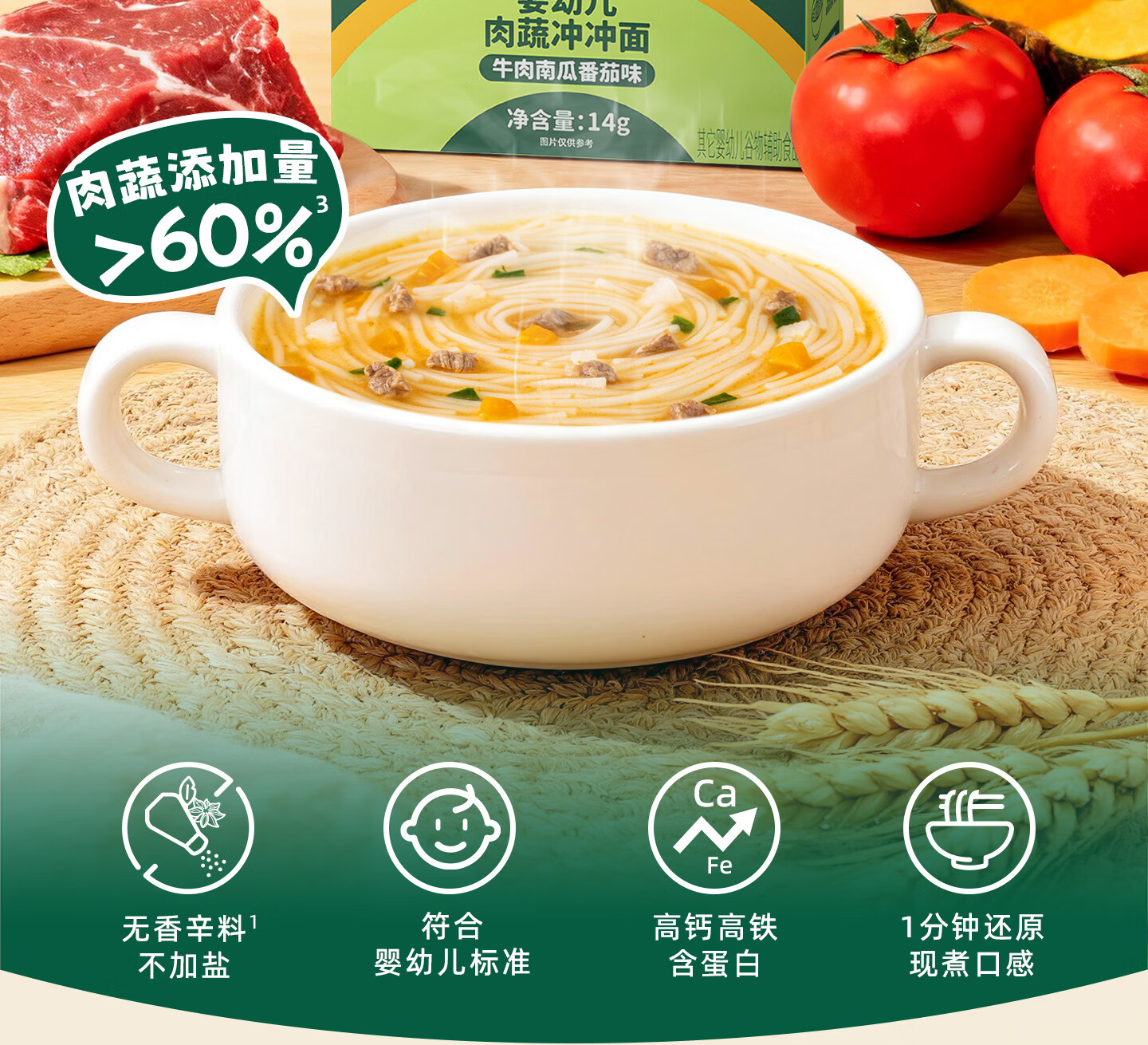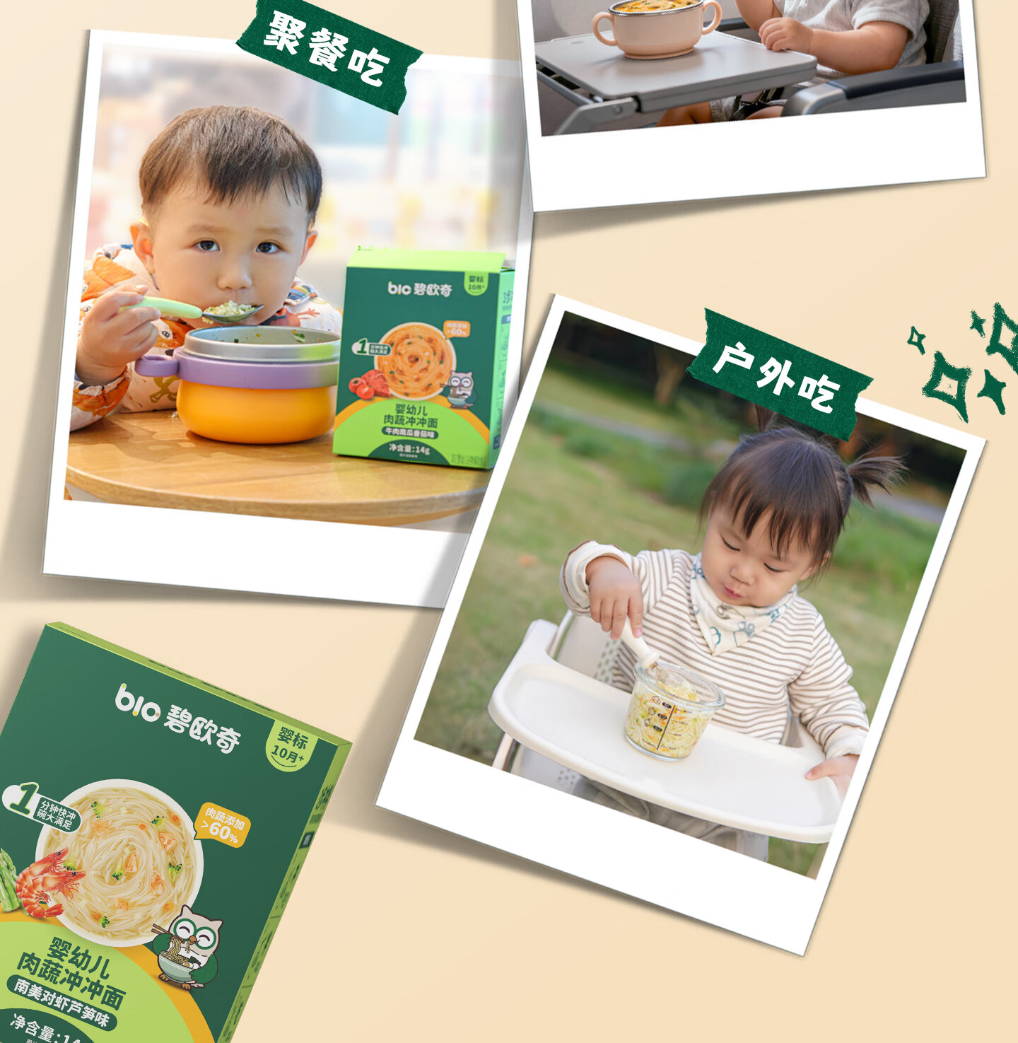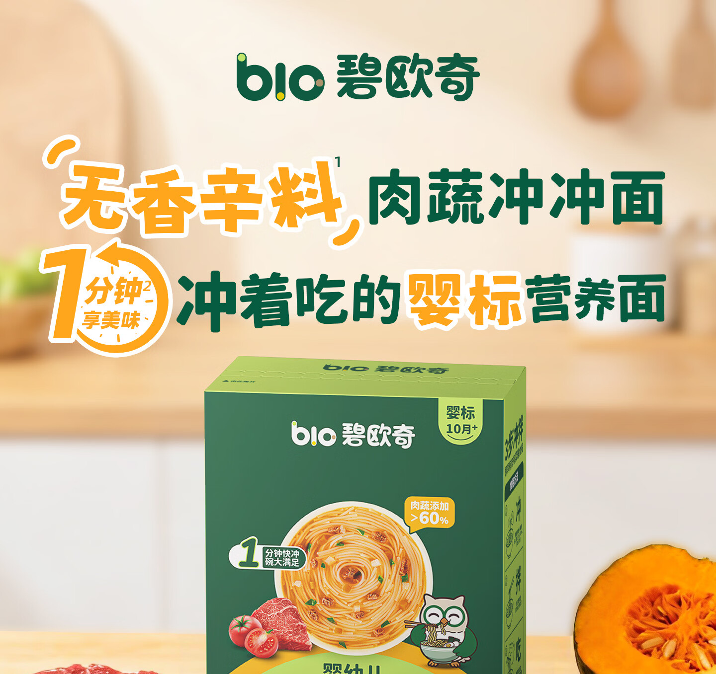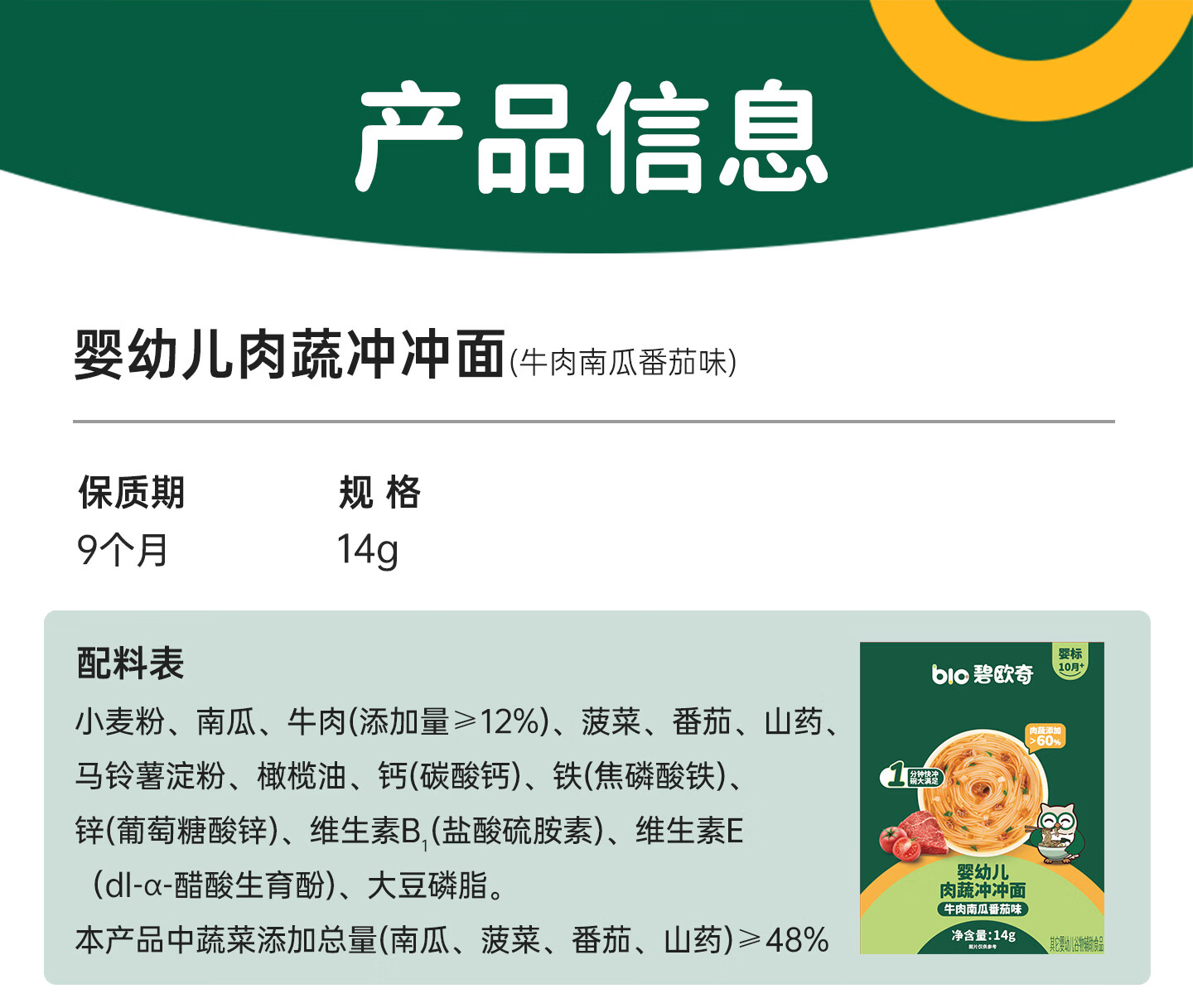 碧欧奇冲冲面婴幼儿面条营养早餐便携宝宝外出即食辅食袋装冲泡面 【12盒】牛肉南瓜番茄味6+南美对虾芦笋味6