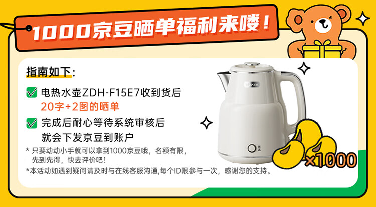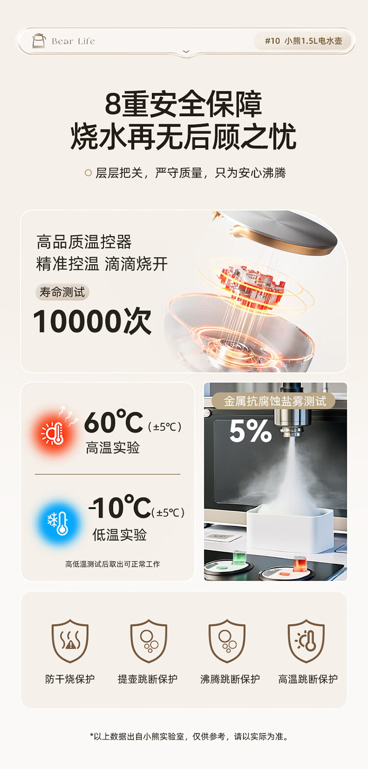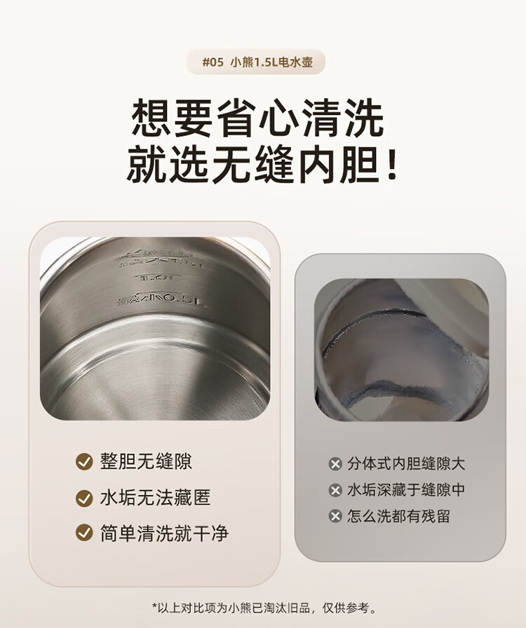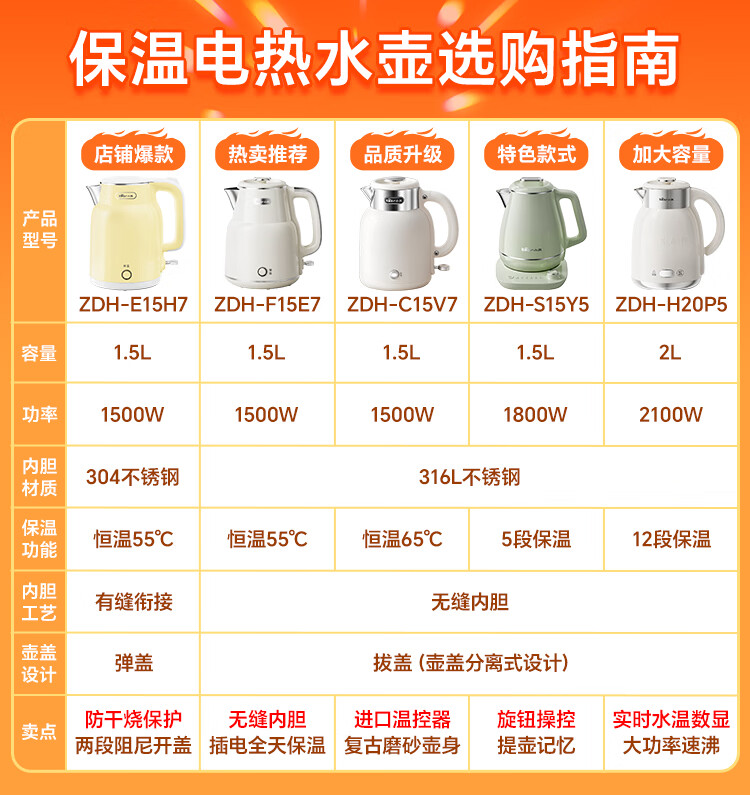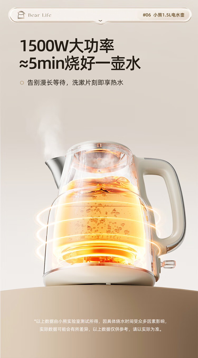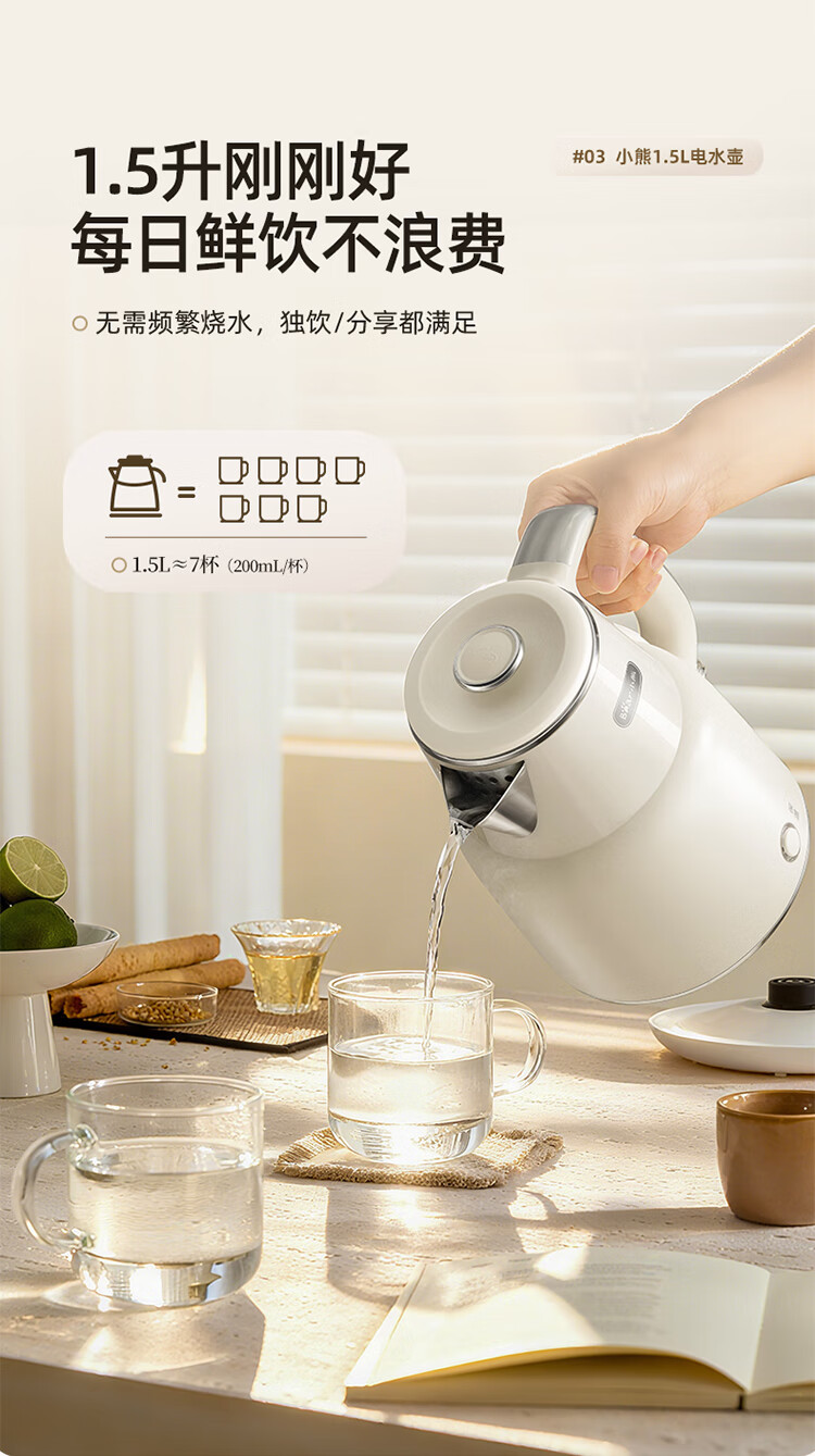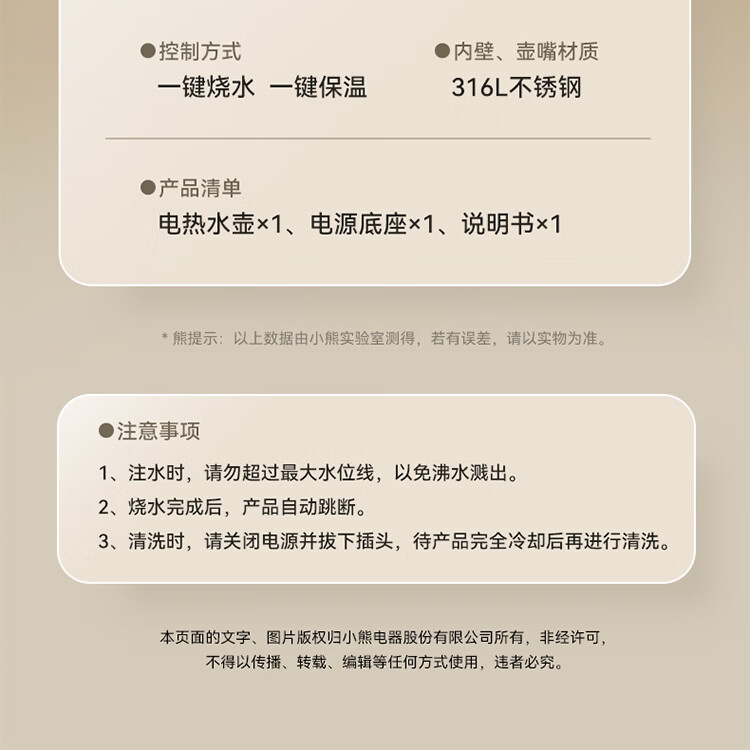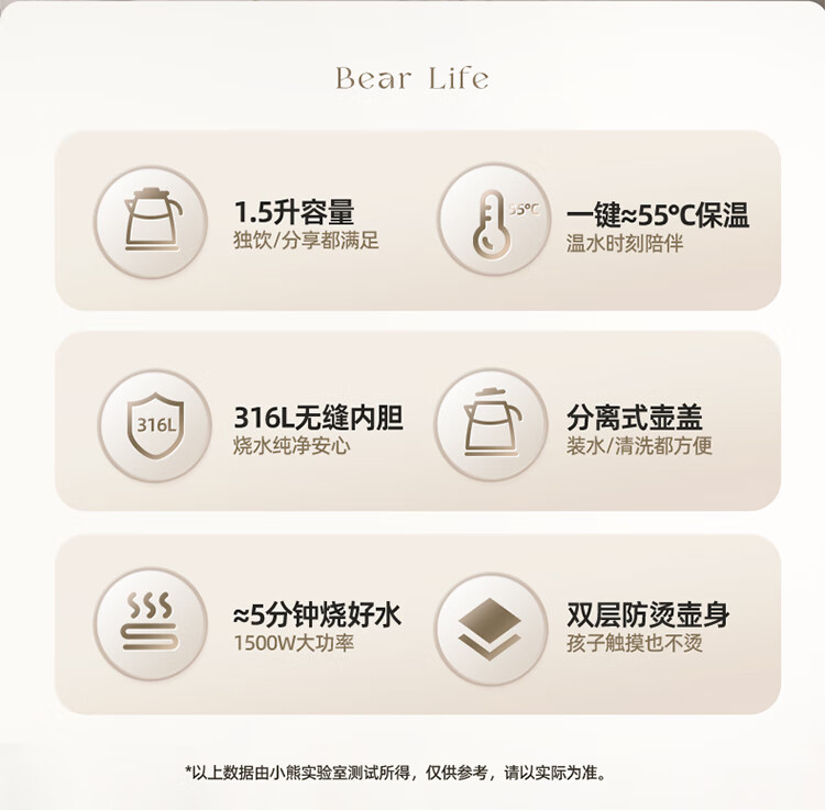 小熊(Bear)烧水壶保温电热水壶316L不锈钢自动断电一体无缝1.5L家用恒温热水壶 ZDH-F15E7