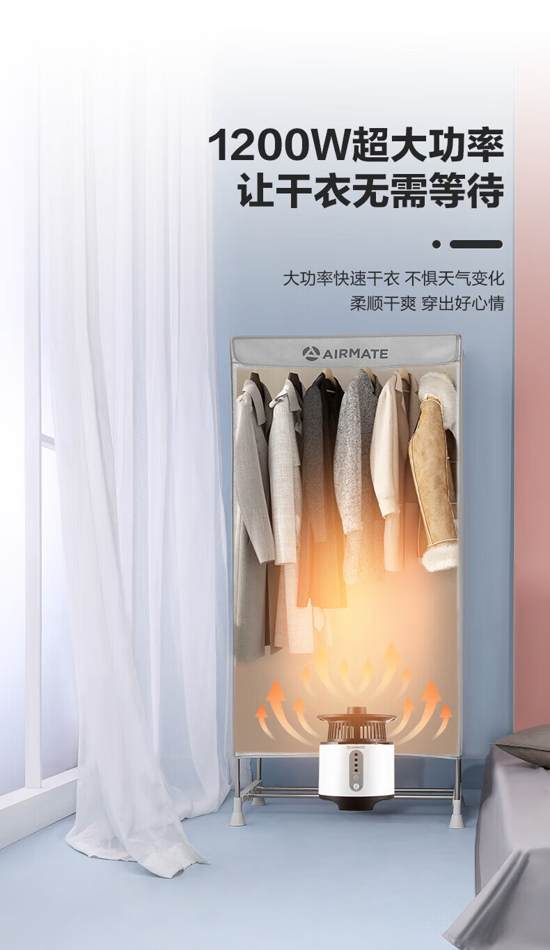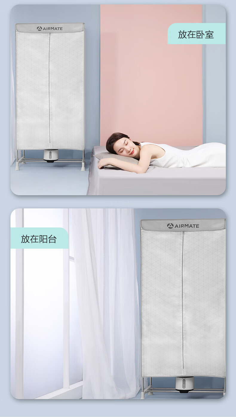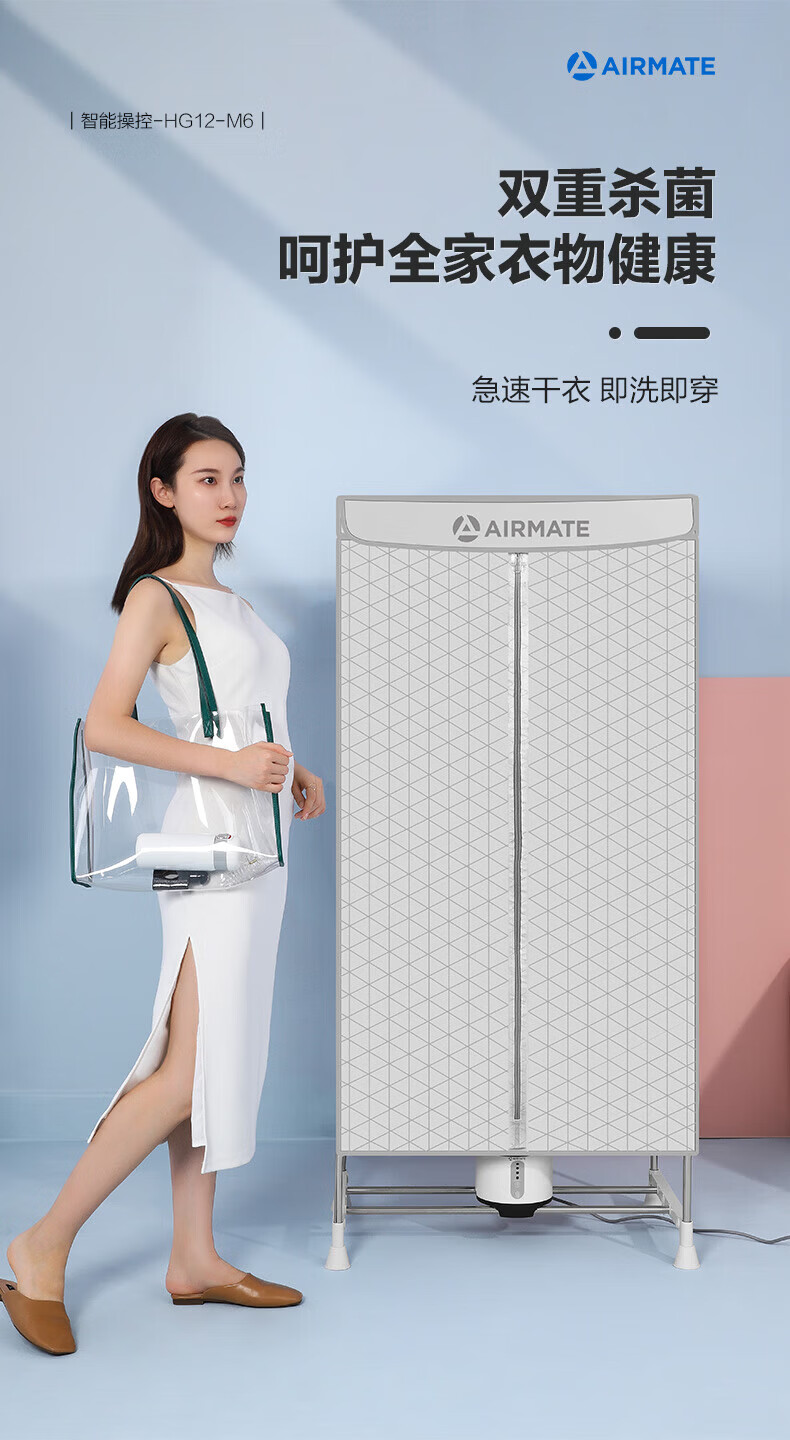 艾美特(AIRMATE)【智能感应 UV杀菌 】干衣机烘干机家用烘衣服衣柜内裤内衣AI感知功能定时双层大容量柜式风干机 智能感应 UV杀菌 3H定时 双层大容量 470L M6