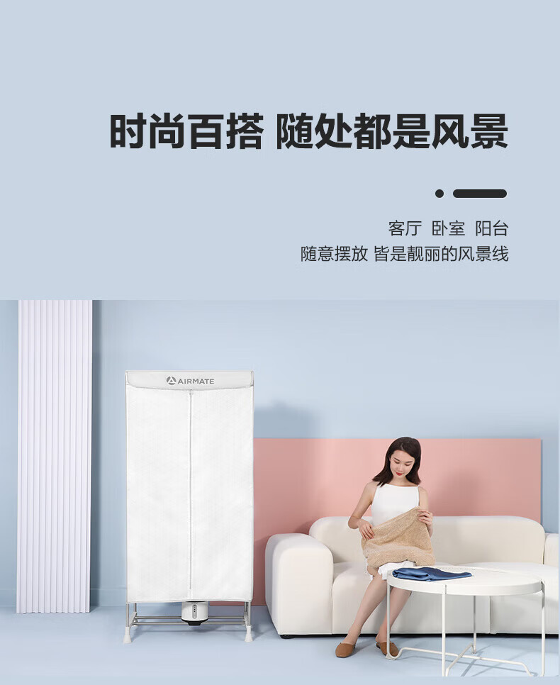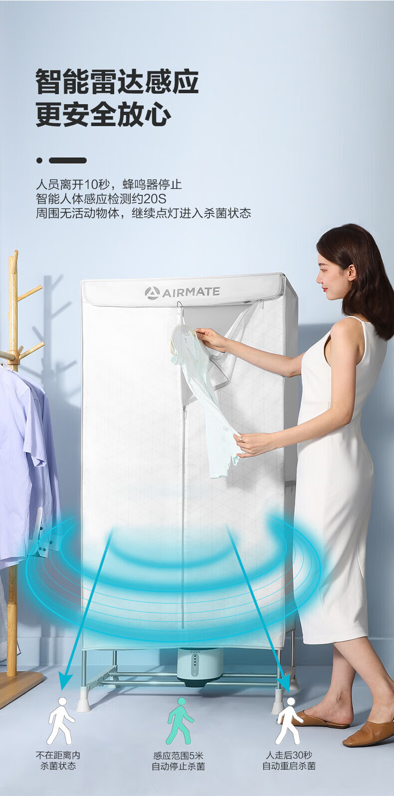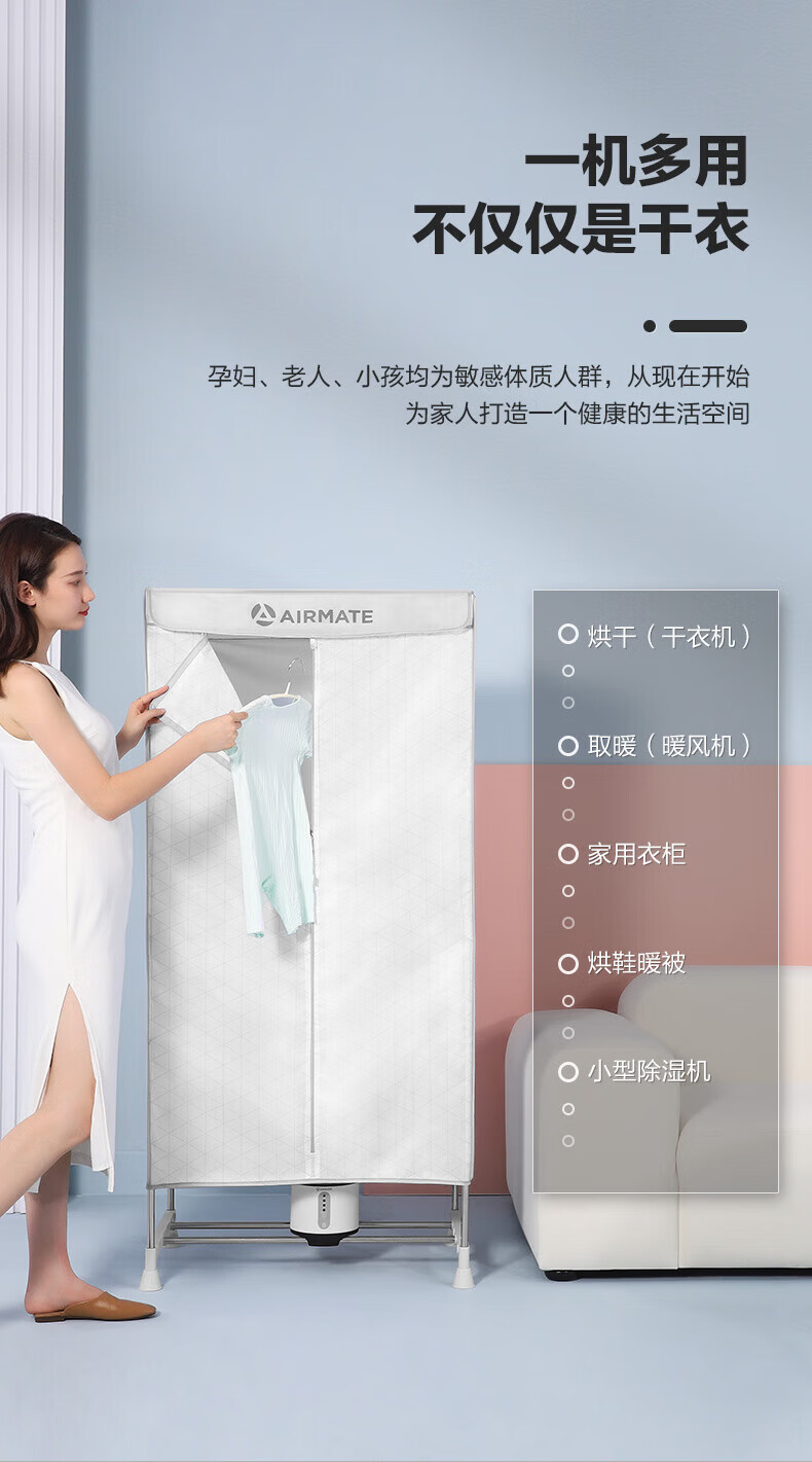 艾美特(AIRMATE)【智能感应 UV杀菌 】干衣机烘干机家用烘衣服衣柜内裤内衣AI感知功能定时双层大容量柜式风干机 智能感应 UV杀菌 3H定时 双层大容量 470L M6