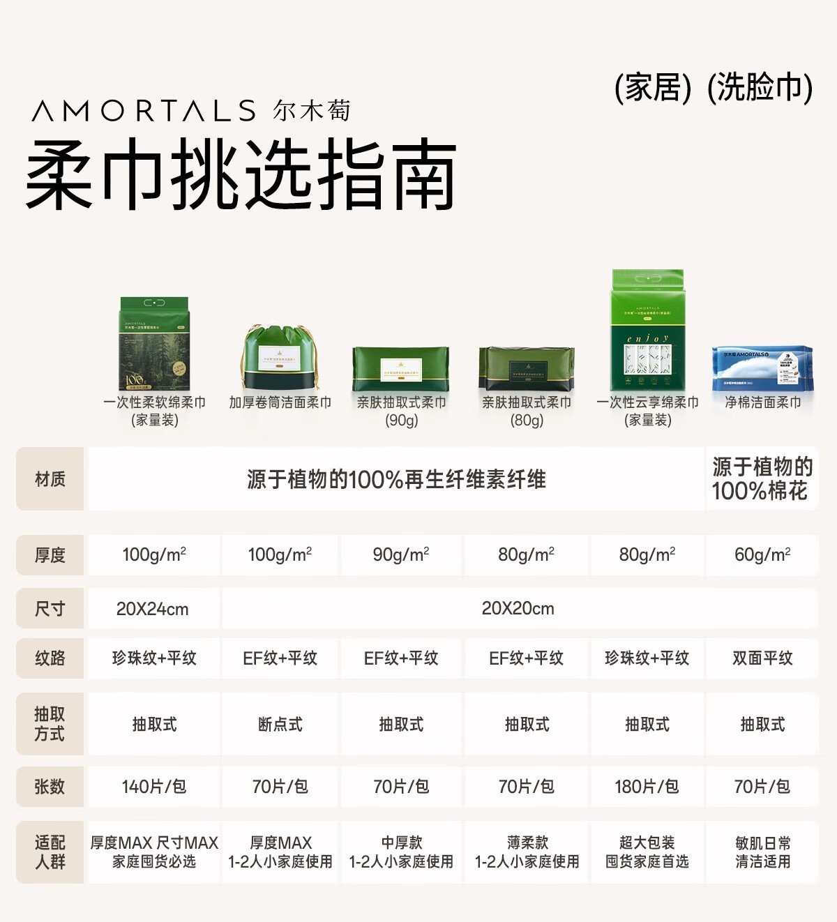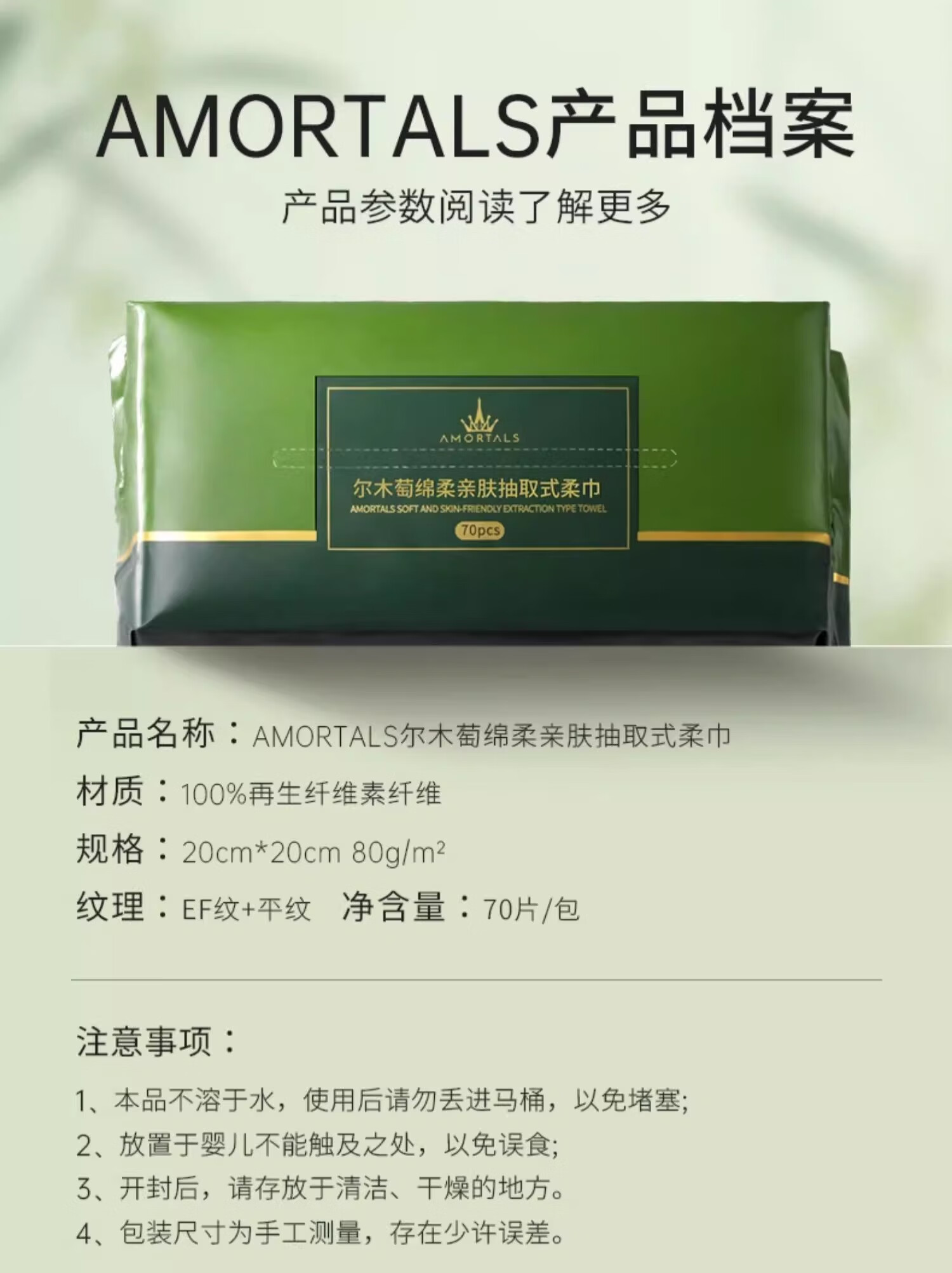 尔木萄(AMORTALS)抽取式洗脸巾70抽10连包巨量装囤货家用一次性洁面加厚两用擦脸巾