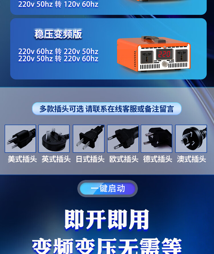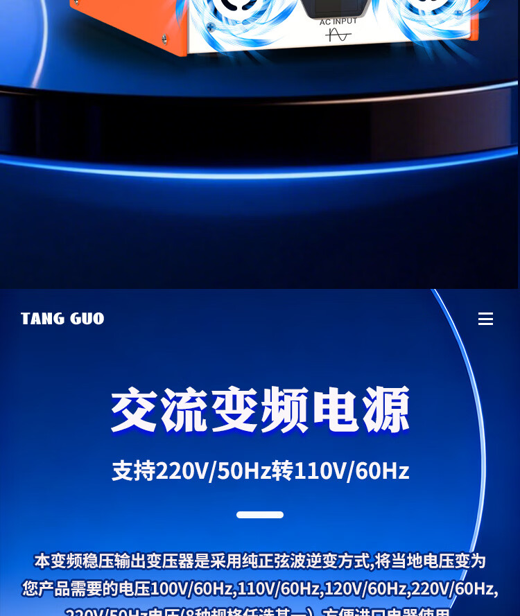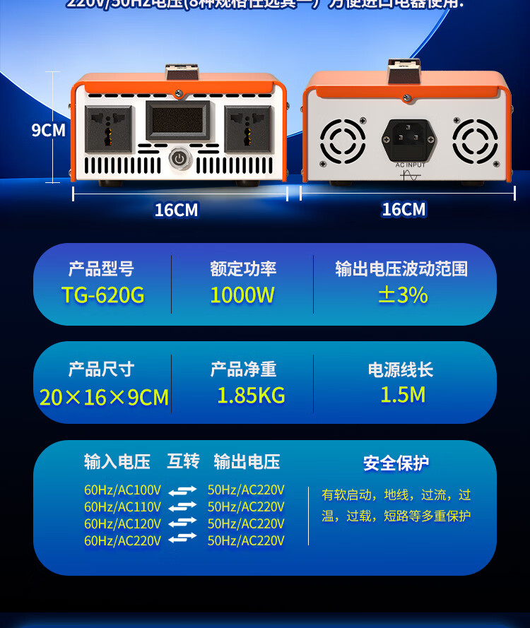 唐国稳压变频变压器220v转110v日本100v 1000w美国加拿大电器电压转换 变频变压 1000W 220V 50hz转220V 60hz配国标线