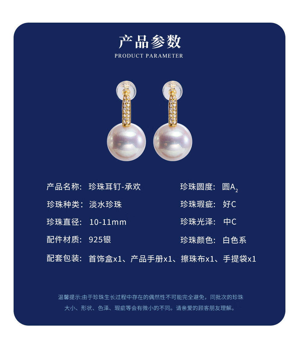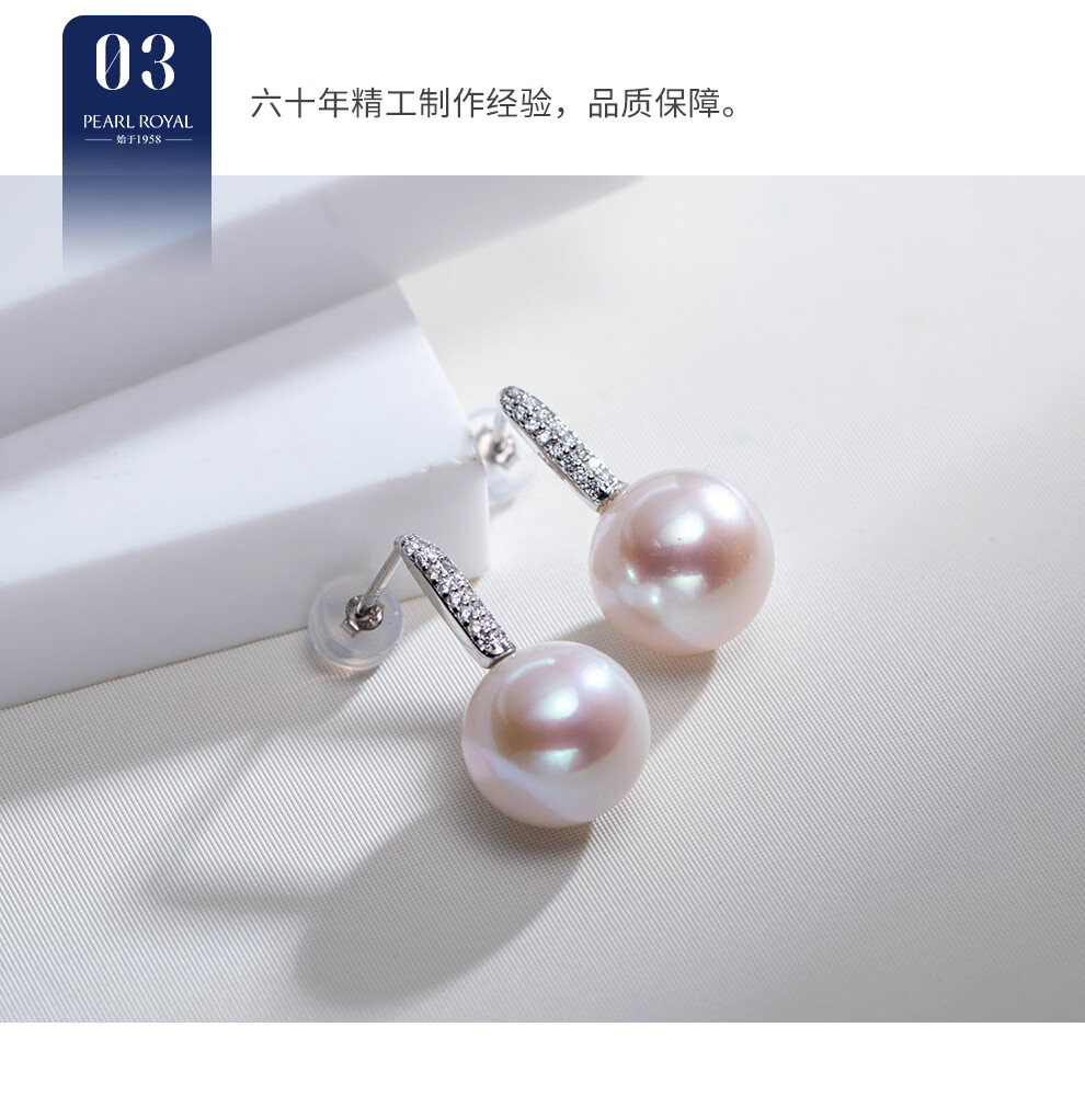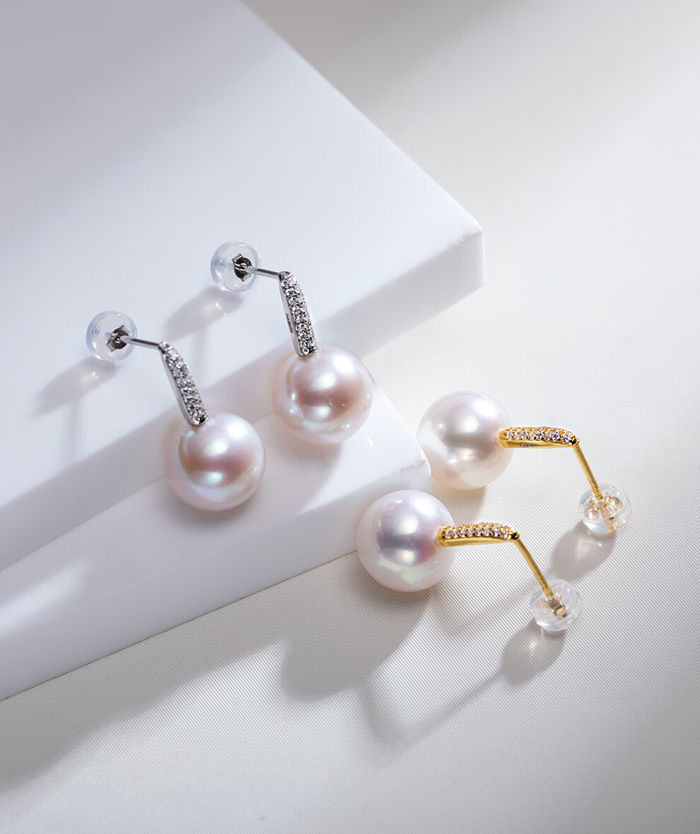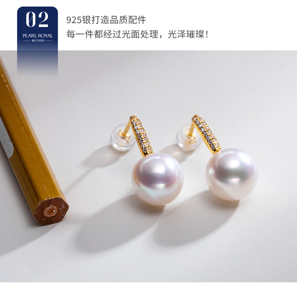 南珠宫恋光925银海水珍珠耳环南洋金珠耳钉强光近圆轻奢生日礼物送女友 10.0-11.0mm 925银海水珍珠耳环