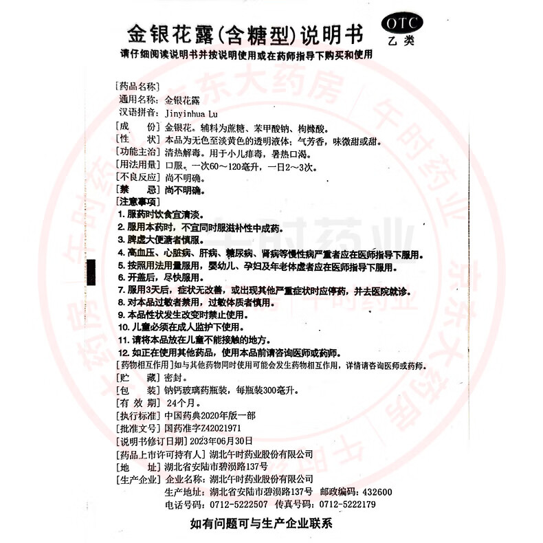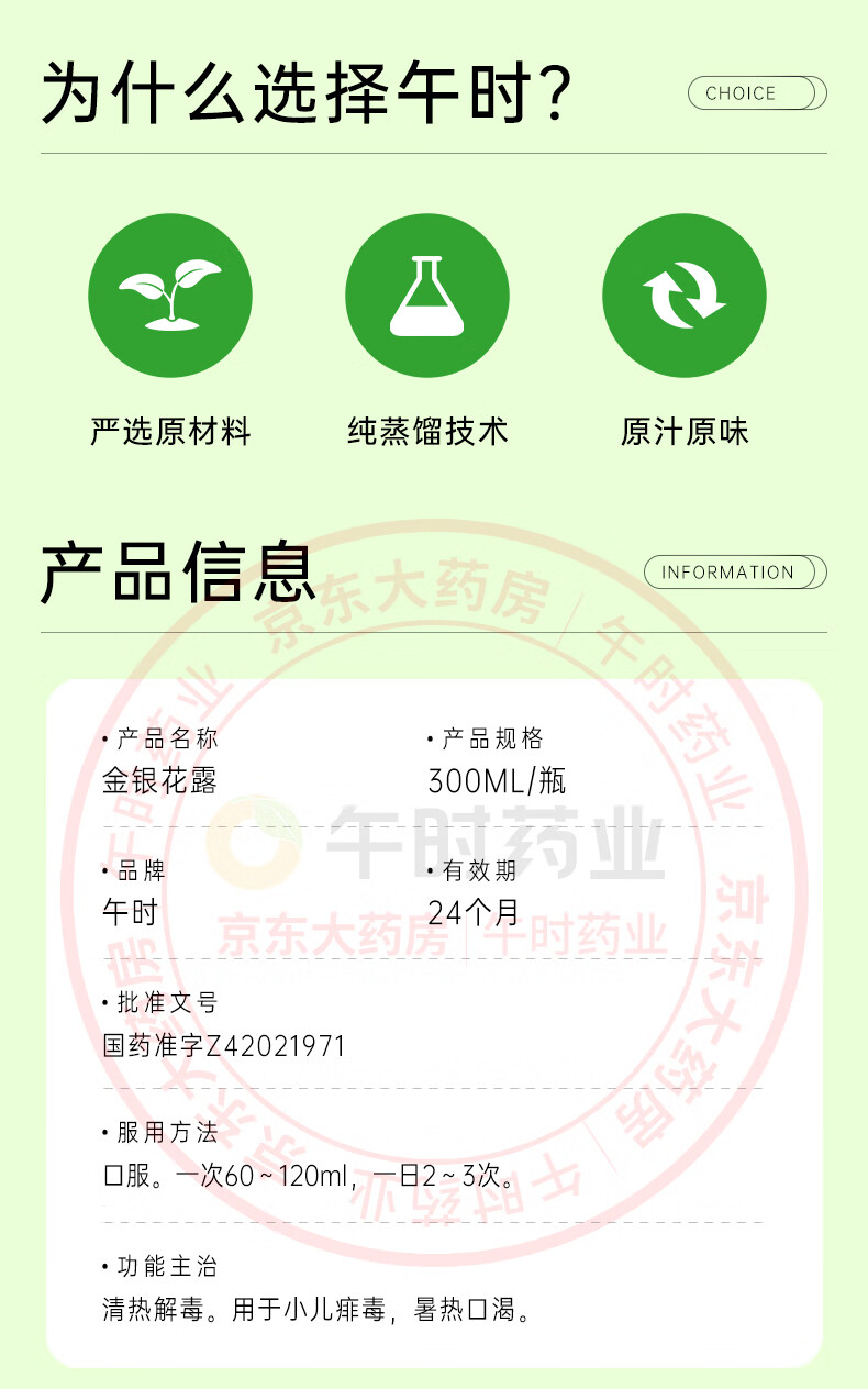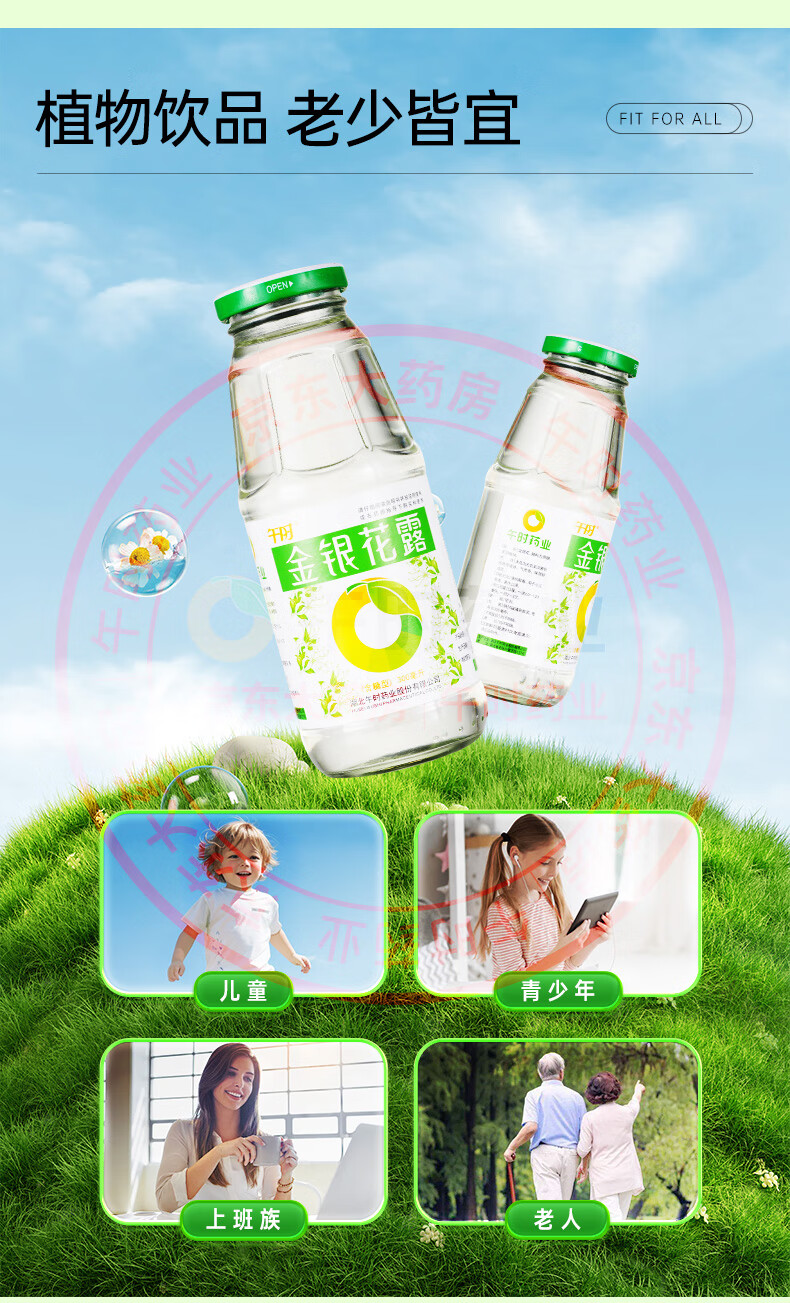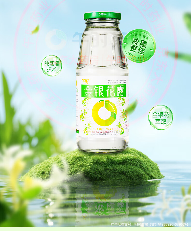 午时 金银花露 300ml/瓶 清热解毒 用于小儿痱毒 感冒咳嗽 暑热口渴 消暑解渴 嗓子干痒痛 喉咙发炎 咽喉肿痛 上火消火防暑凉茶