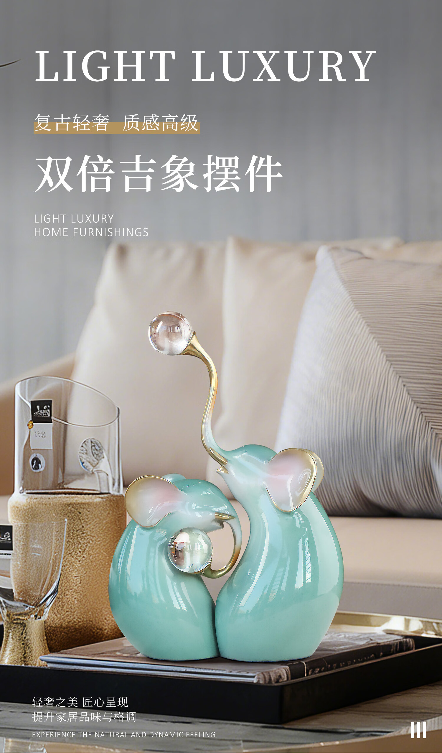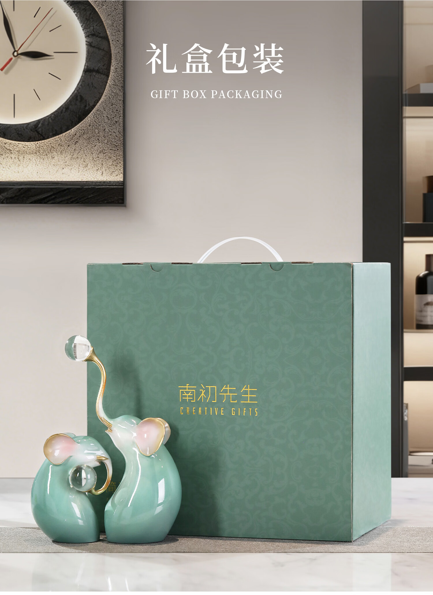 南初先生双倍吉象大象铜摆件一对轻奢高档客厅酒柜电视柜装饰乔迁之喜礼品 双倍吉象-礼盒装