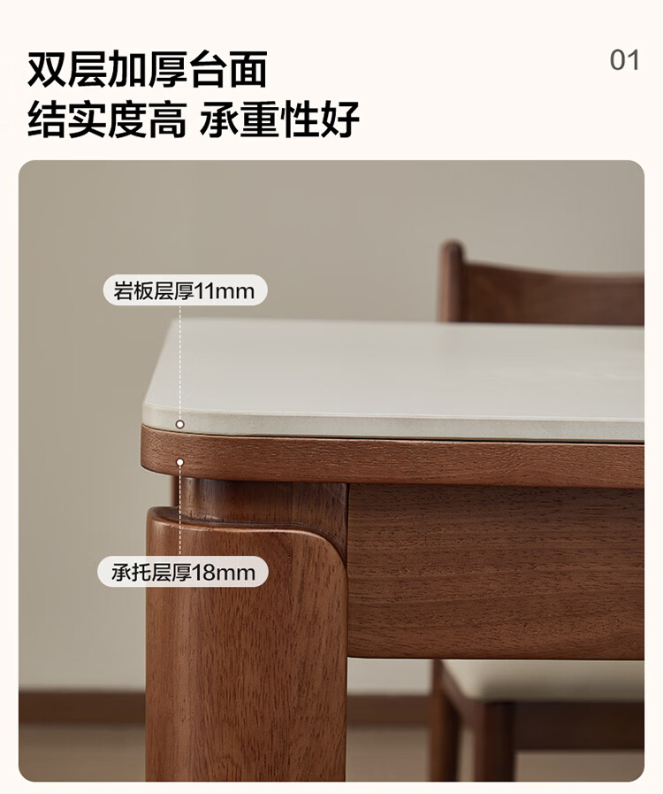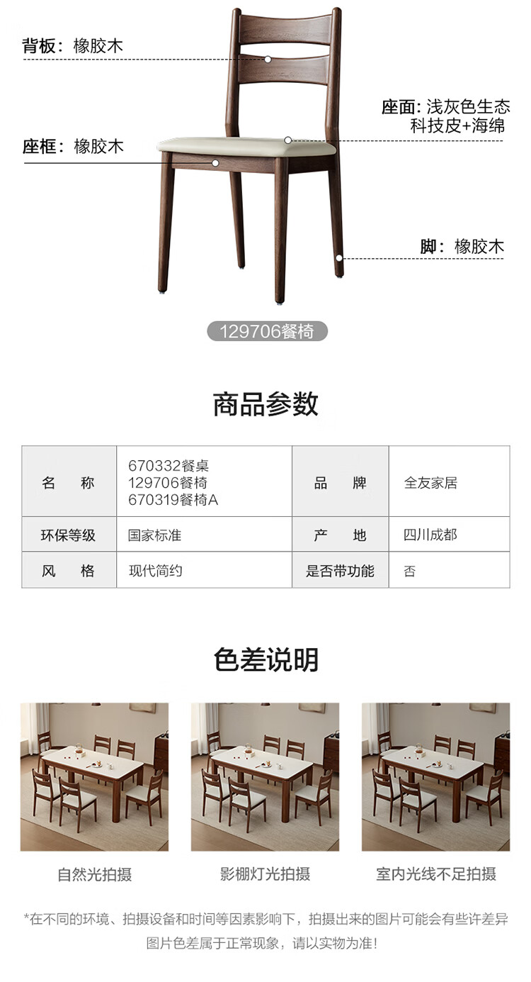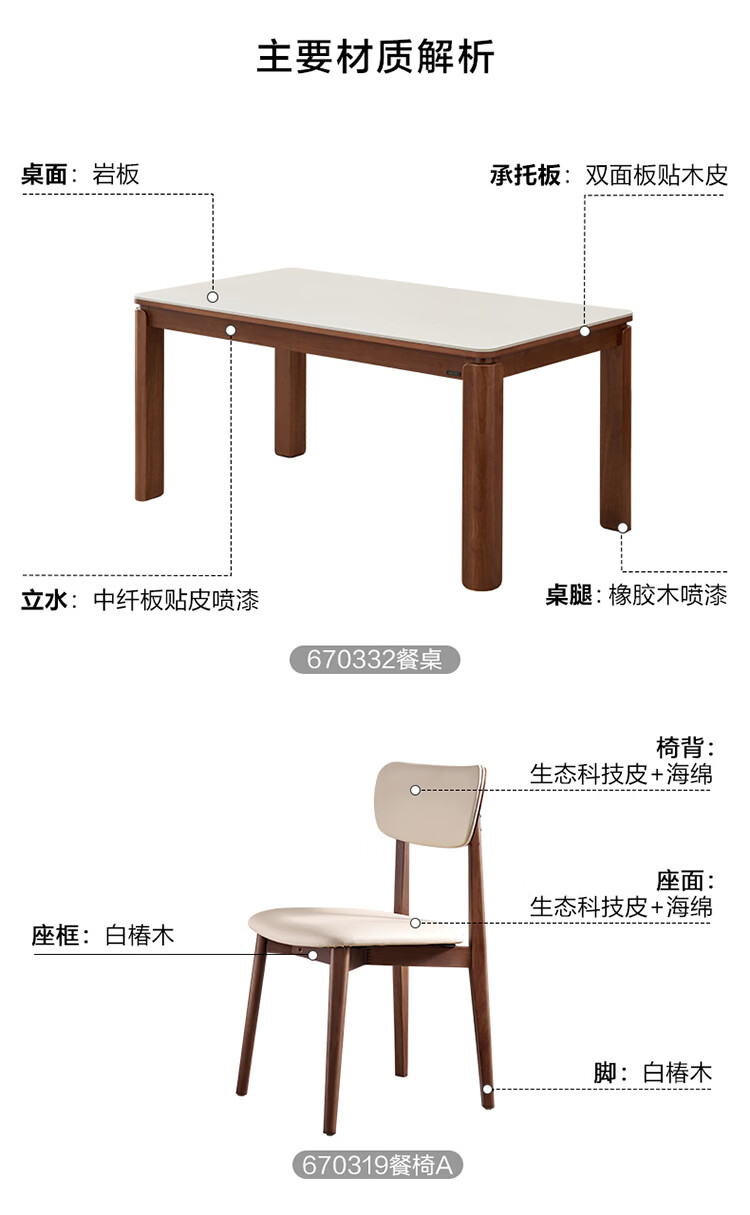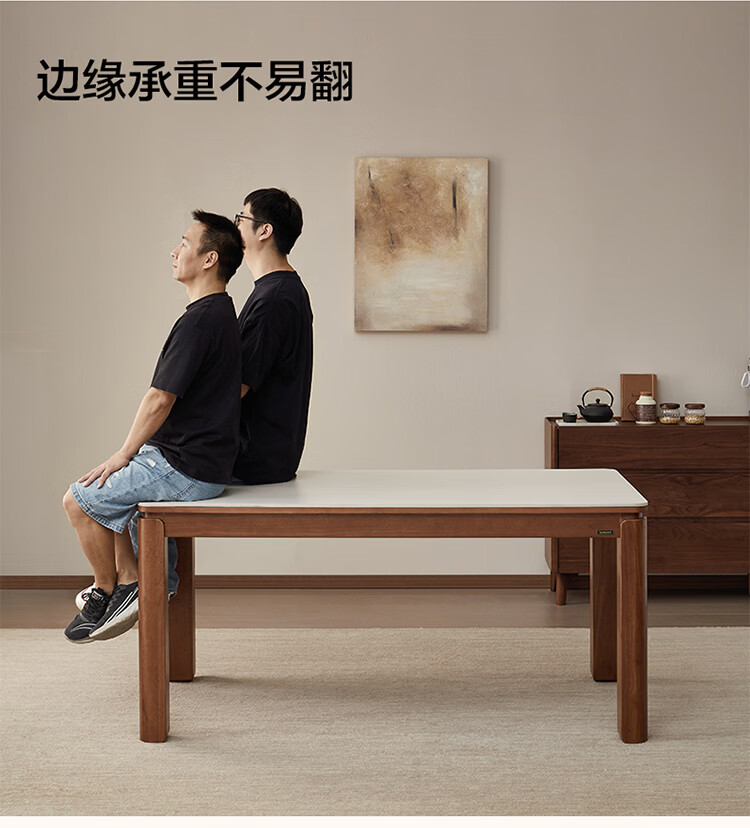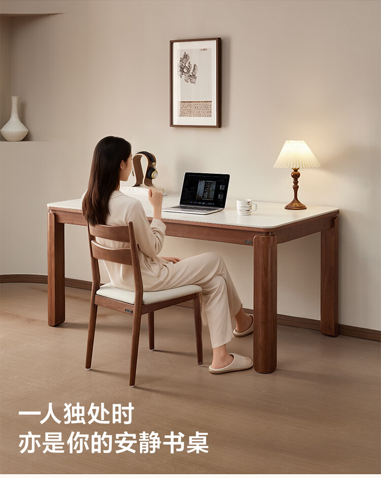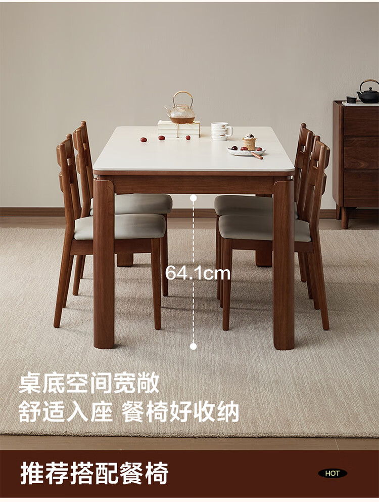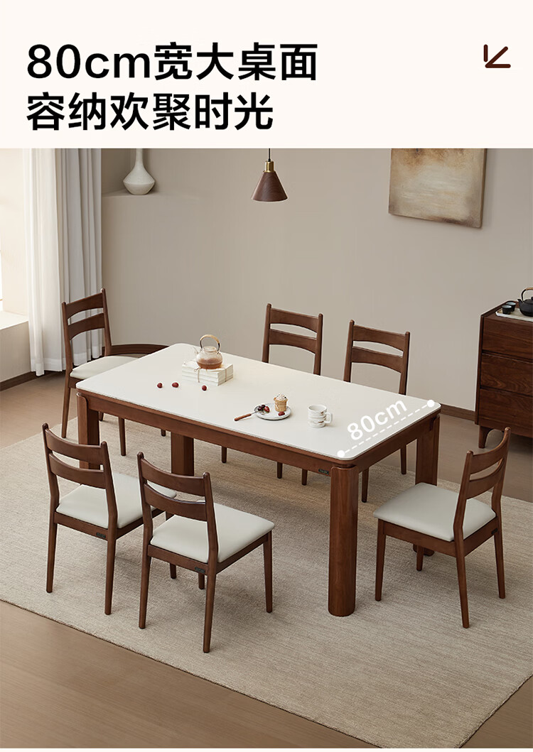 全友家居新中式岩板餐桌家用实木桌脚餐桌椅组合套装家具一桌四椅饭桌 素简软包椅*2