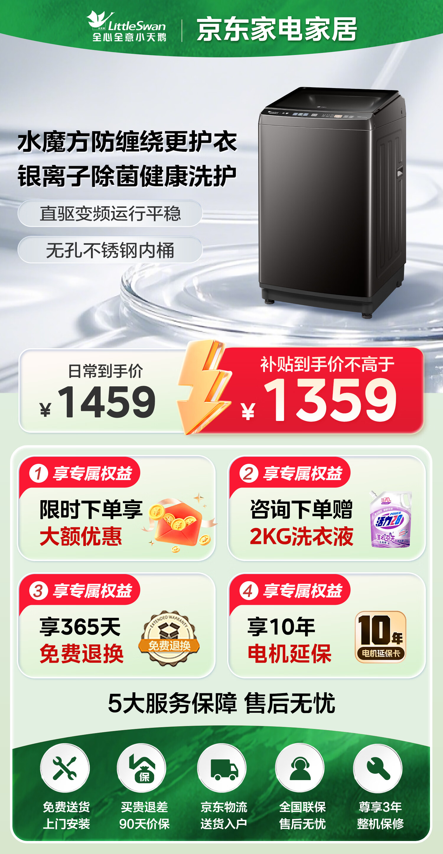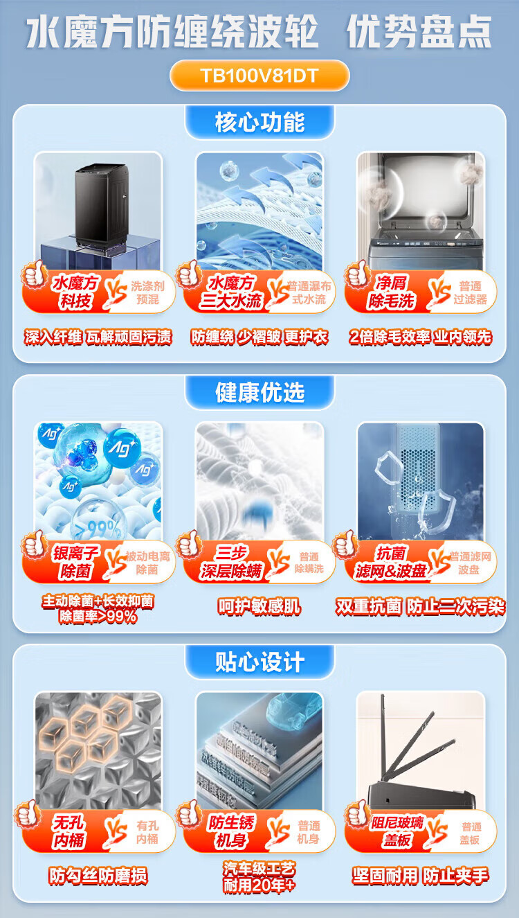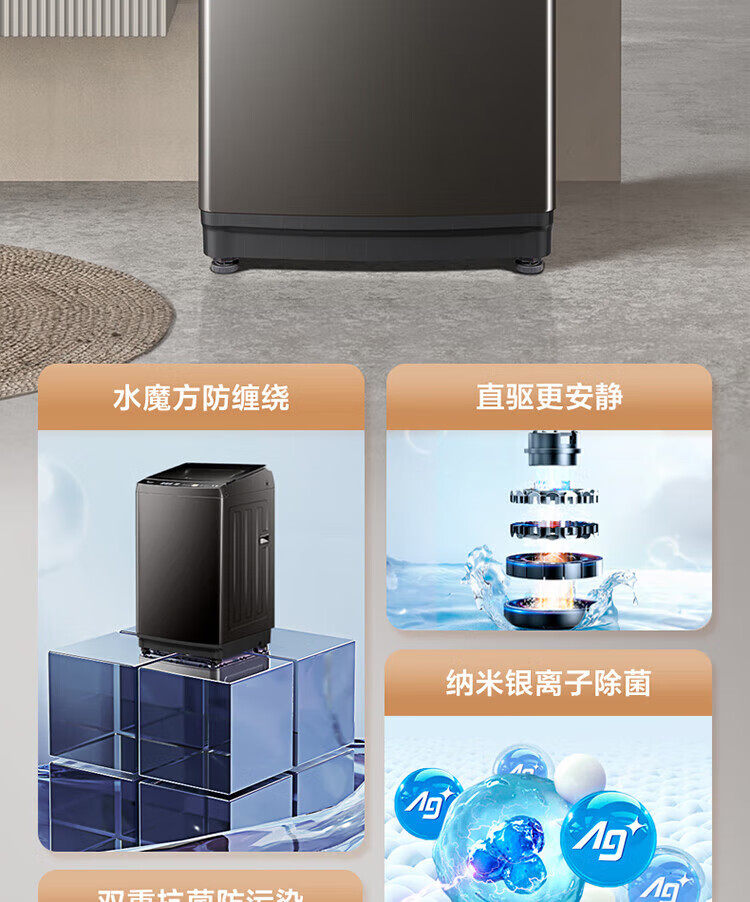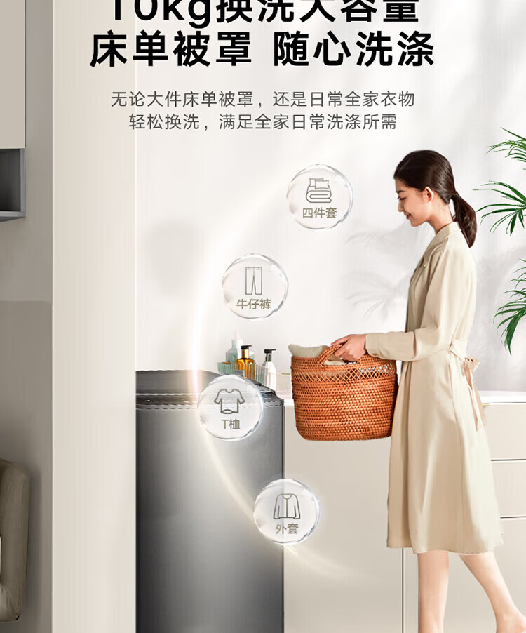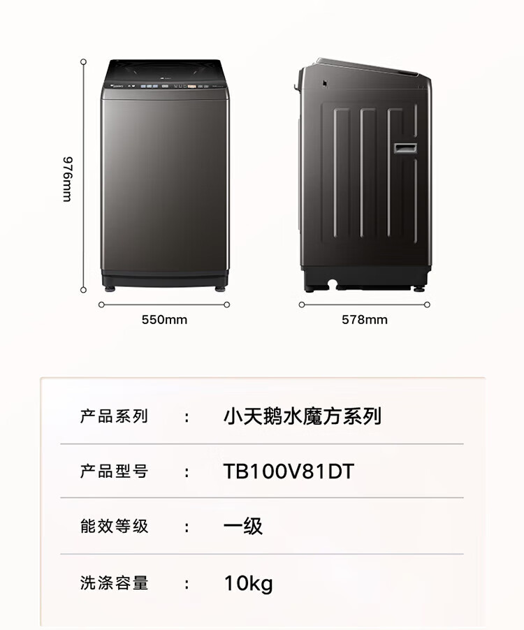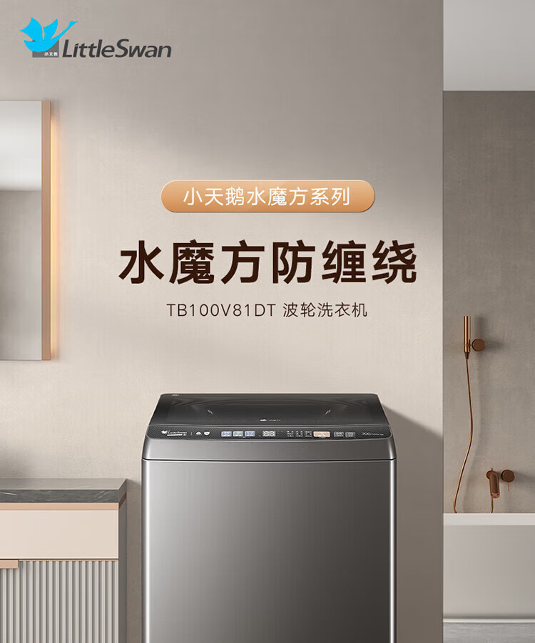 小天鹅(LittleSwan)波轮洗衣机全自动家用10KG大容量水魔方防缠绕 直驱变频 除菌TB100V81DT 出租屋 以旧换新京东自营