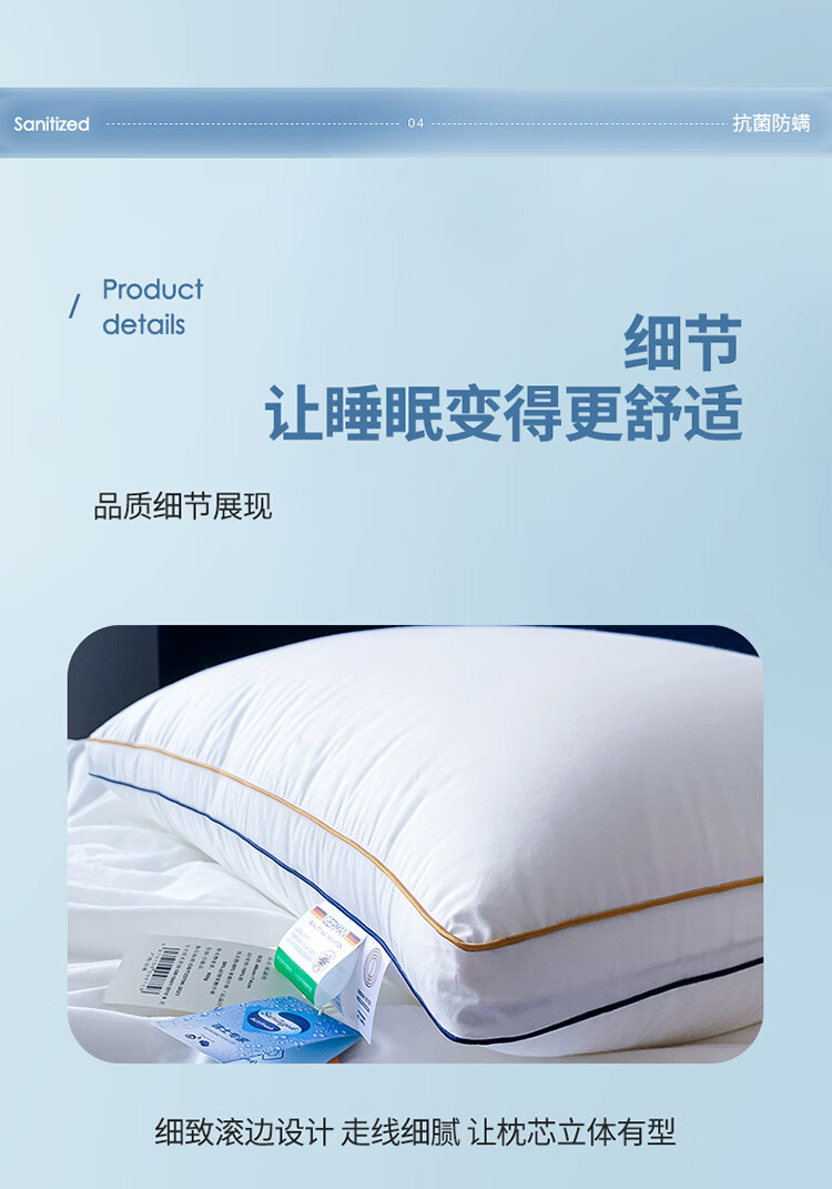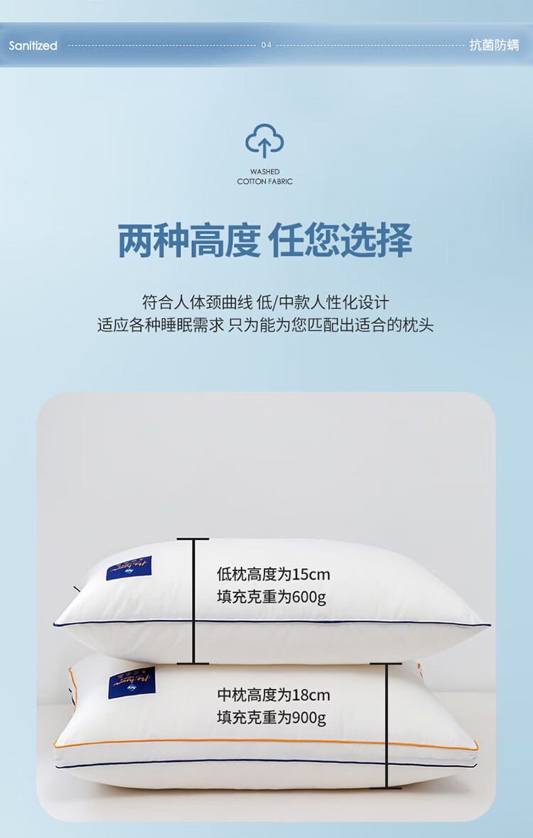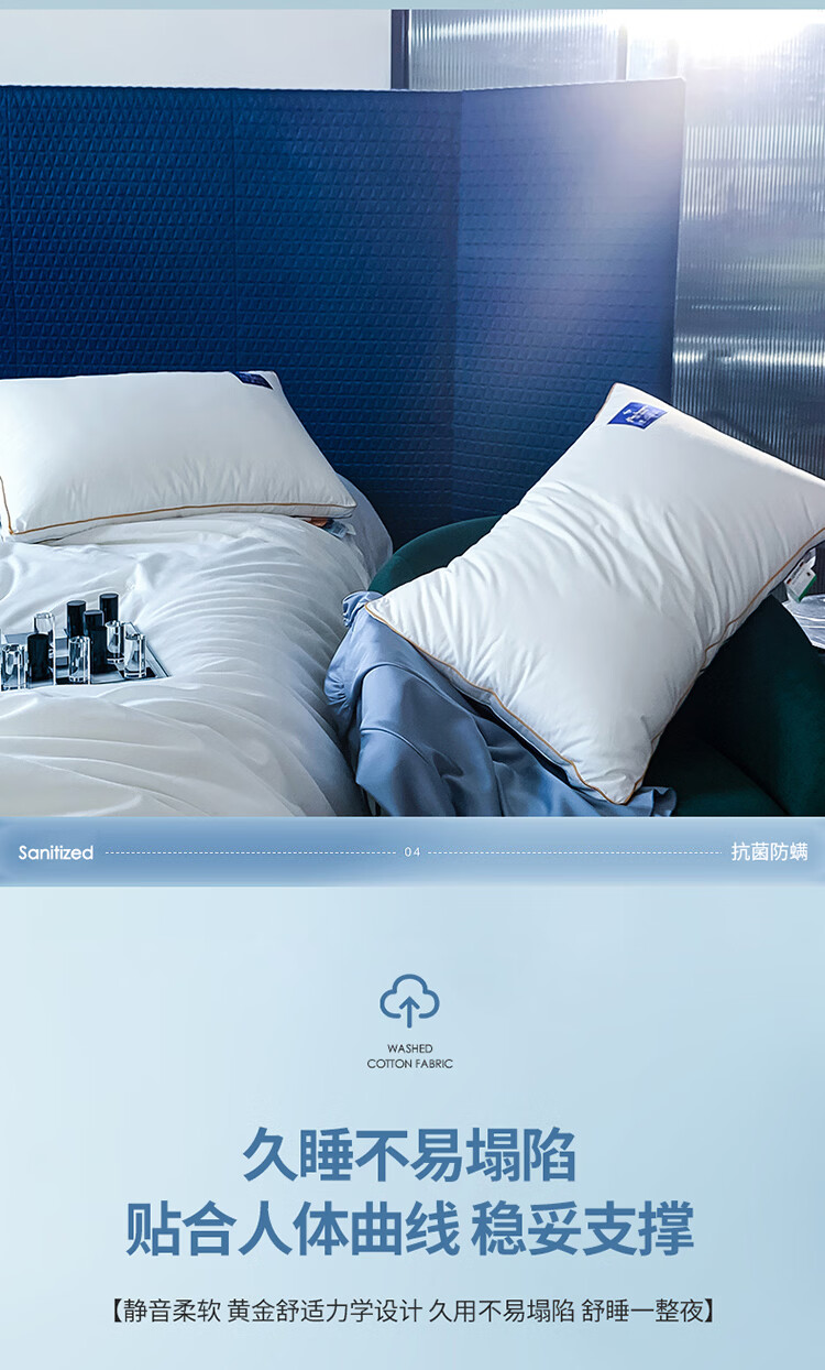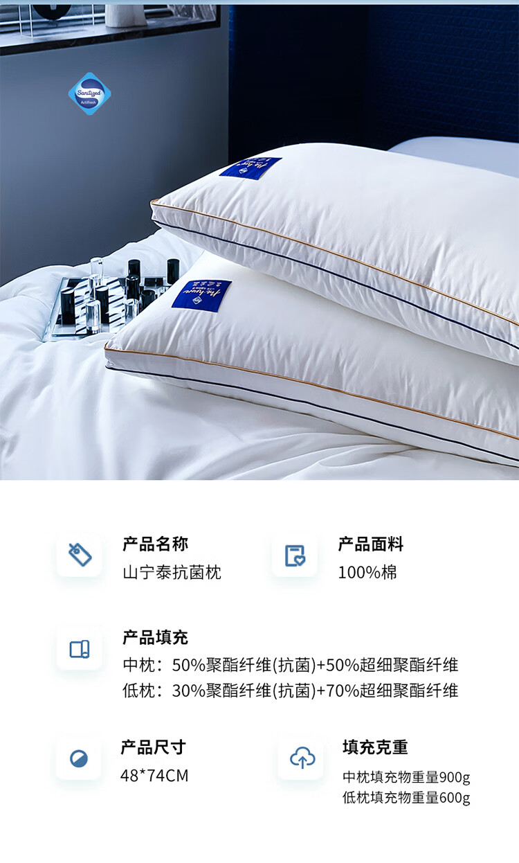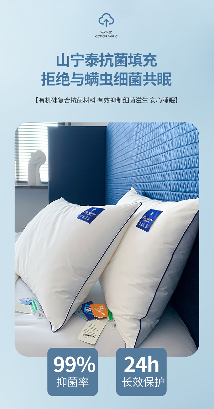 ROLAND LIVE高端山宁泰抗菌枕全棉防螨枕头护颈椎助睡眠柔软酒店枕芯48*74cm EOEO 山宁泰抗菌枕 1只装 低枕【约15cm】 48*74cm