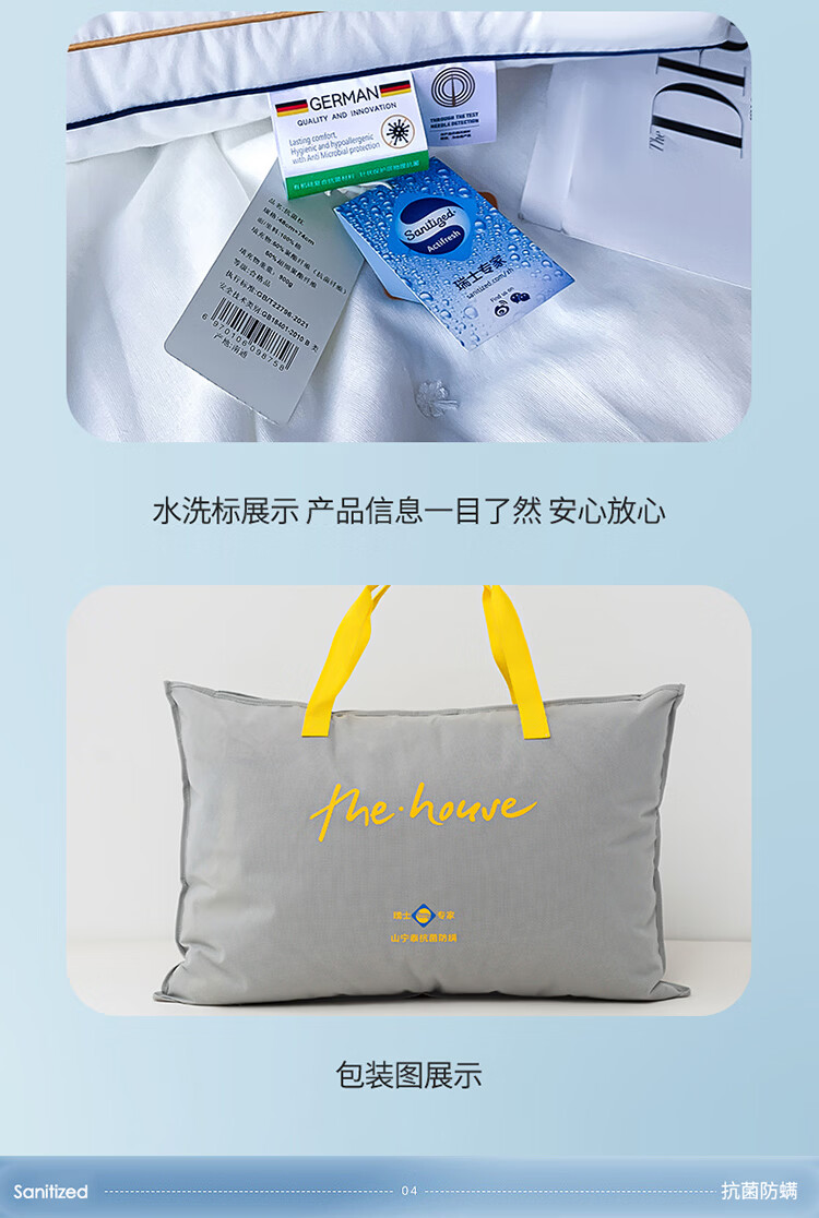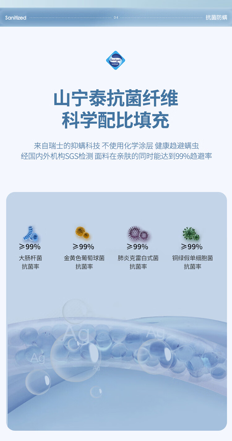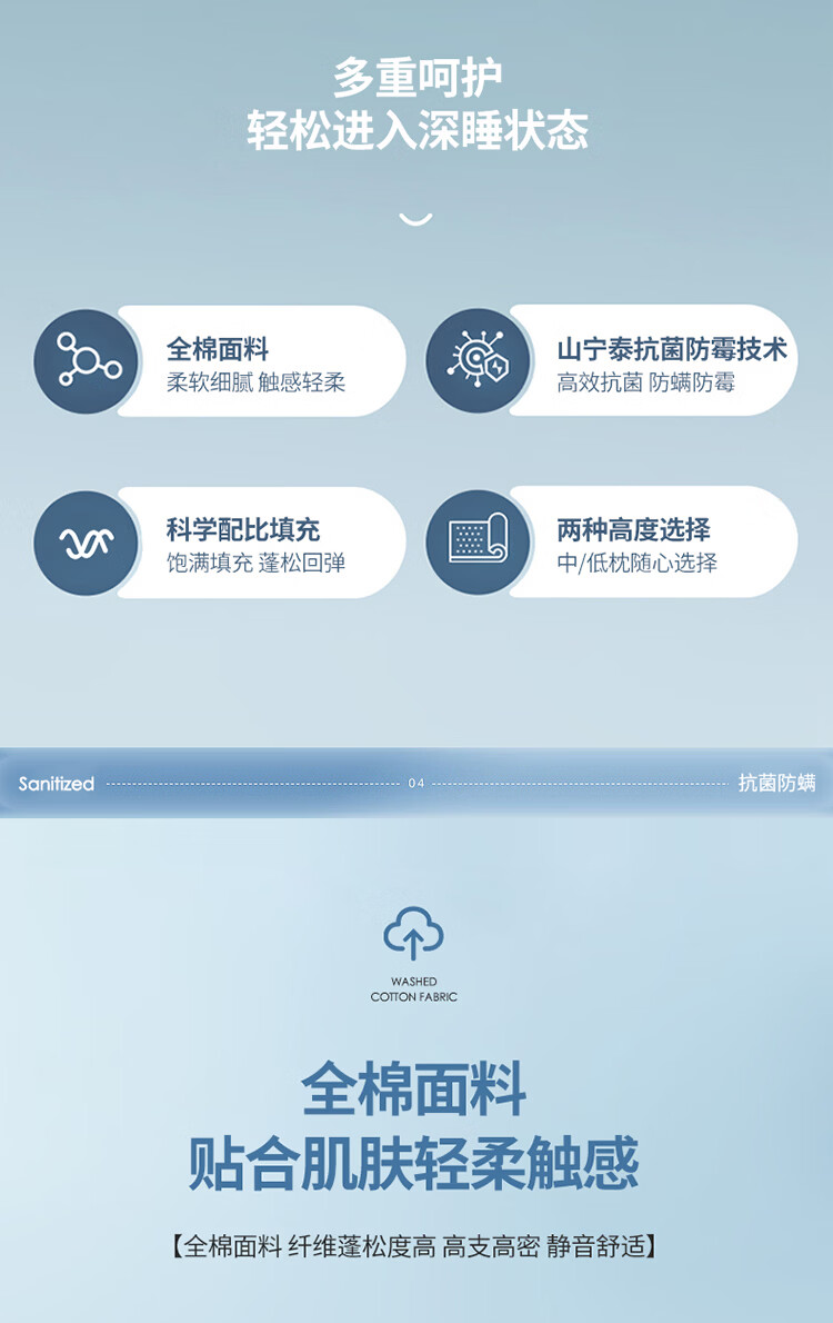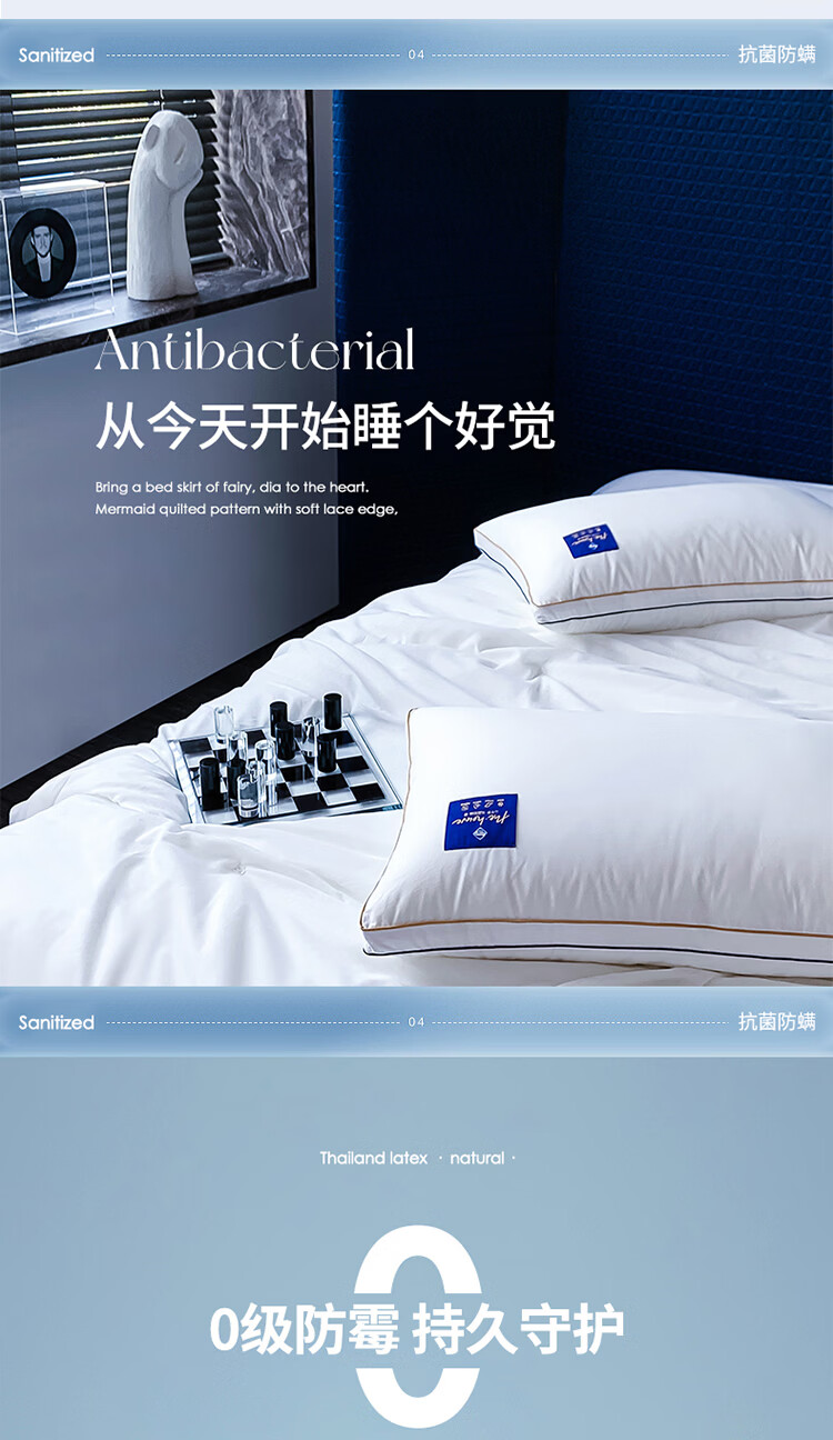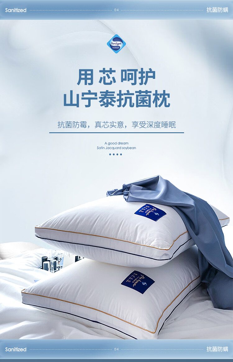 ROLAND LIVE高端山宁泰抗菌枕全棉防螨枕头护颈椎助睡眠柔软酒店枕芯48*74cm EOEO 山宁泰抗菌枕 1只装 低枕【约15cm】 48*74cm