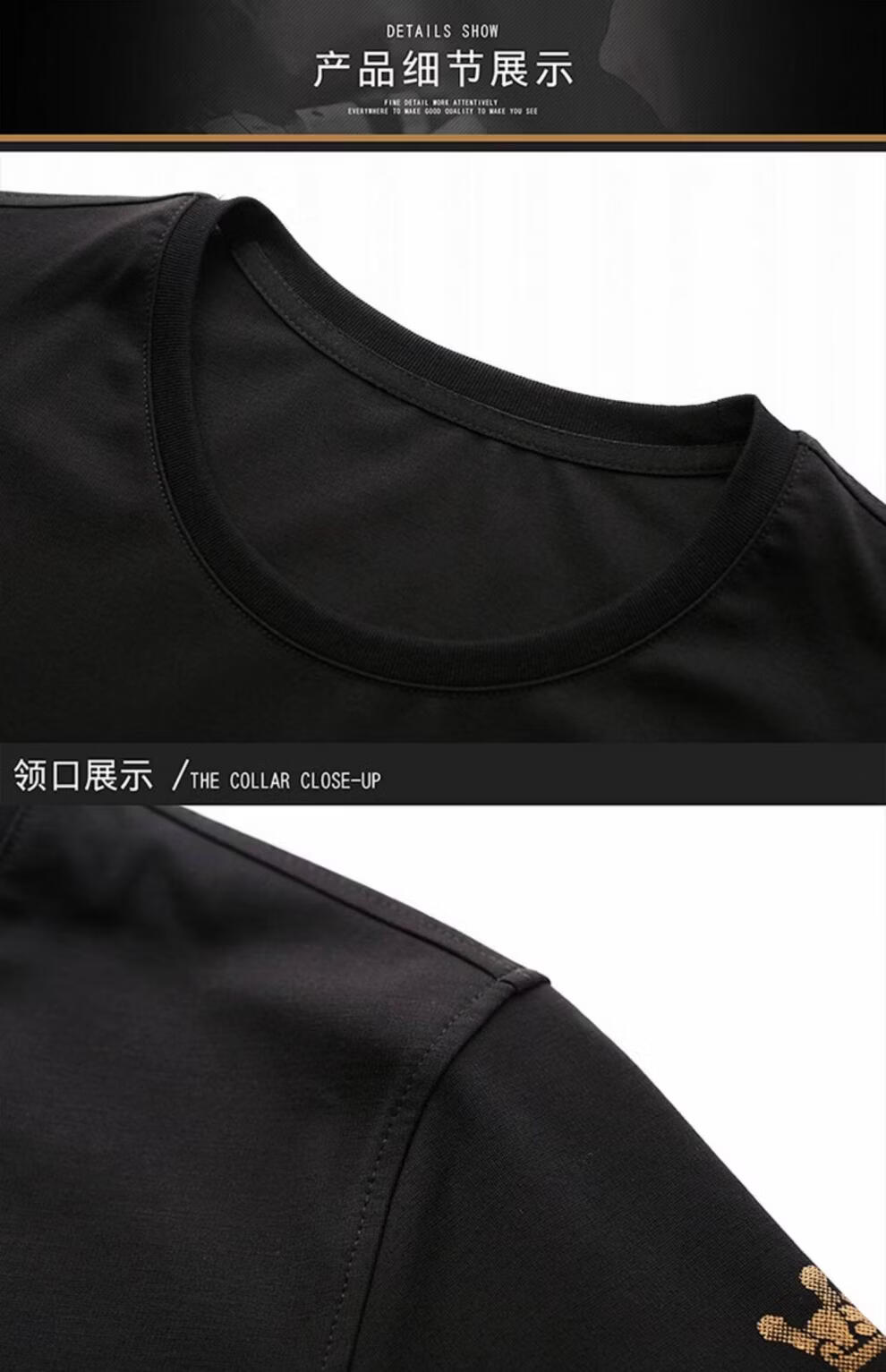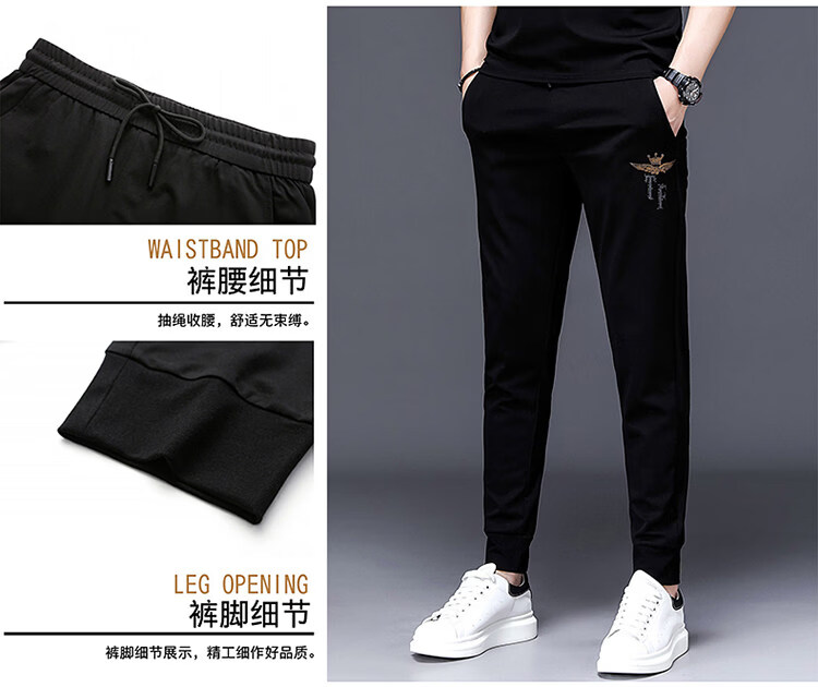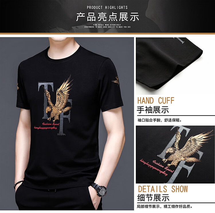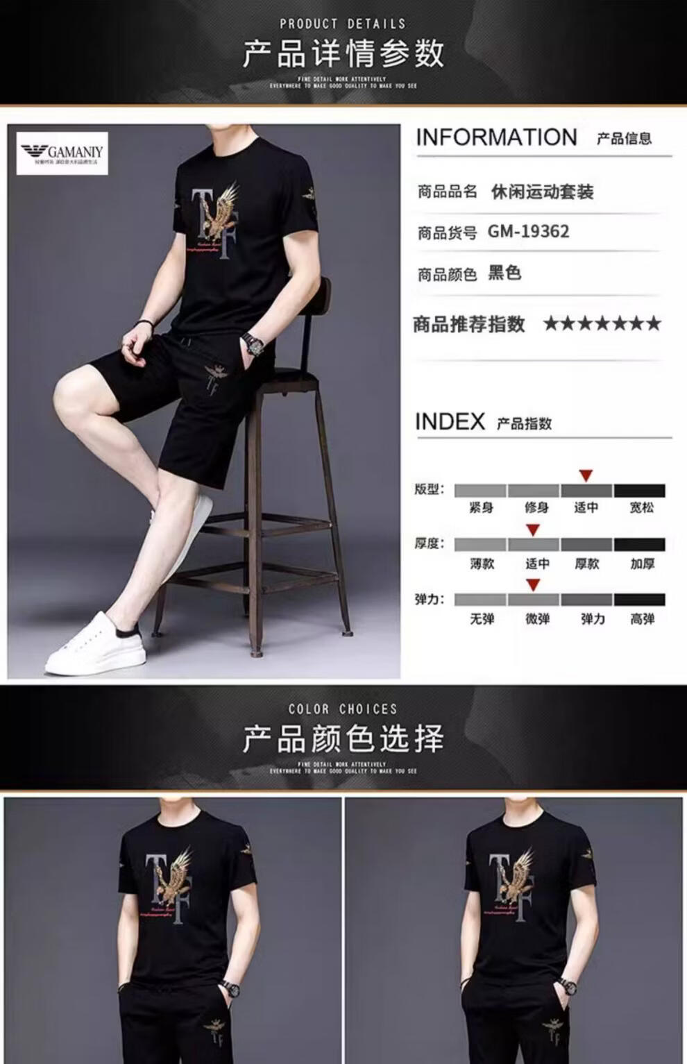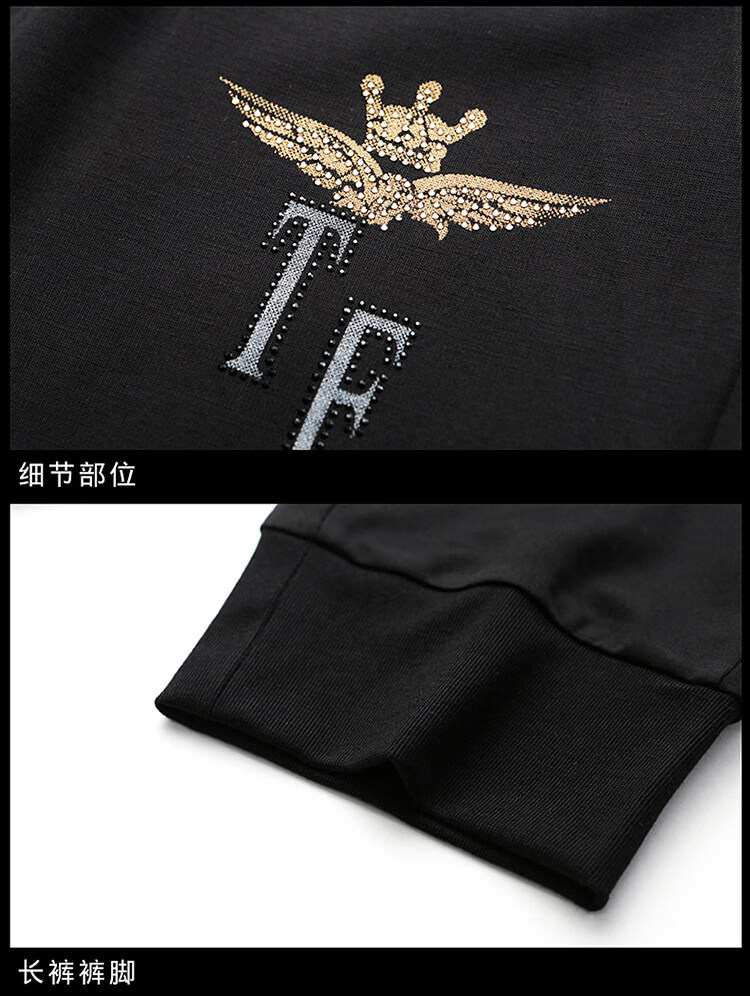 阿玛尼(ARMANI)正品名牌男士休闲运动服套装男夏季桑蚕丝短袖t恤潮男装三件套 国际一线品牌19362黑色短袖+长裤 M 165_【建议90-120斤】