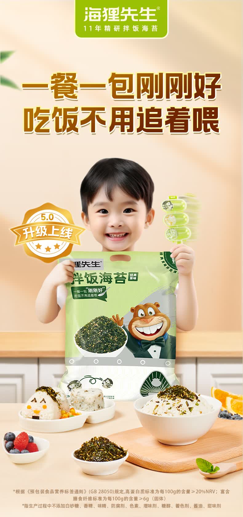 海狸先生拌饭海苔蔬菜多多独立包装碎儿童高钙寿司海苔食材 2袋*100g