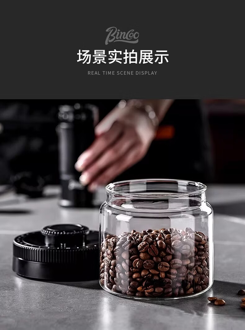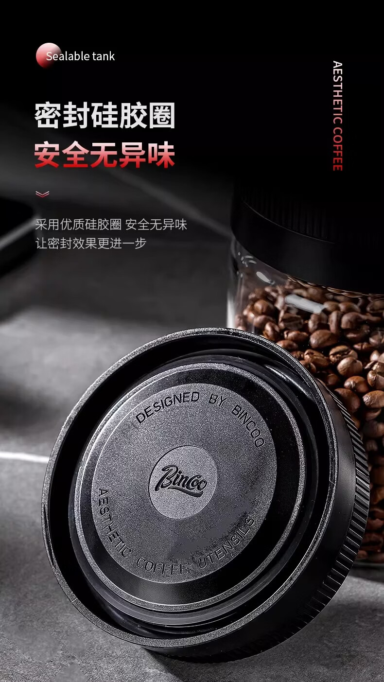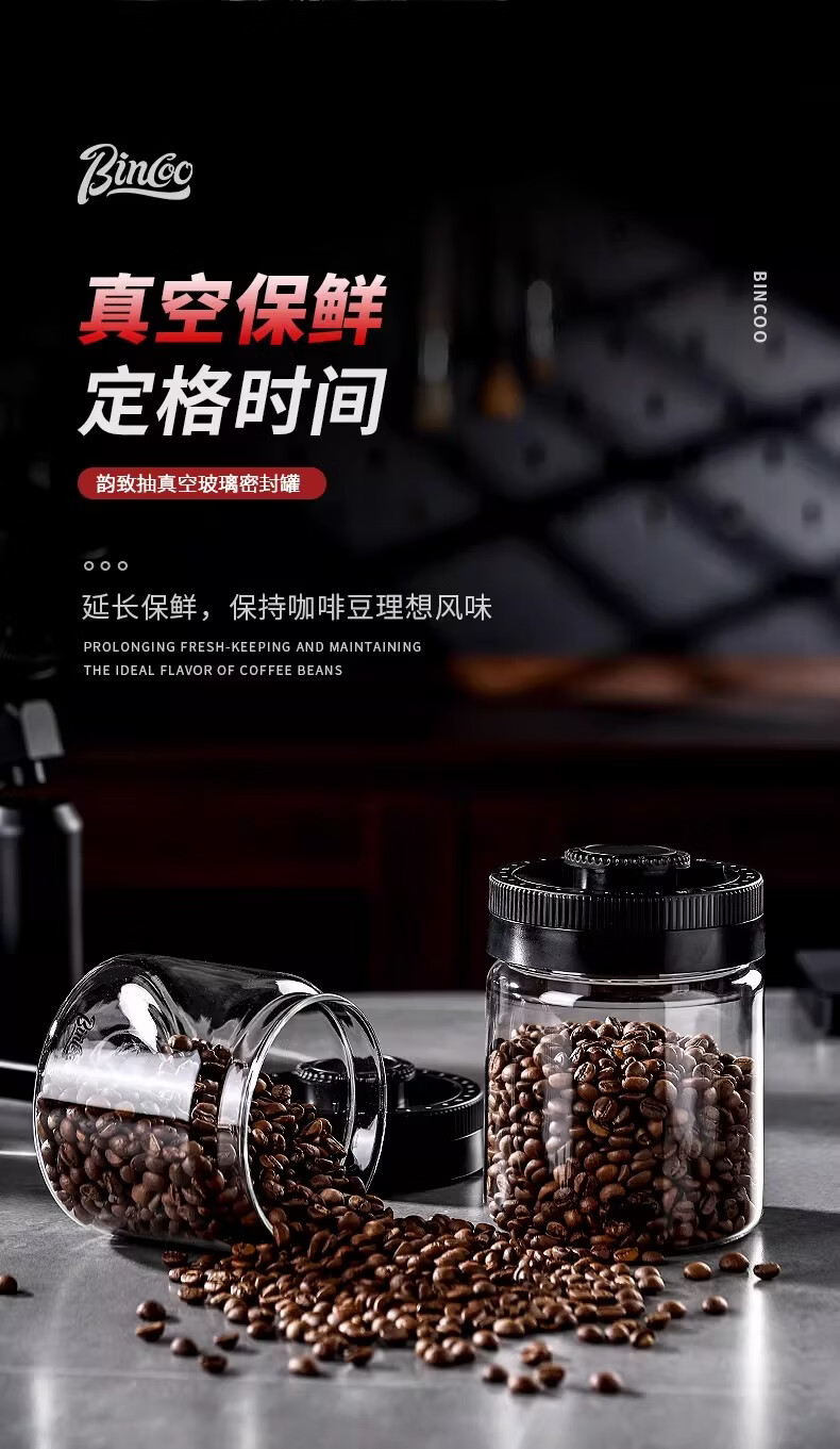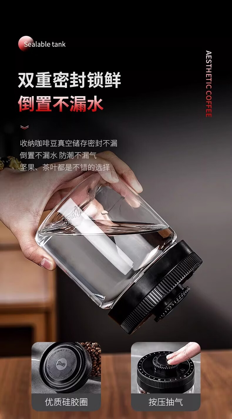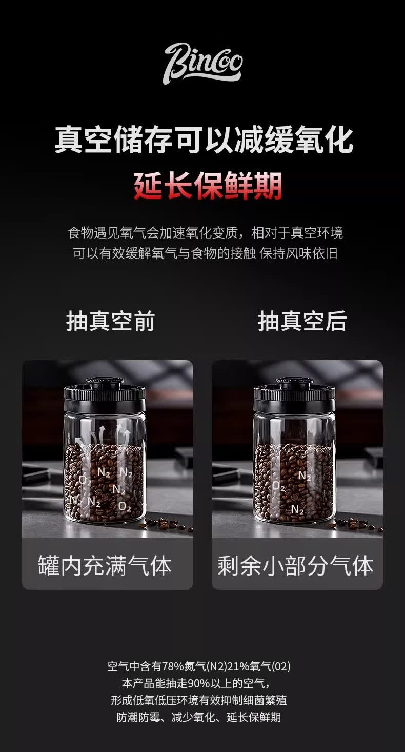 Bincoo抽真空密封罐玻璃咖啡豆储存罐咖啡豆保鲜收纳罐咖啡粉储存 黑色-400ML=160g咖啡豆