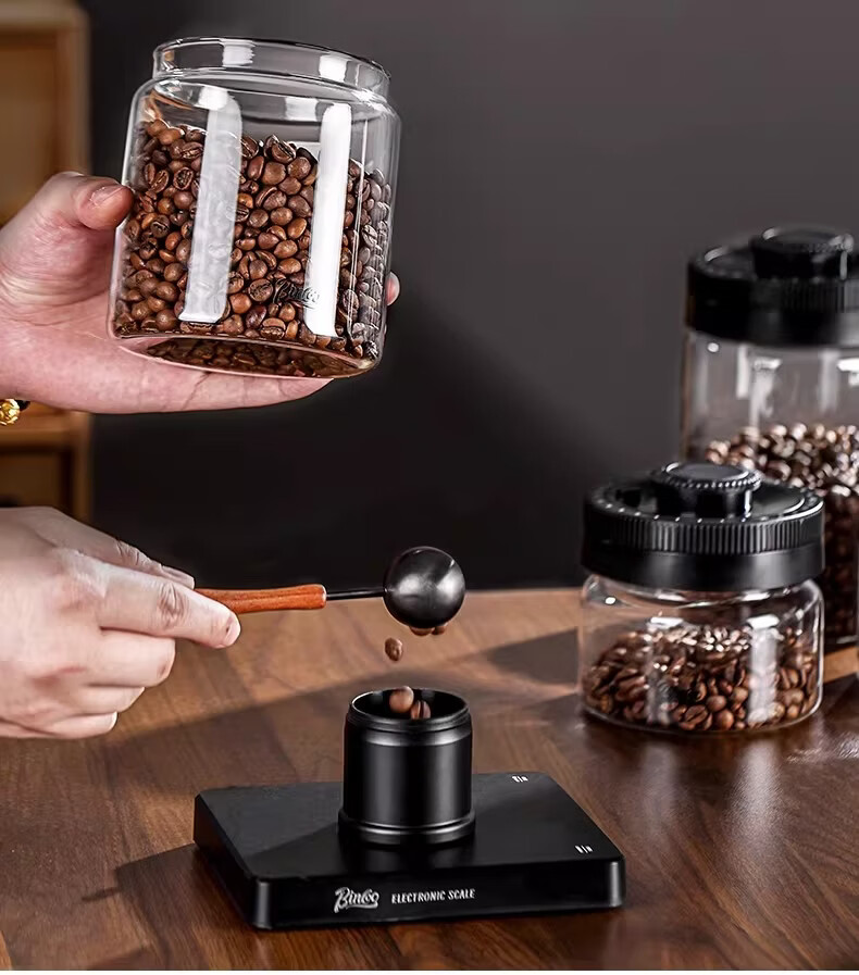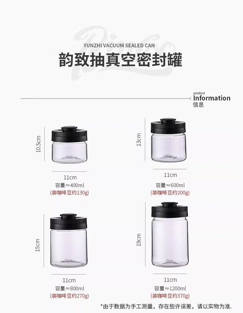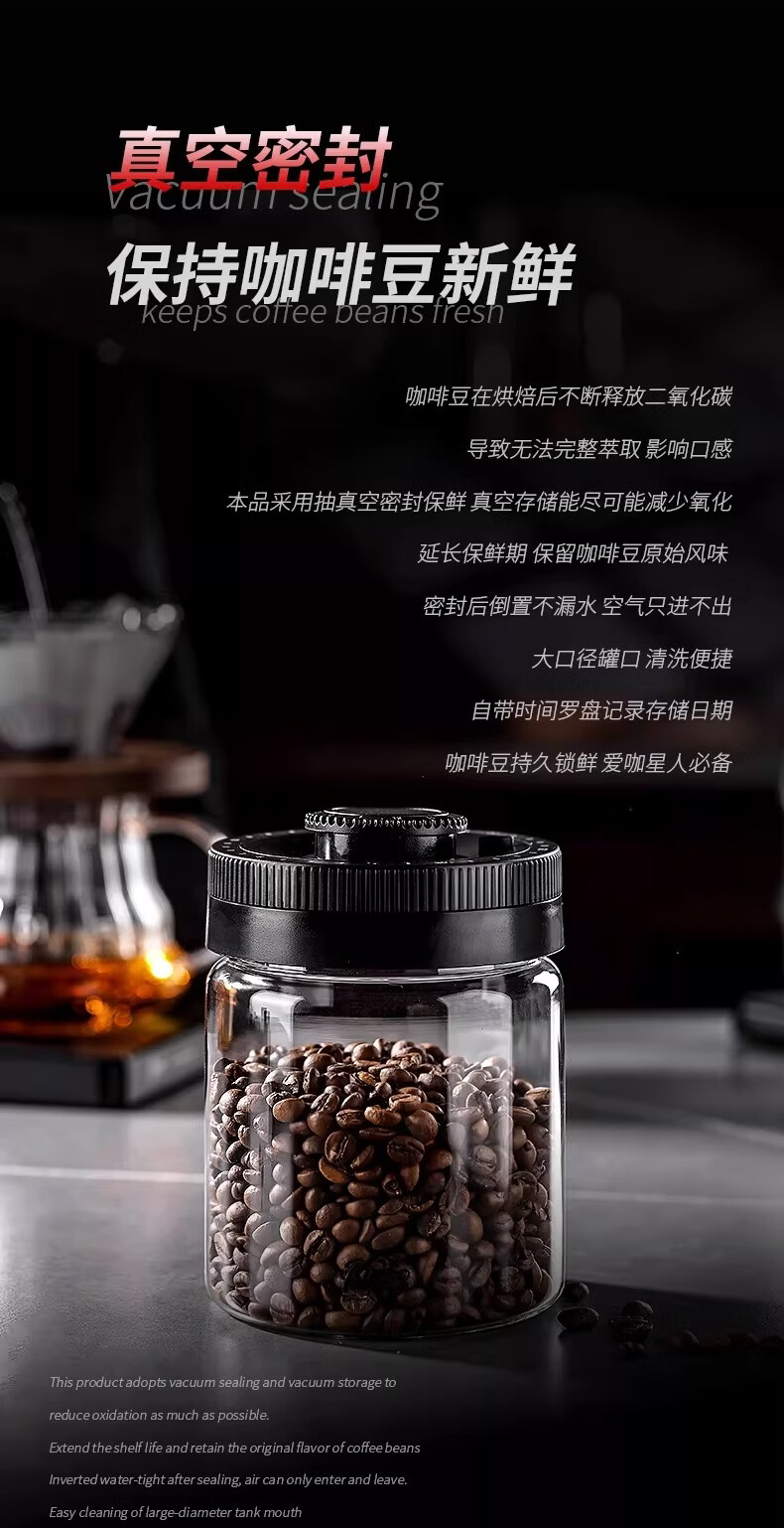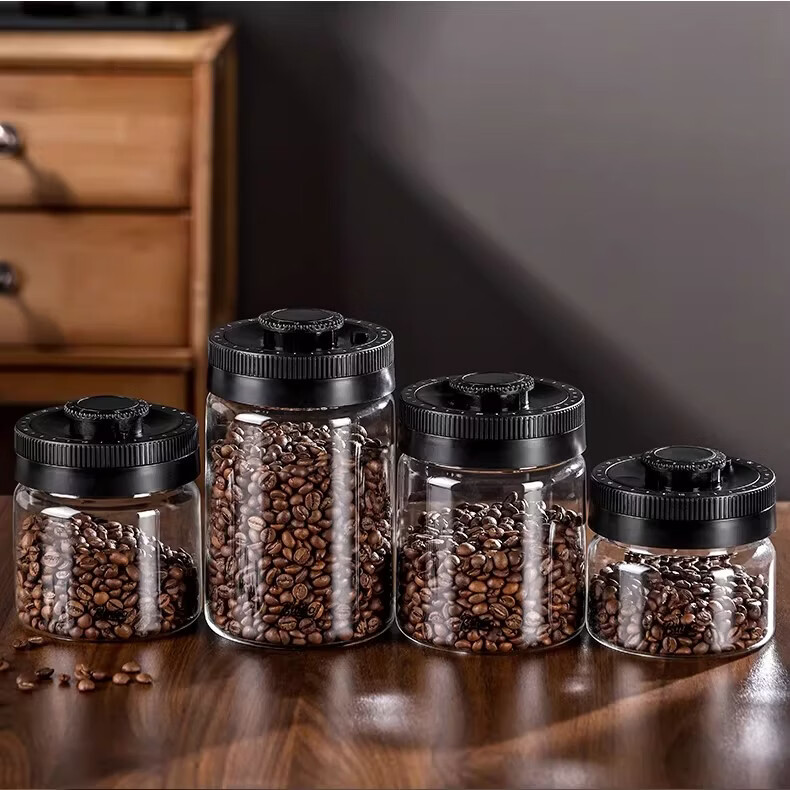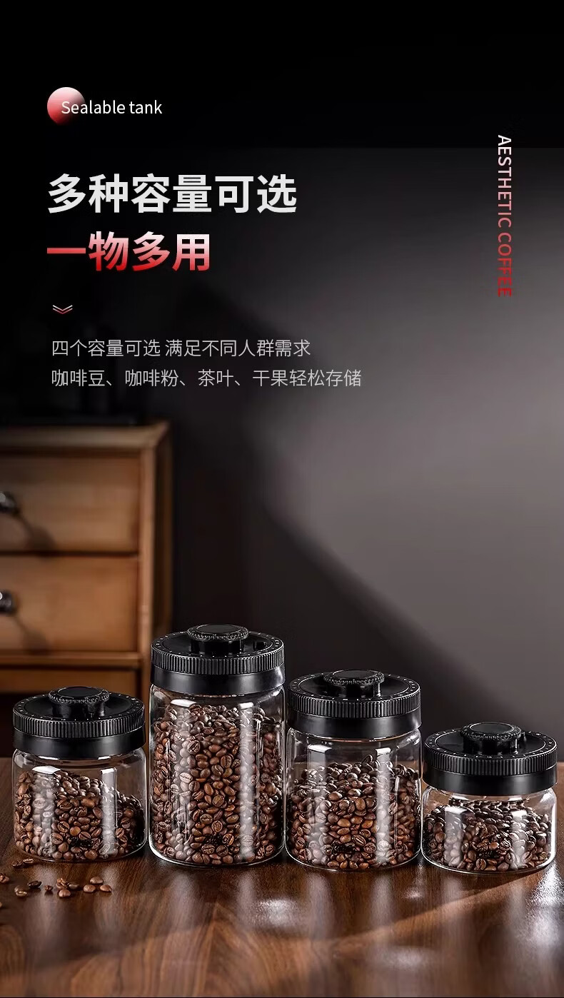 Bincoo抽真空密封罐玻璃咖啡豆储存罐咖啡豆保鲜收纳罐咖啡粉储存 黑色-400ML=160g咖啡豆