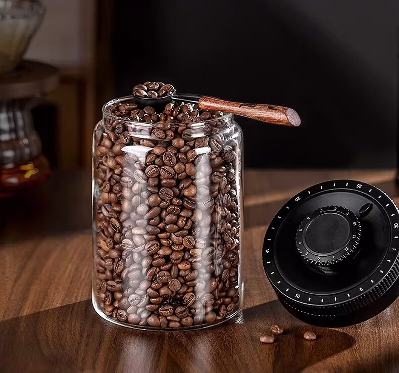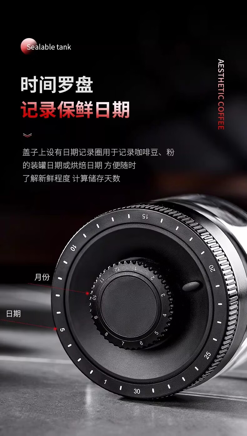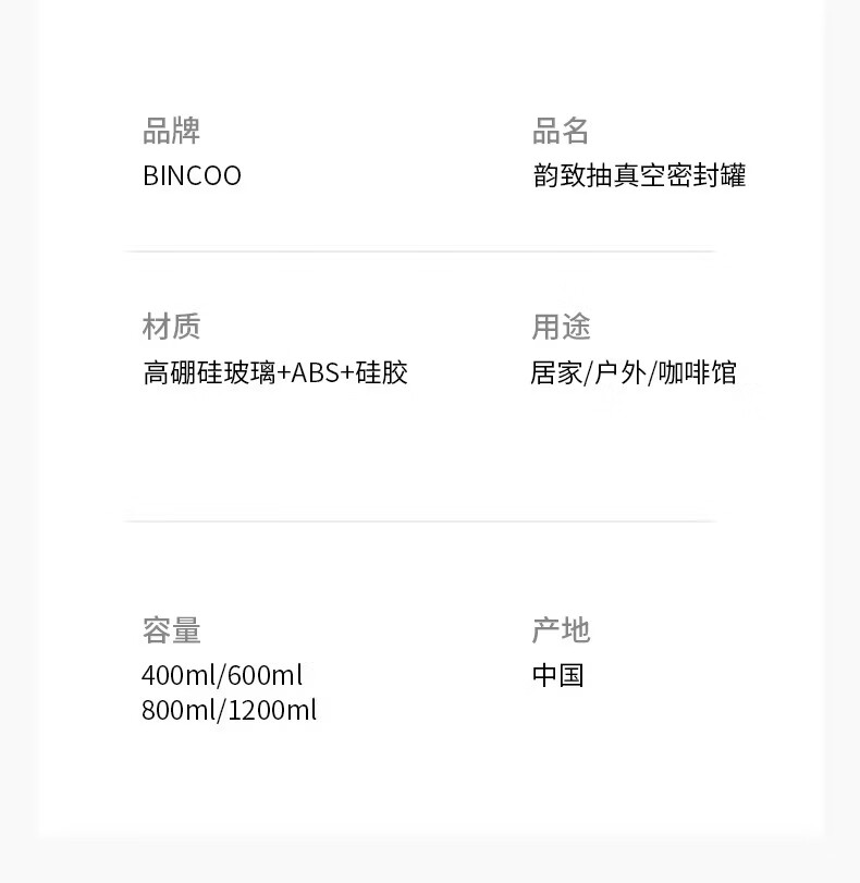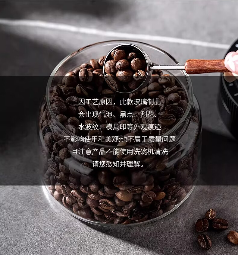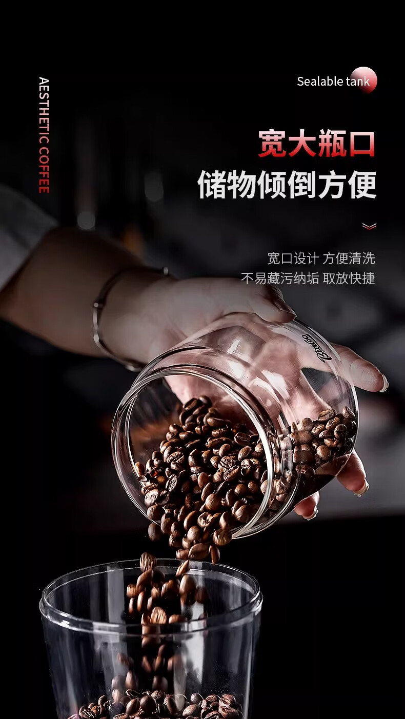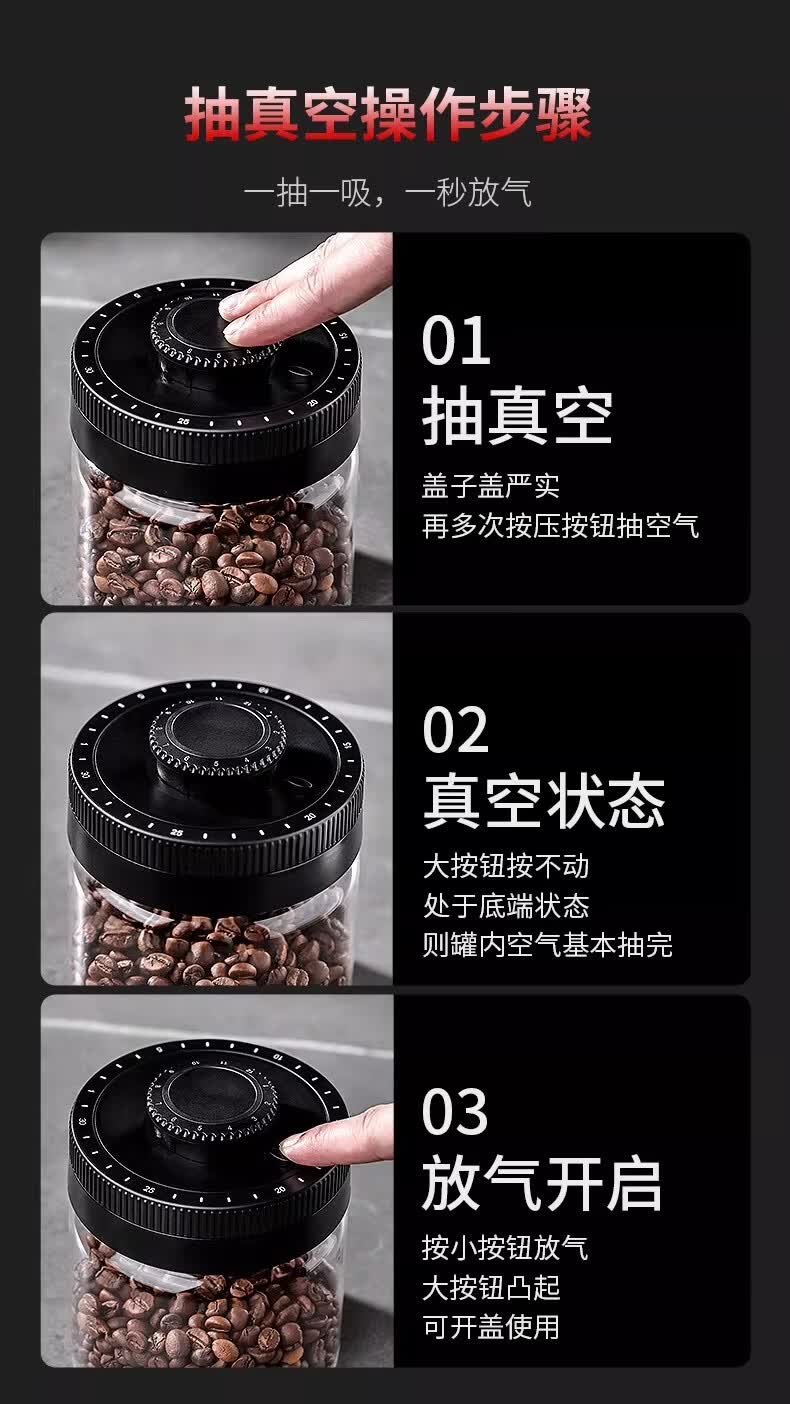 Bincoo抽真空密封罐玻璃咖啡豆储存罐咖啡豆保鲜收纳罐咖啡粉储存 黑色-400ML=160g咖啡豆