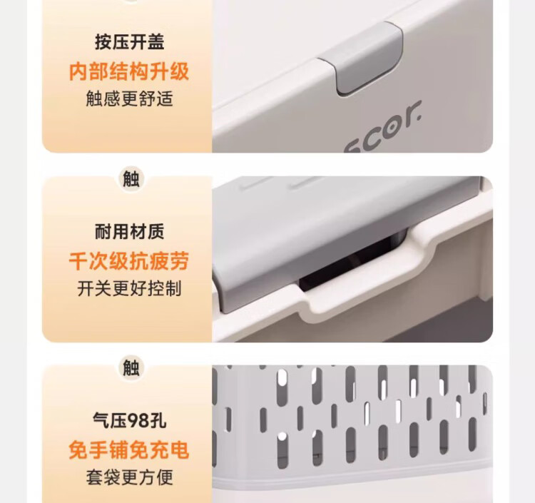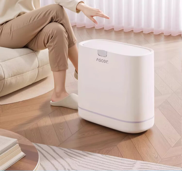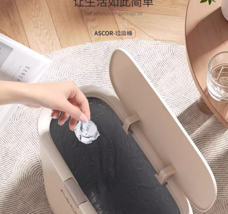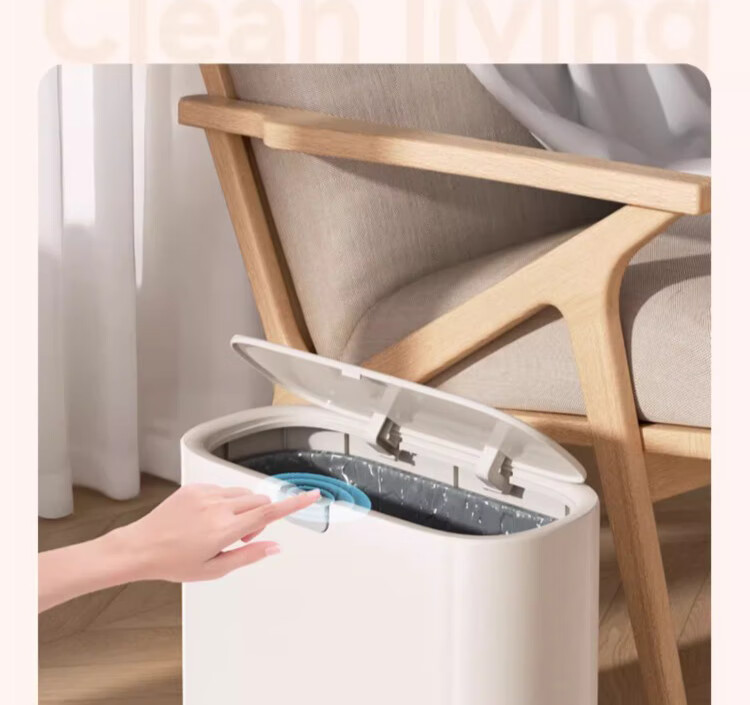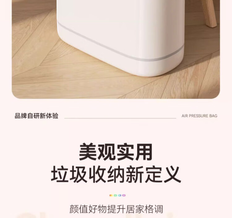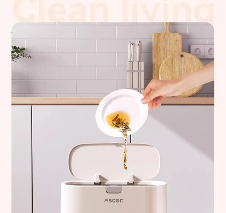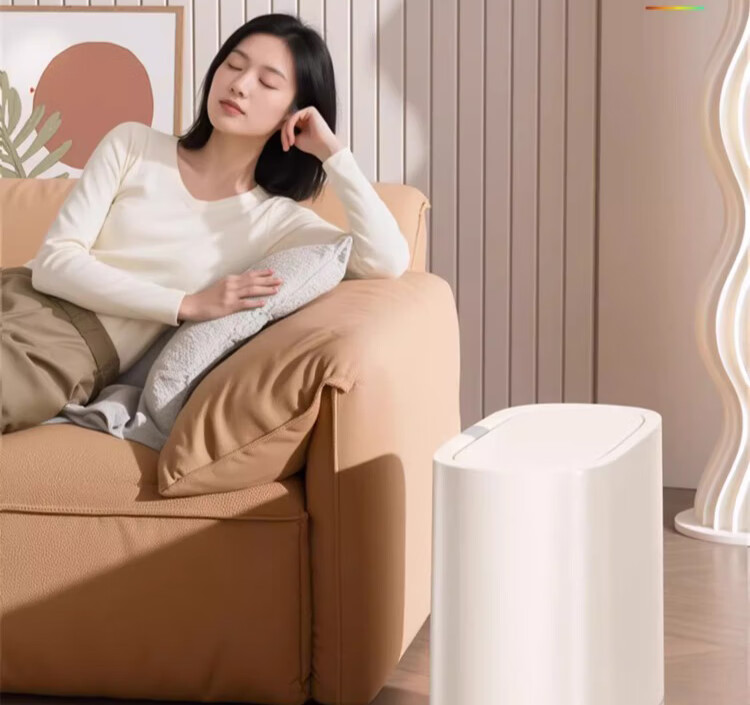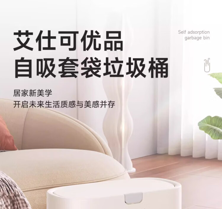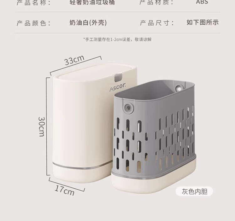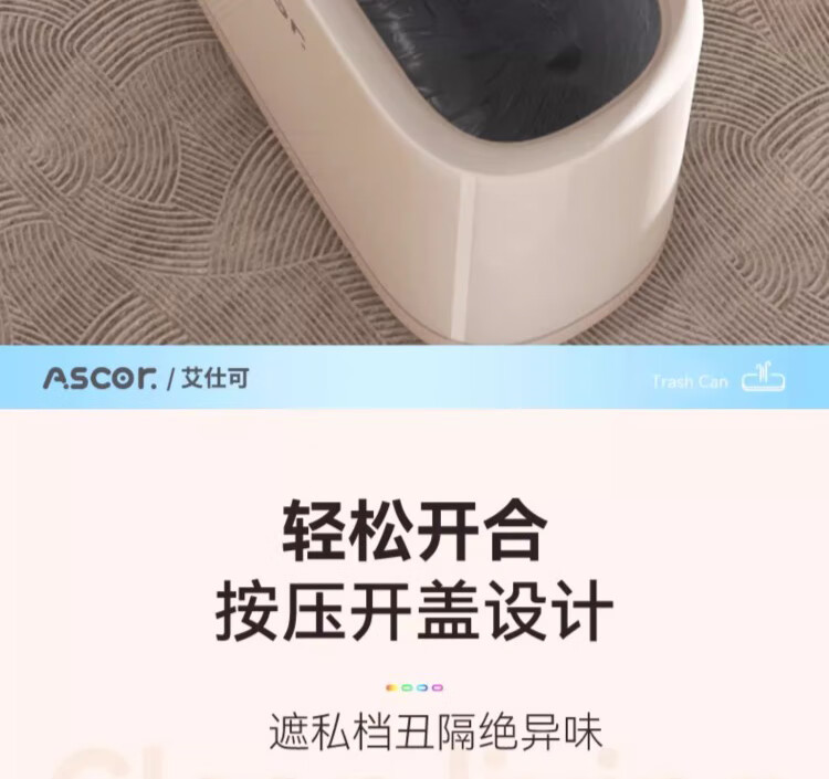 艾仕可2026新款家用垃圾桶夹缝垃圾桶卫生间厕所专用带盖大容量客厅厨房 米白色1个装 按压式 15L