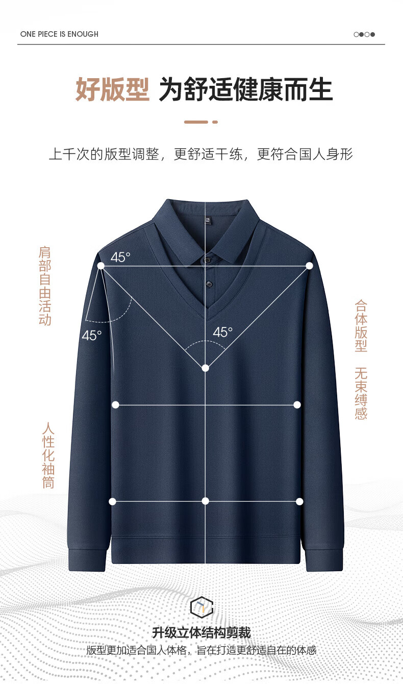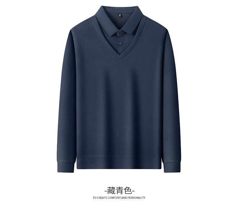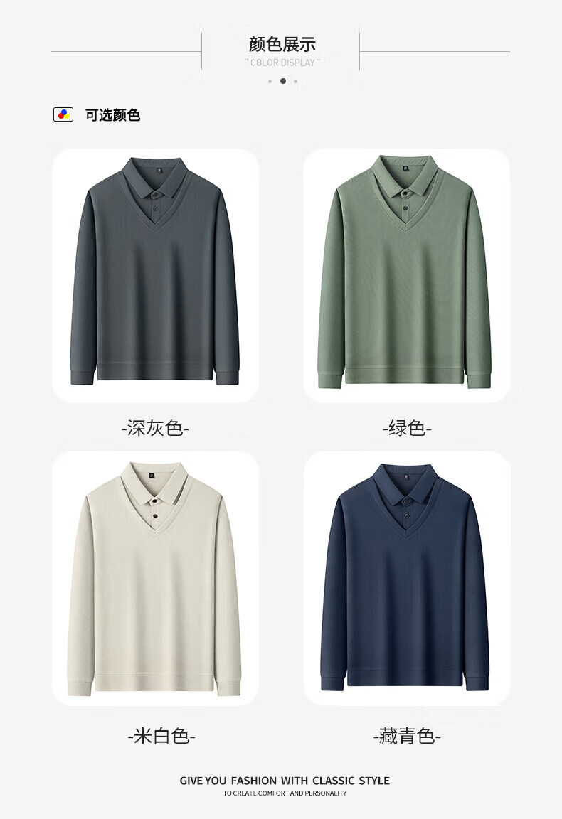 SHANSHAN长袖T恤男秋季新商务百搭假两件衬衫领男士通勤上班内搭上衣 深灰色 2XL 185