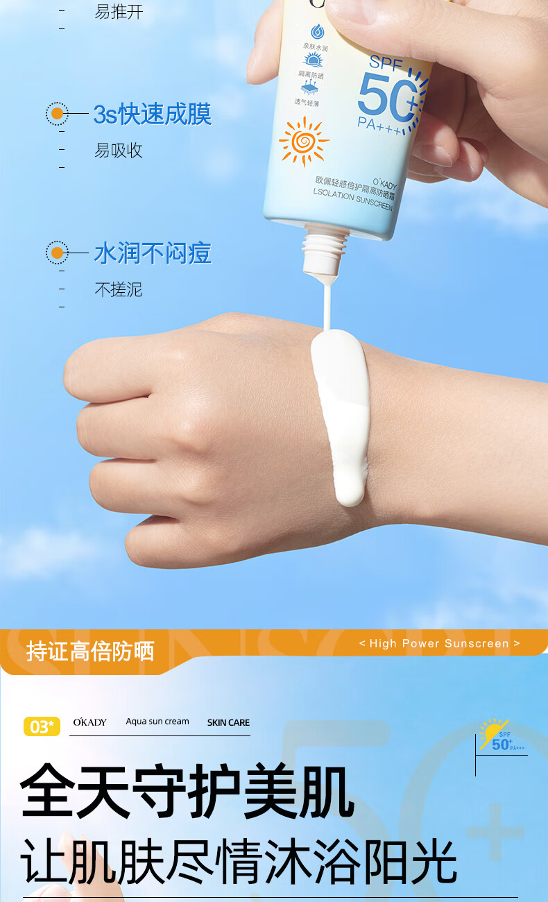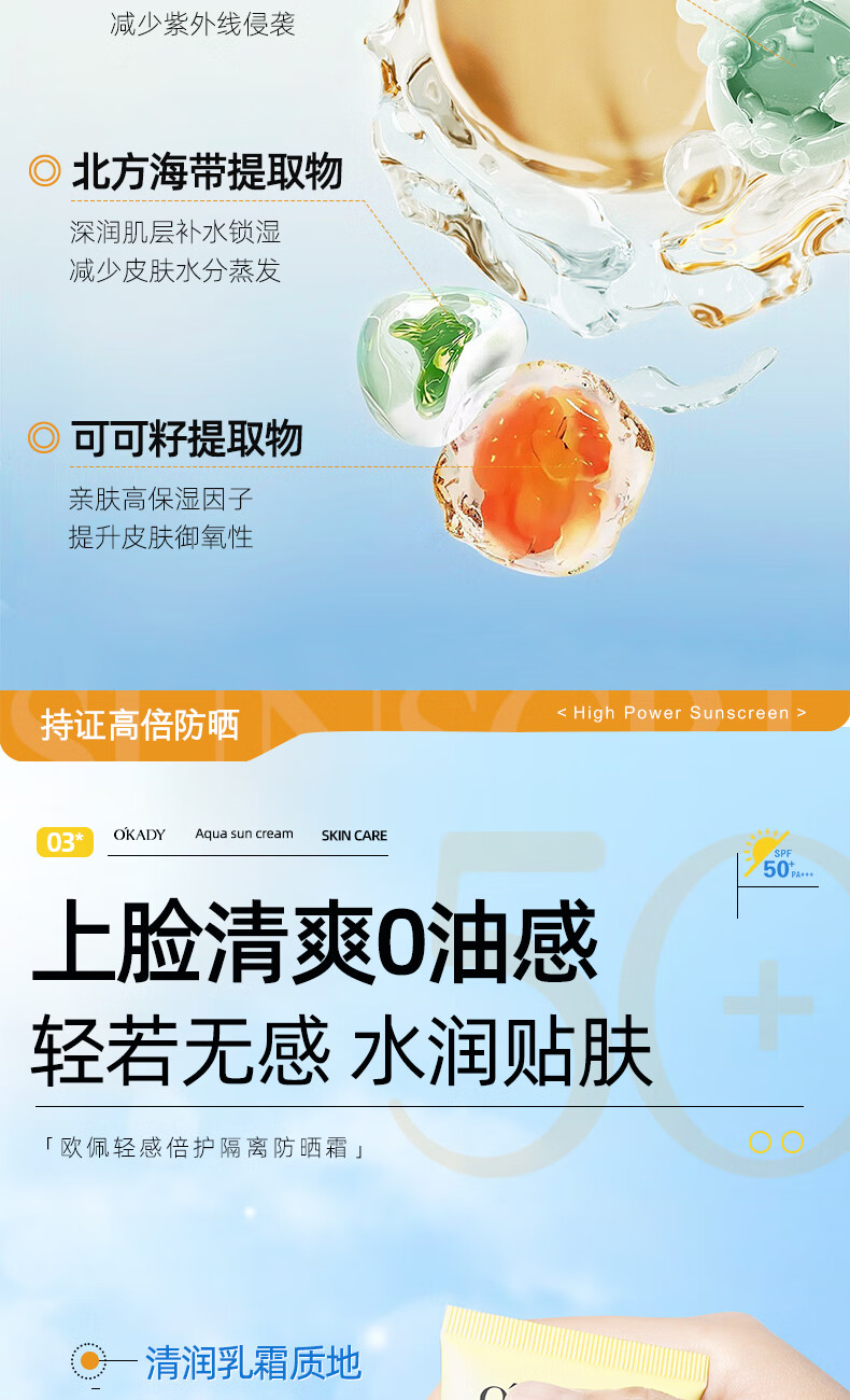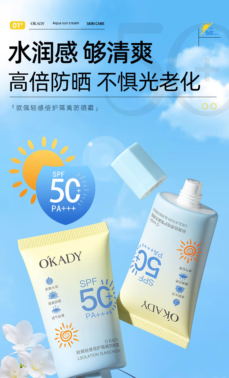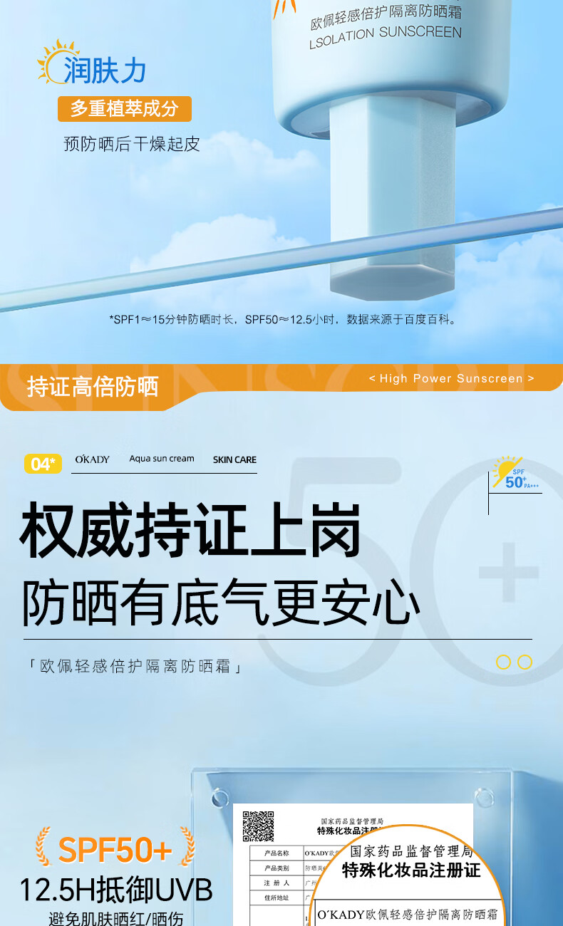 欧佩O'KADY【柳岩推荐】SPF50+++高倍防晒霜男女美白隔离霜遮瑕户外防水防汗 小太阳防晒霜 40g/支