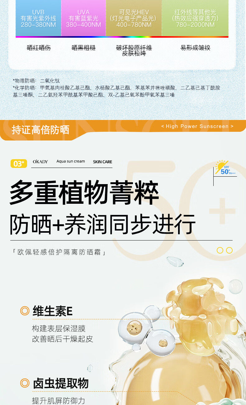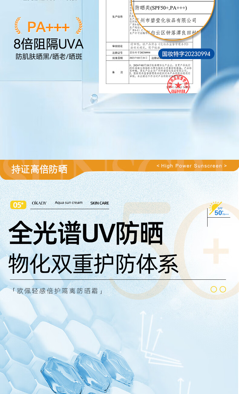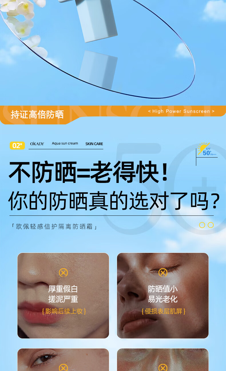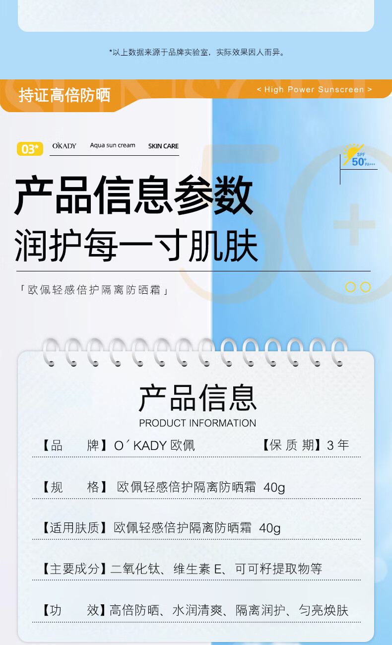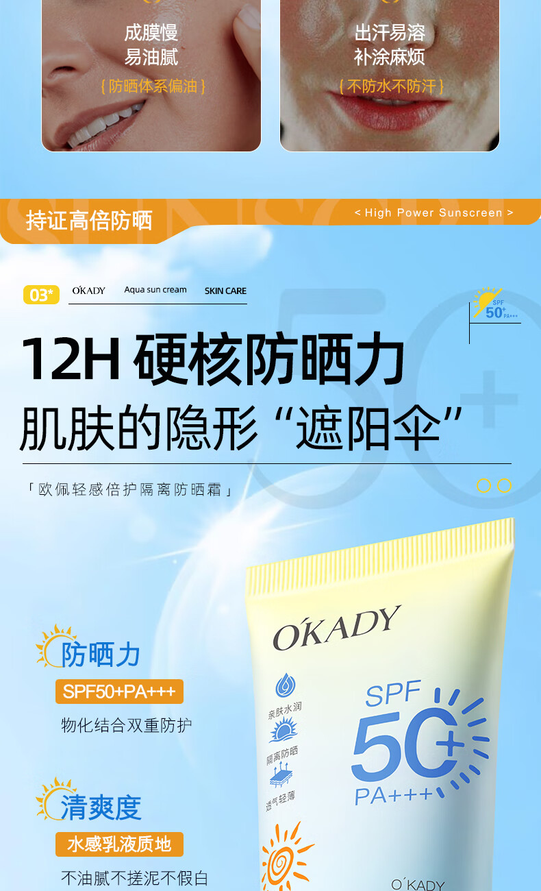 欧佩O'KADY【柳岩推荐】SPF50+++高倍防晒霜男女美白隔离霜遮瑕户外防水防汗 小太阳防晒霜 40g/支