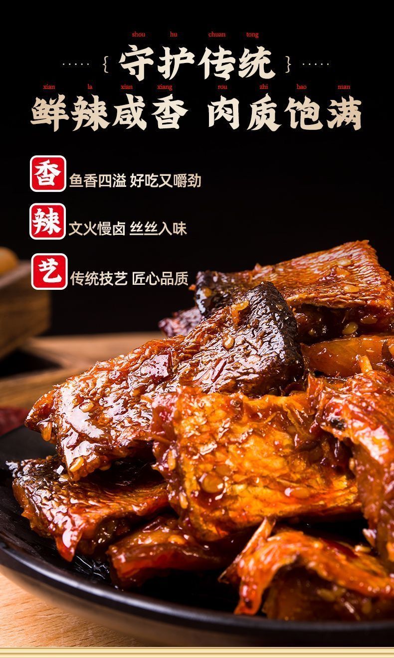 深生都湖南特产香辣鱼排大块爆辣手撕全熟鱼开袋即食麻辣鱼尾零食下饭菜 爆椒鱼排100g 2两重