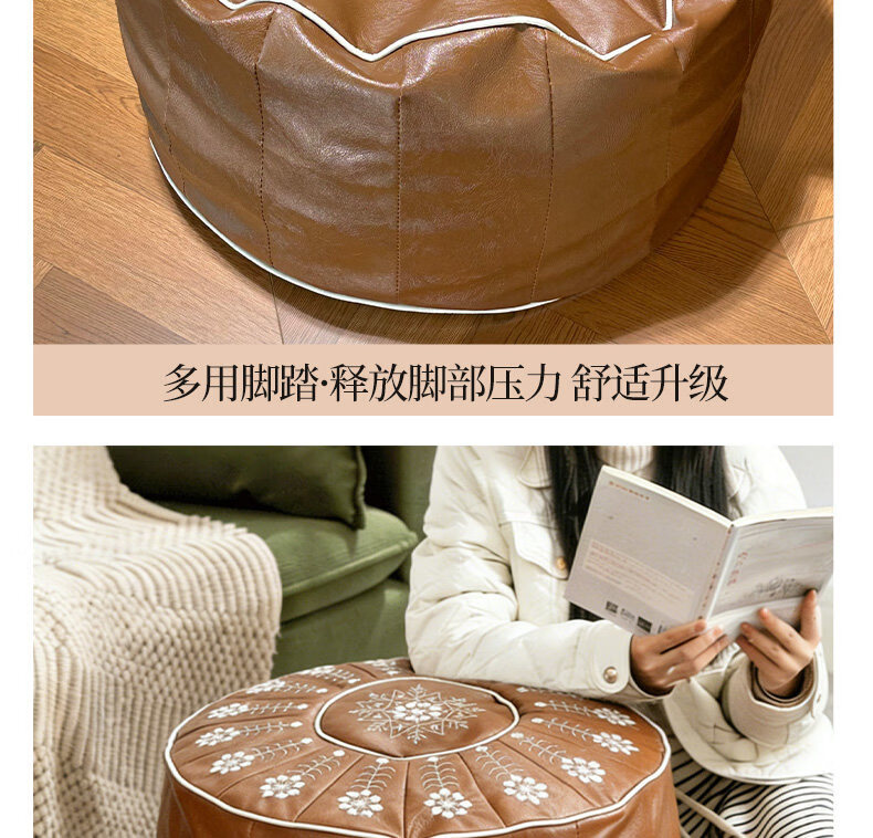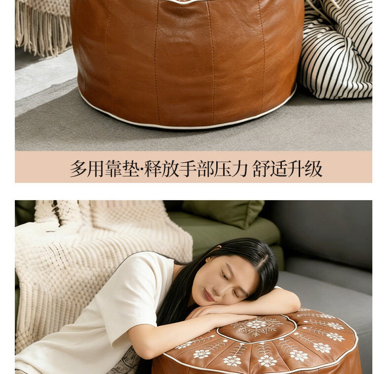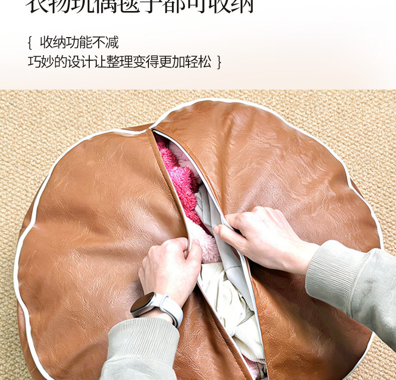 水天一方中式轻奢皮墩收纳凳客厅居家收纳箱衣服玩偶收纳袋换季沙发坐墩 坐垫收纳包【自行填充收纳旧衣服玩偶】 耐磨猫爪皮 1个