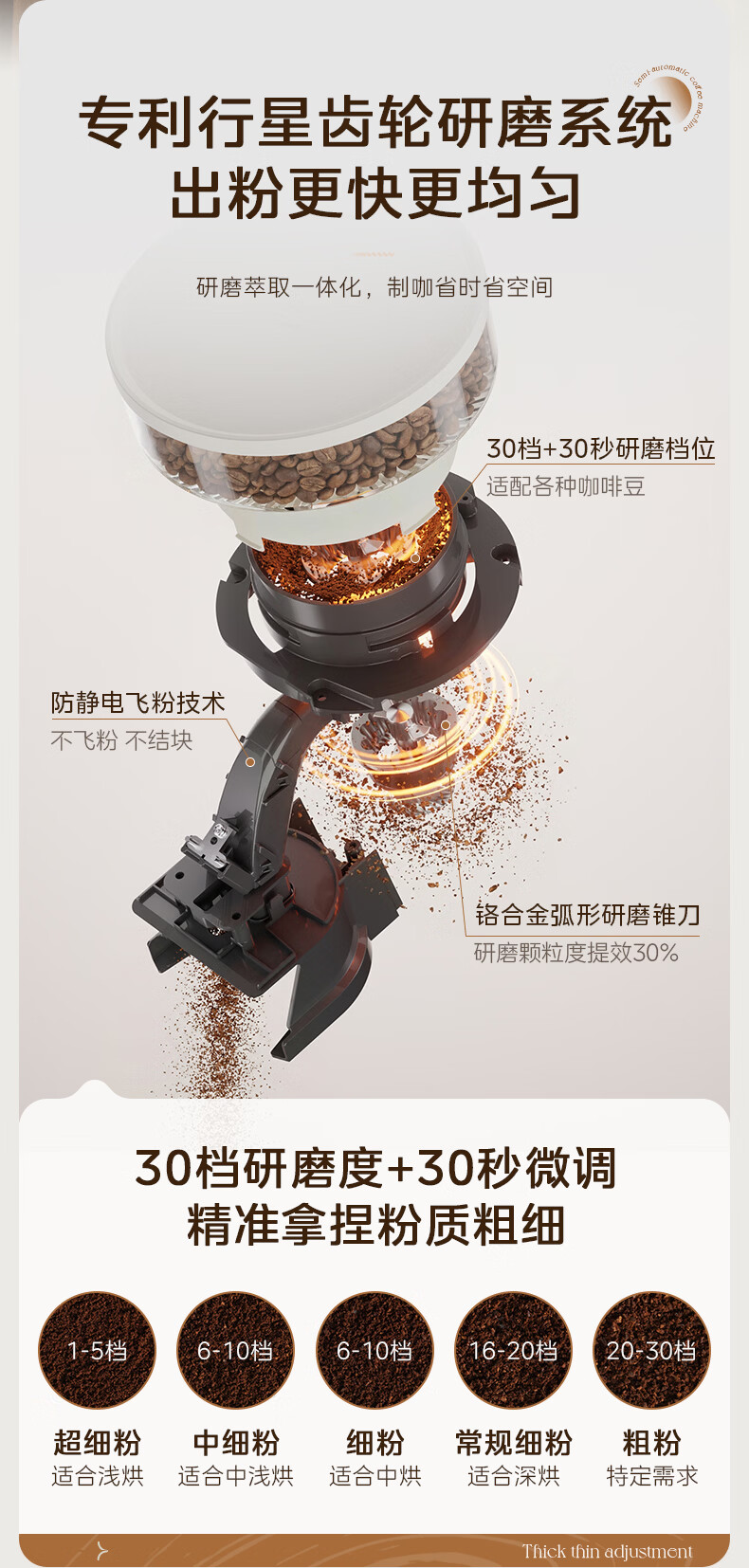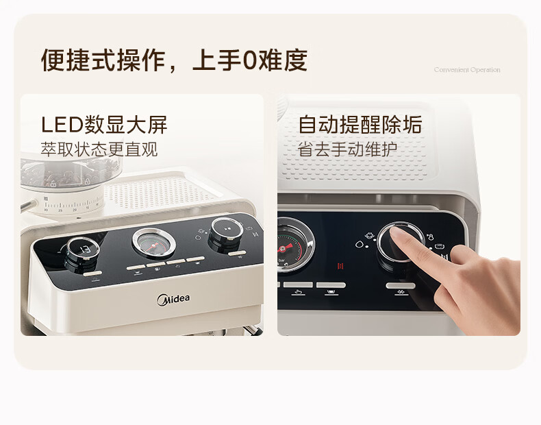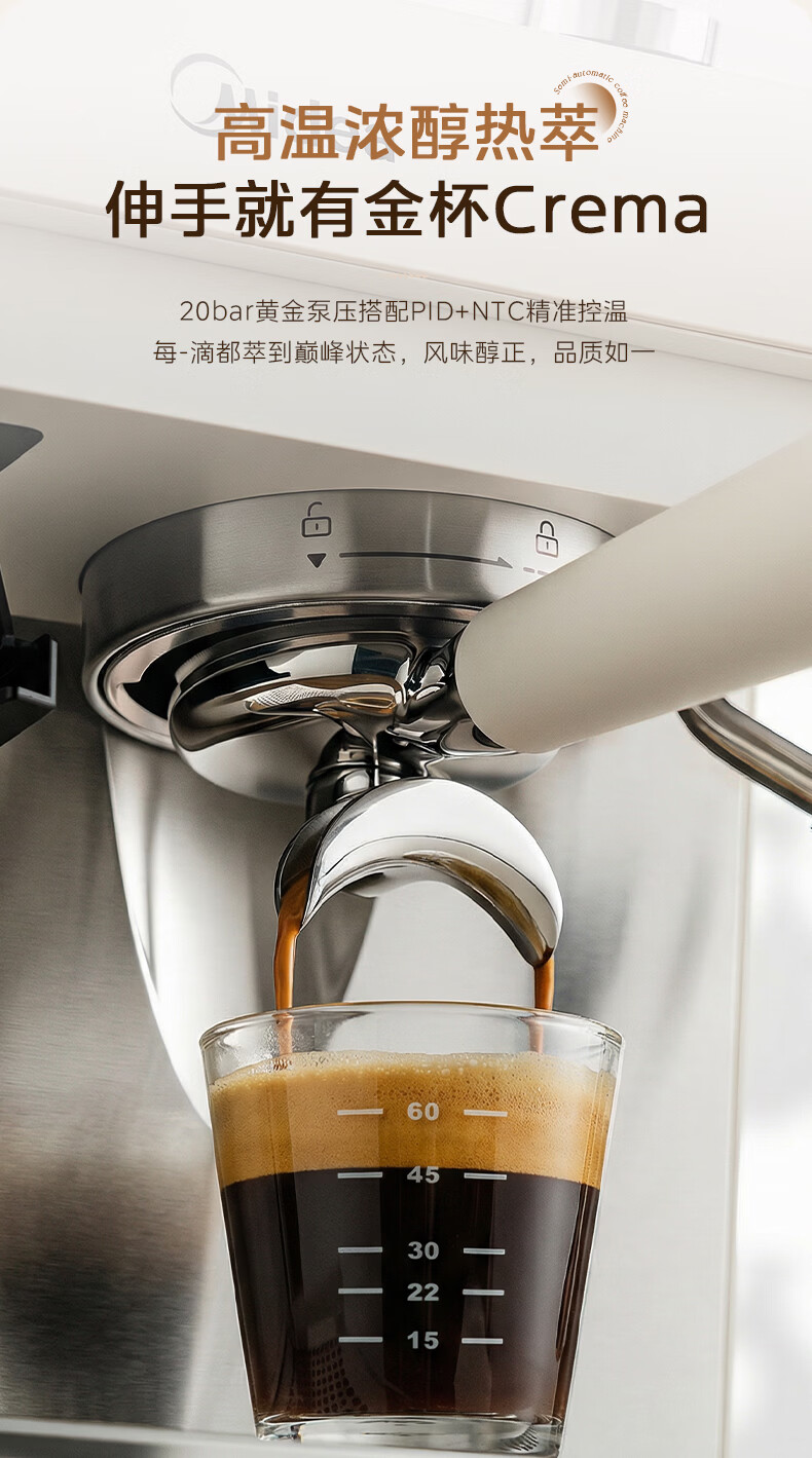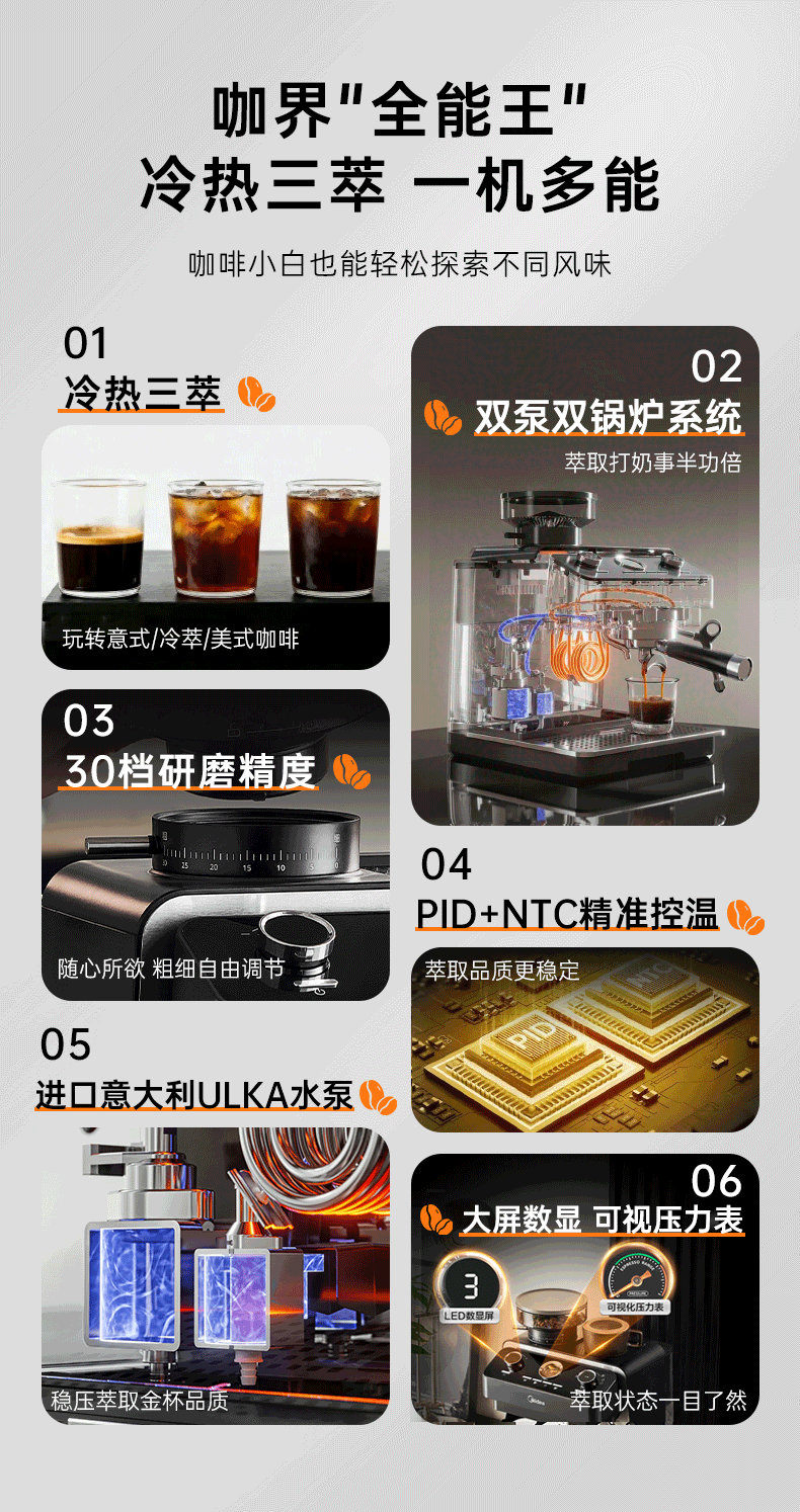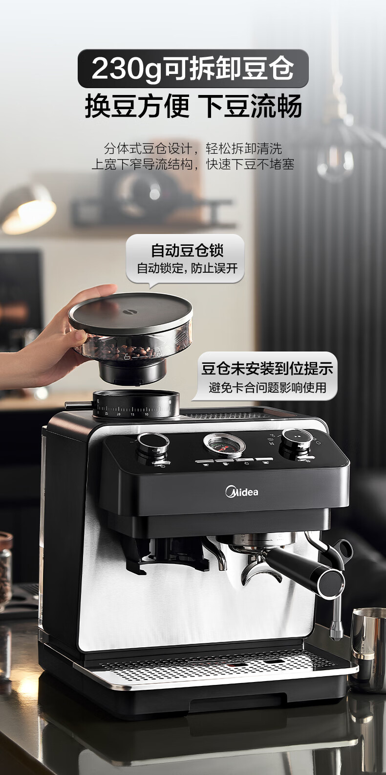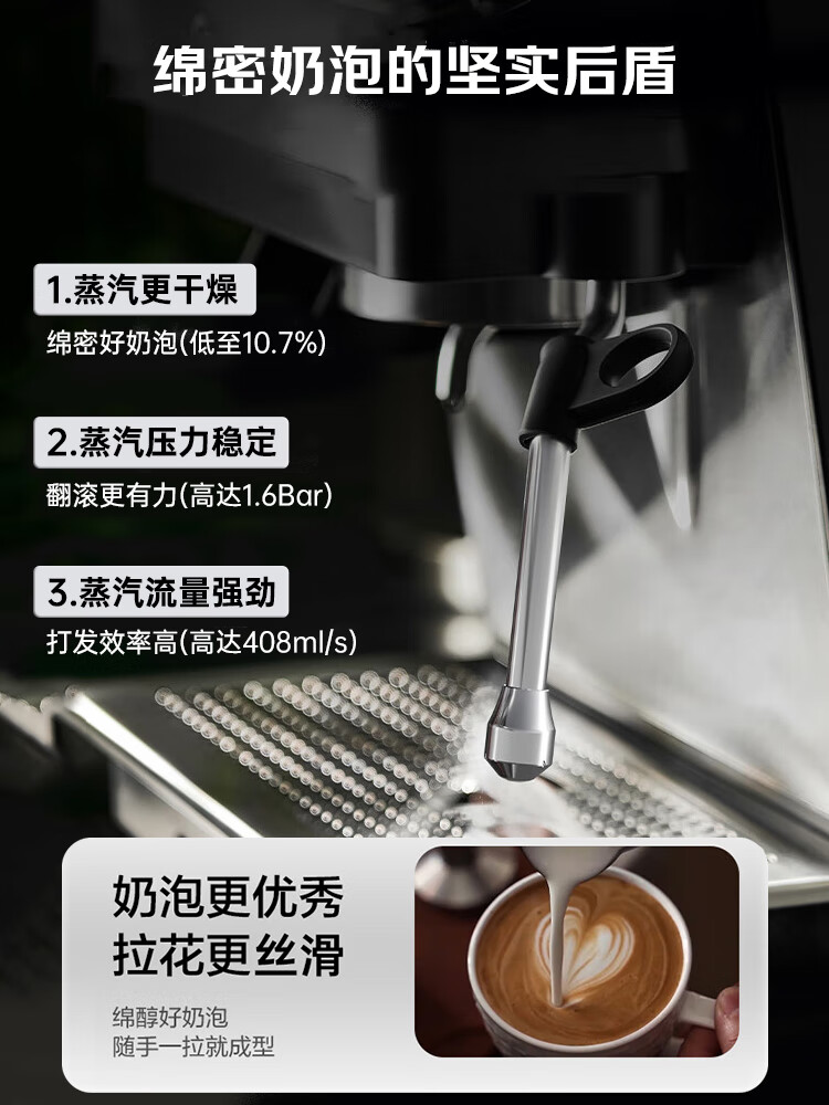 美的(Midea)半自动咖啡机磨豆机冷萃研磨一体机家用意式浓缩双锅炉可视压力30档研磨 【玄武】MA-GE5810黑武士
