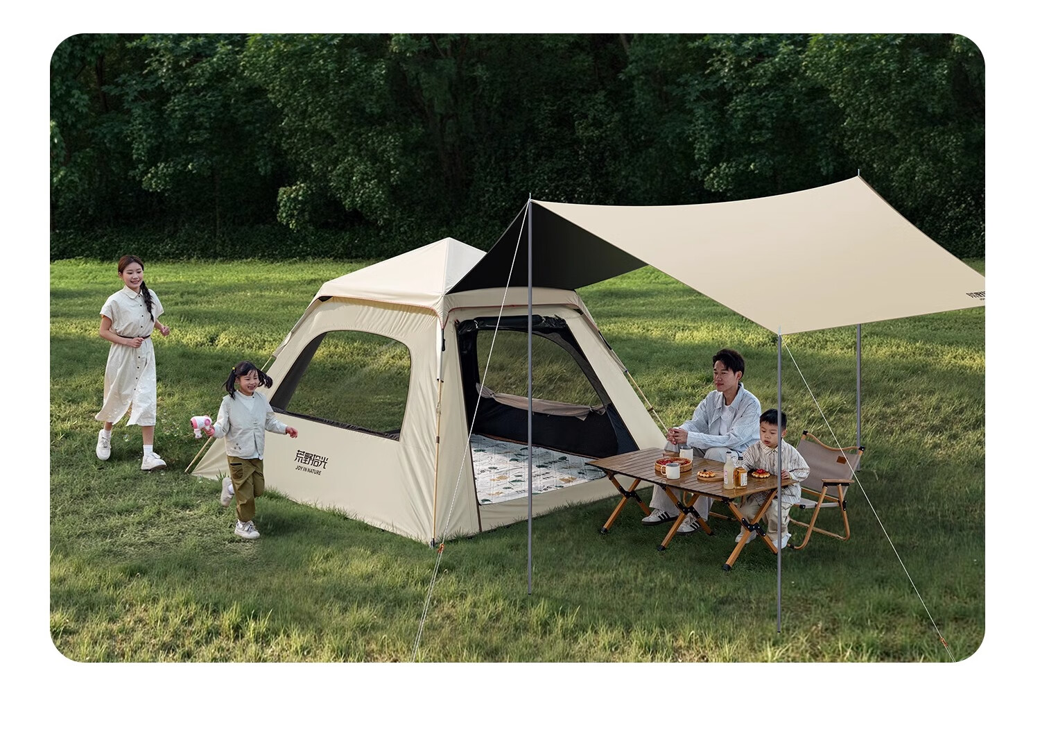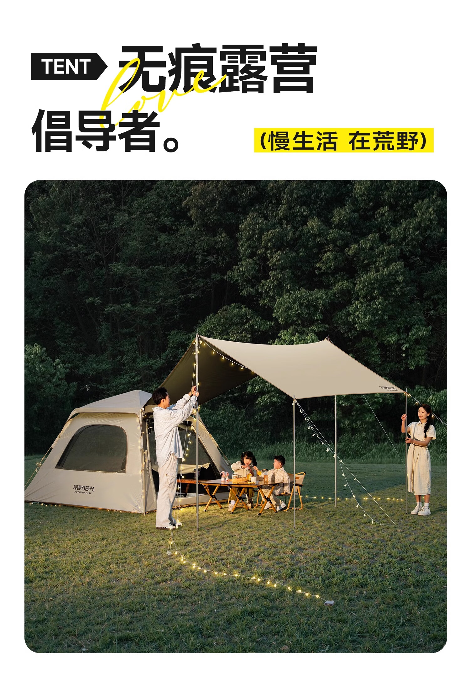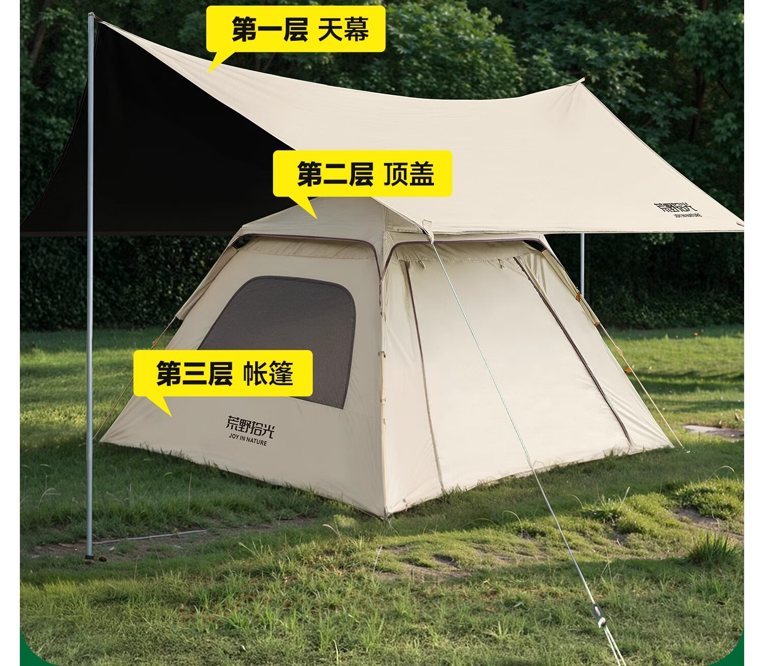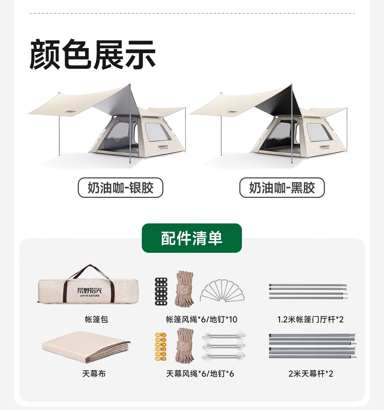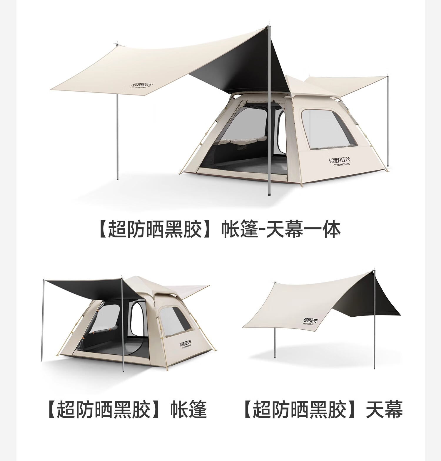 荒野拾光帐篷户外折叠便携式野营过夜防雨加厚黑胶天幕二合一露营装备全套 5-9人丨银胶天幕+帐篷加大号+双垫