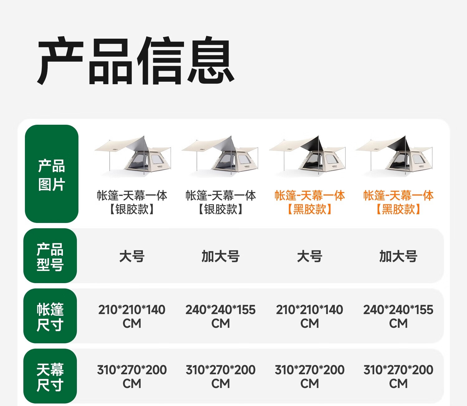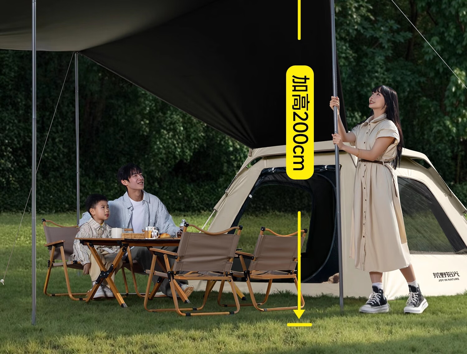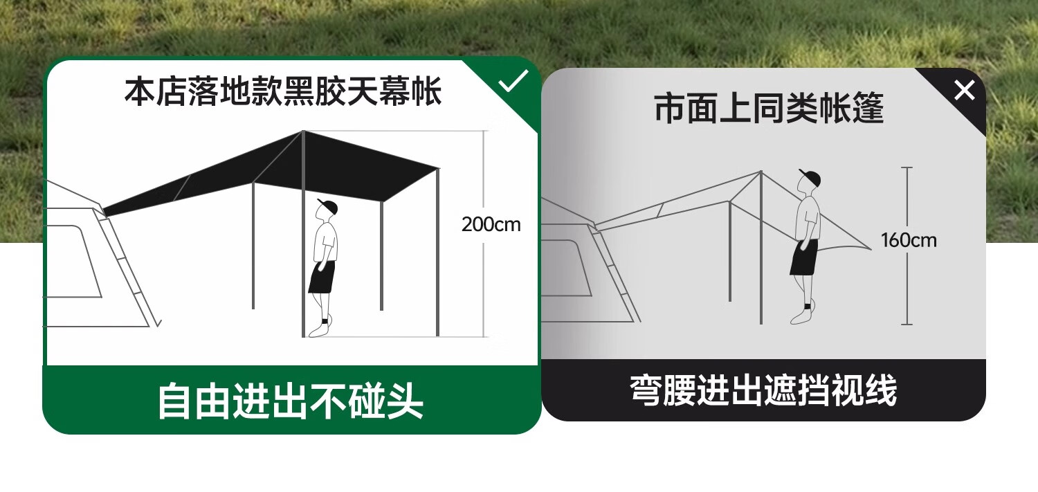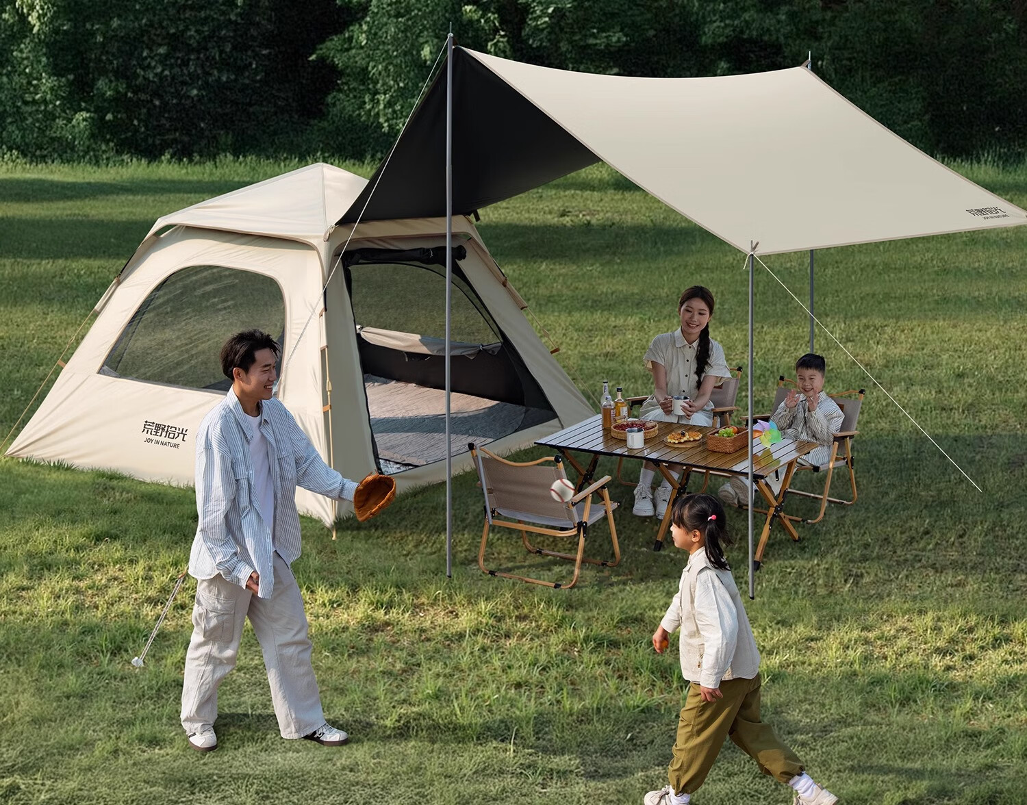 荒野拾光帐篷户外折叠便携式野营过夜防雨加厚黑胶天幕二合一露营装备全套 5-9人丨银胶天幕+帐篷加大号+双垫
