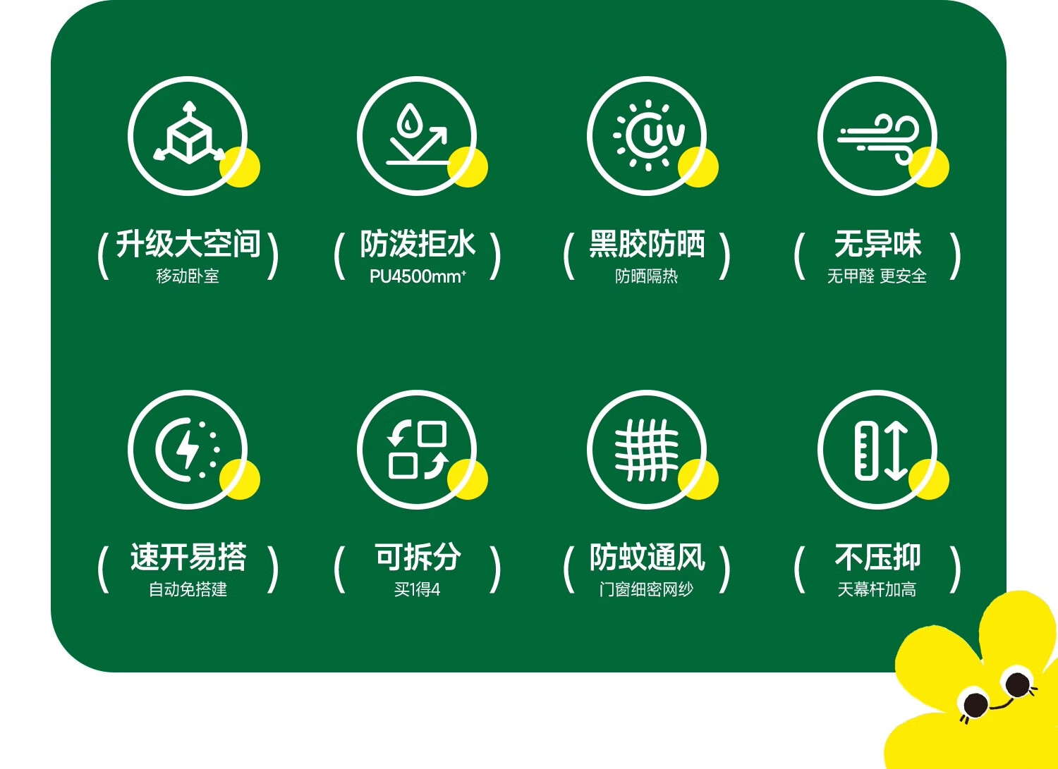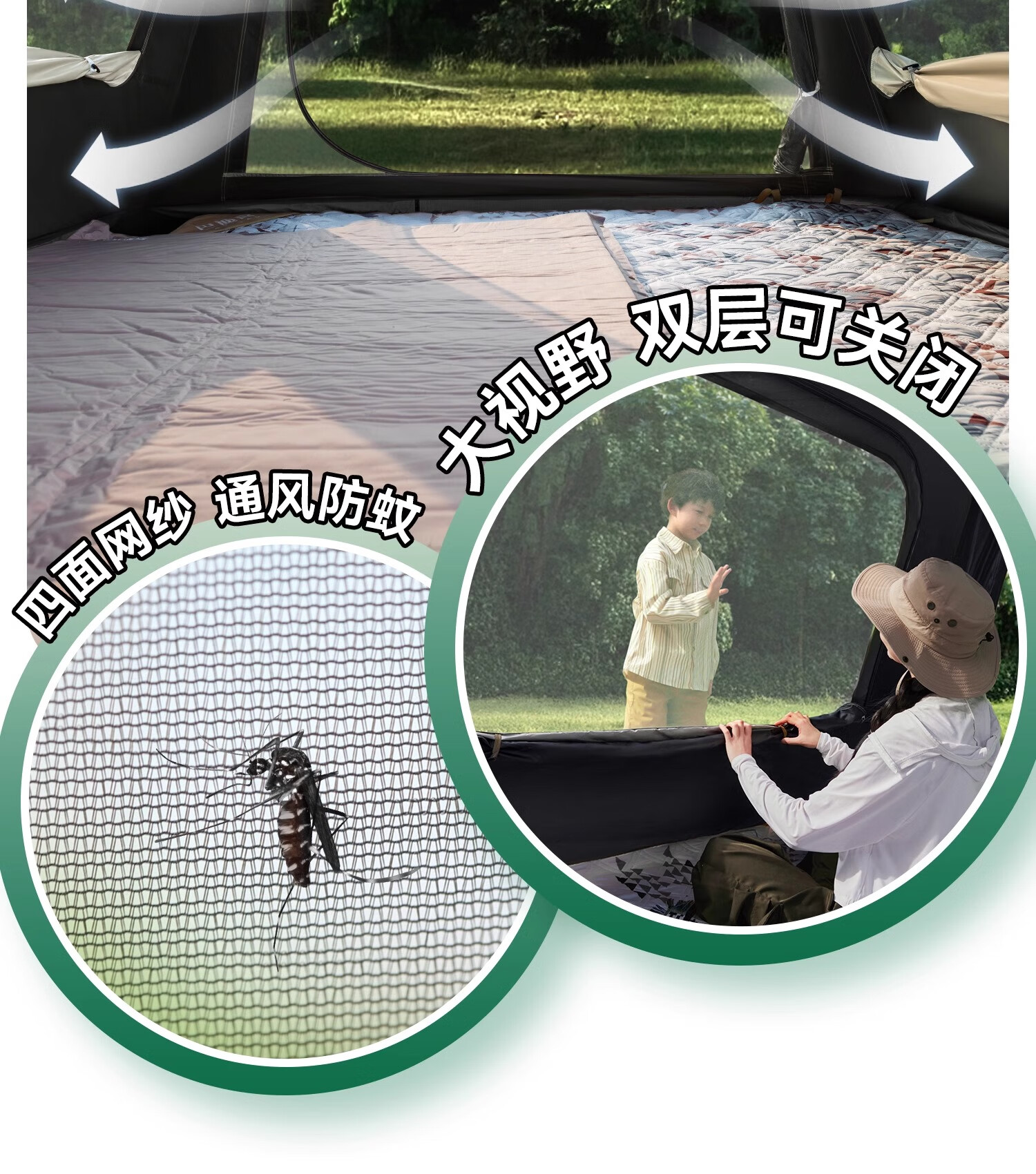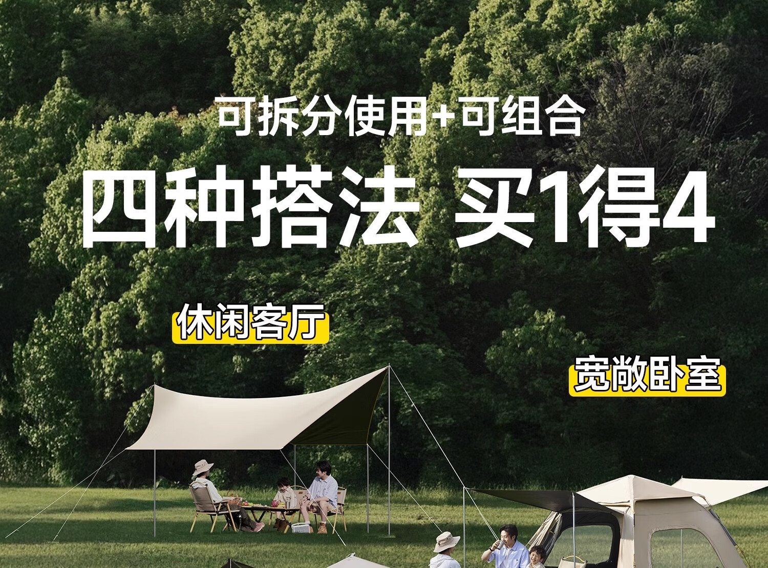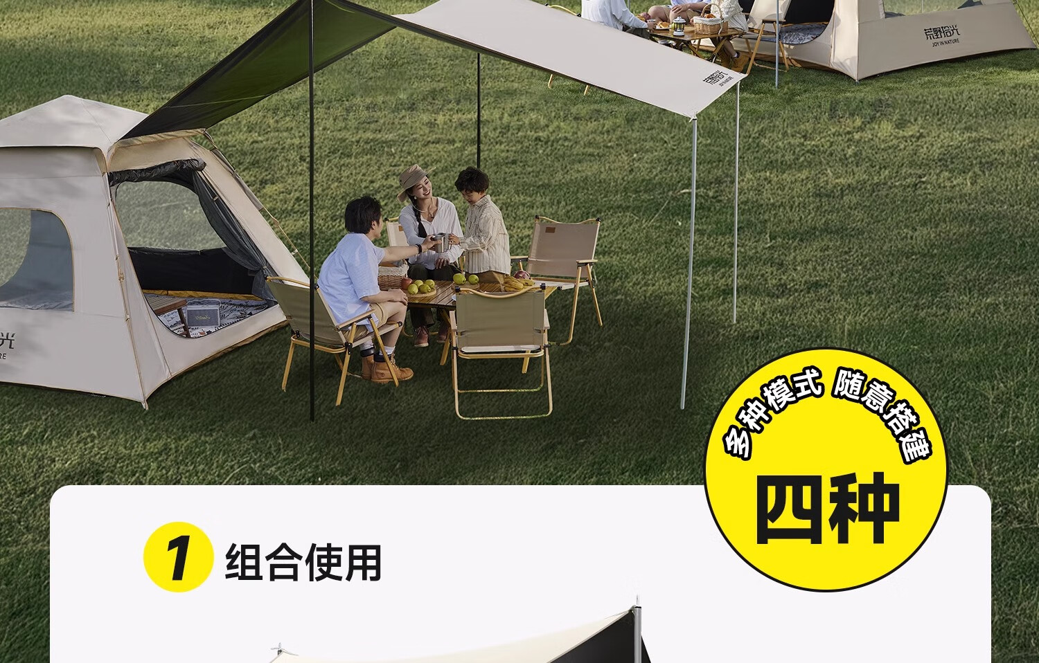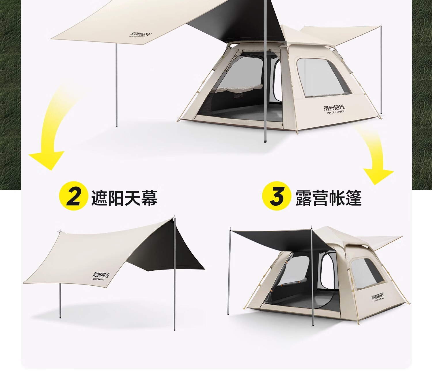 荒野拾光帐篷户外折叠便携式野营过夜防雨加厚黑胶天幕二合一露营装备全套 5-9人丨银胶天幕+帐篷加大号+双垫