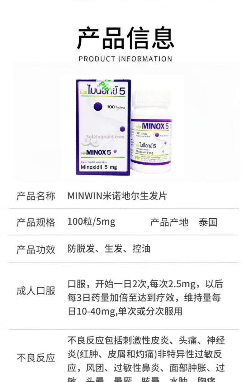 Minoxidil泰版米诺地尔口服生发片焕活毛脂溢性脱发地中海防脱发密发固发 新款升级泰国版 100片 10mg*1盒