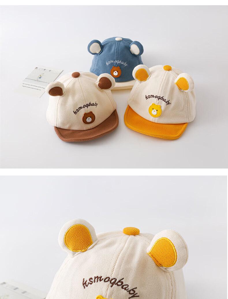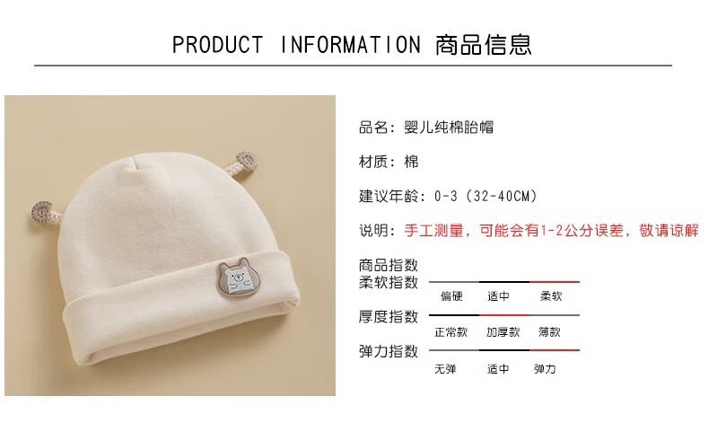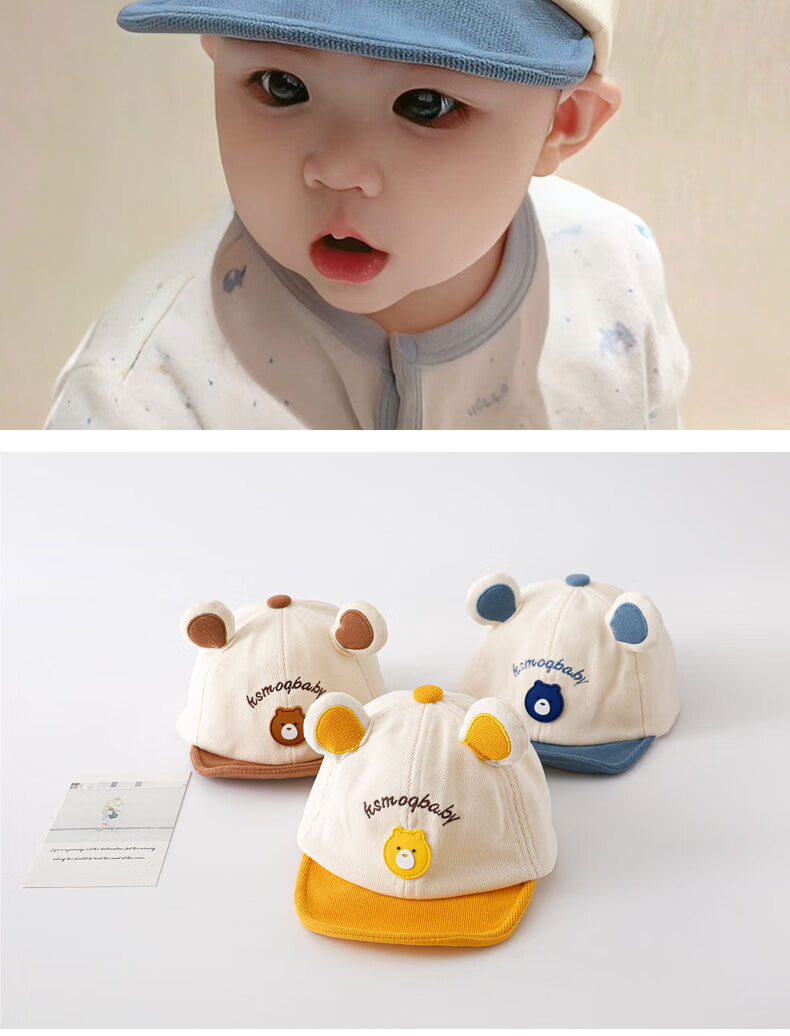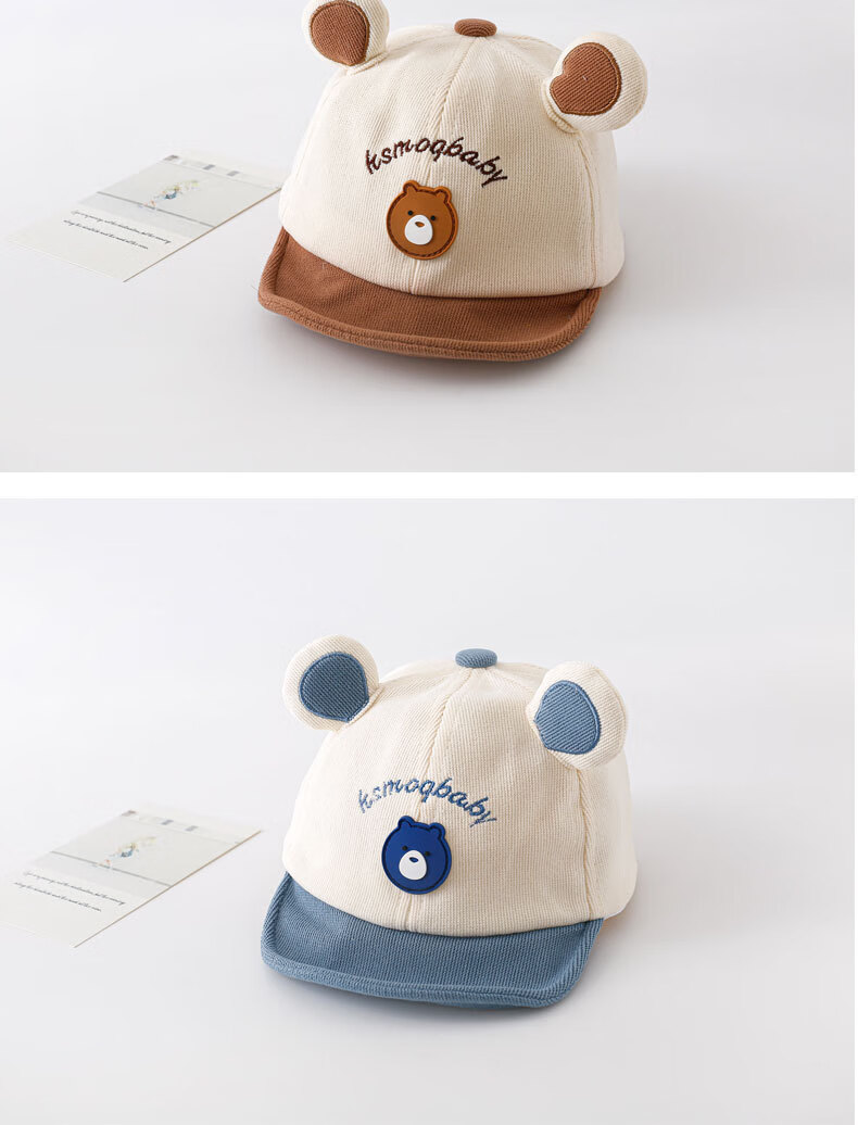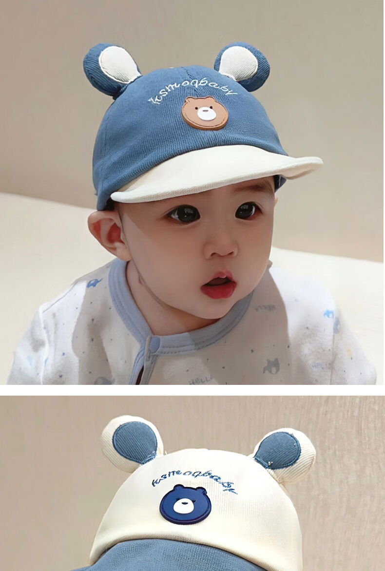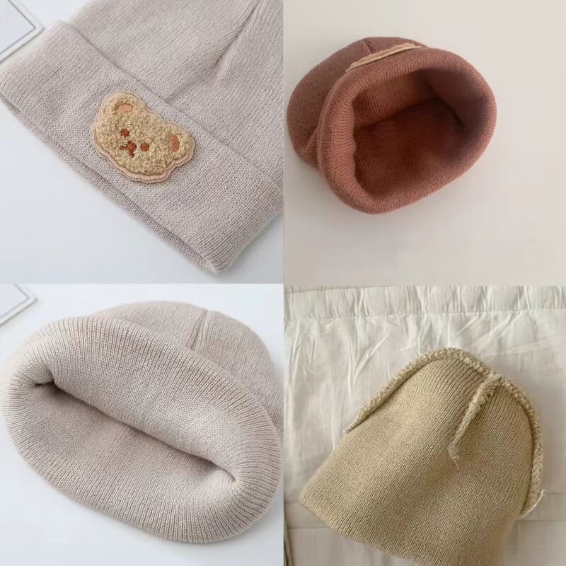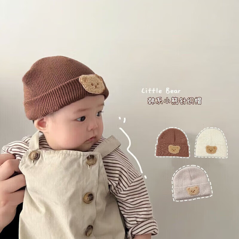 彩虹房子春秋男女宝宝儿童帽胎帽合集 小熊帽浅咖色适用头围38~45cm