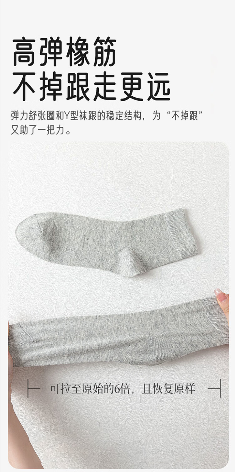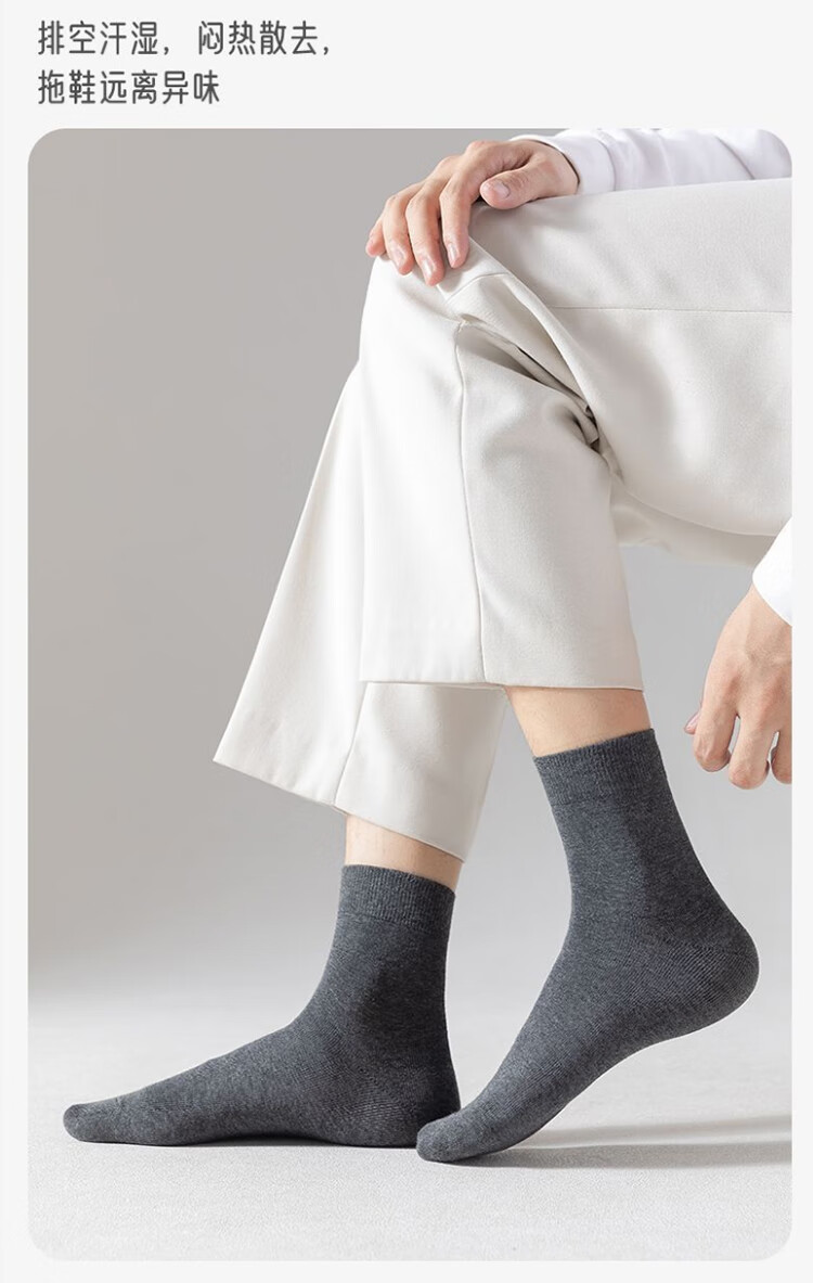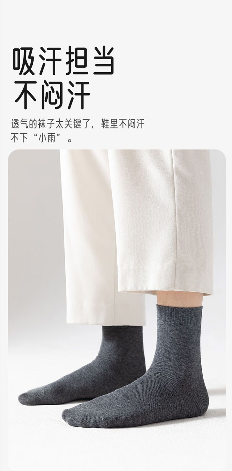 东方缘8双装新疆棉中筒袜吸汗透气百搭休闲纯色运动袜抗菌学生袜 男士中筒袜 8双 均码