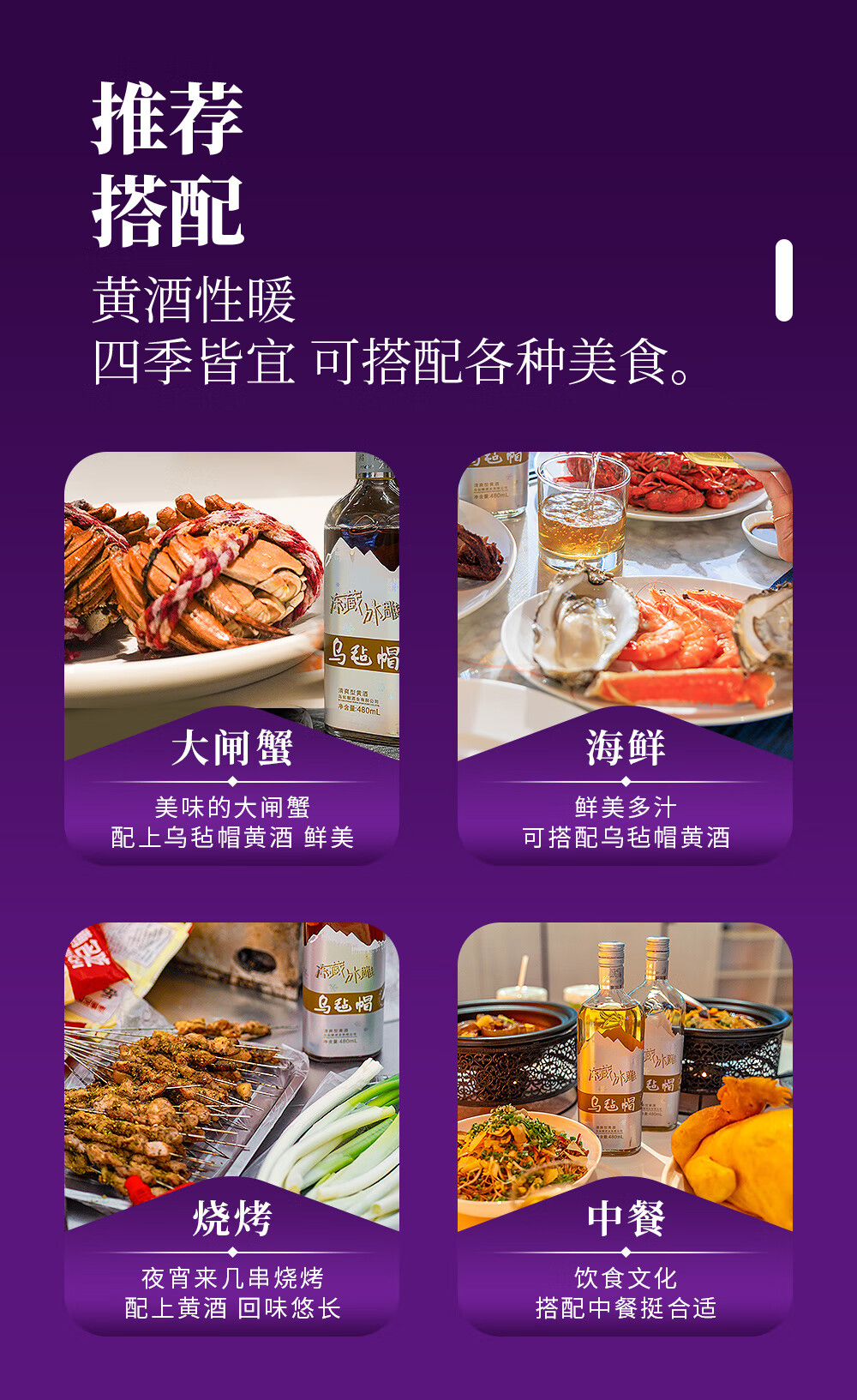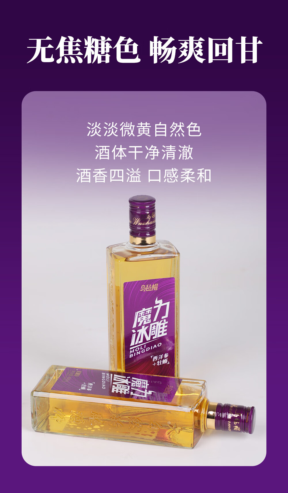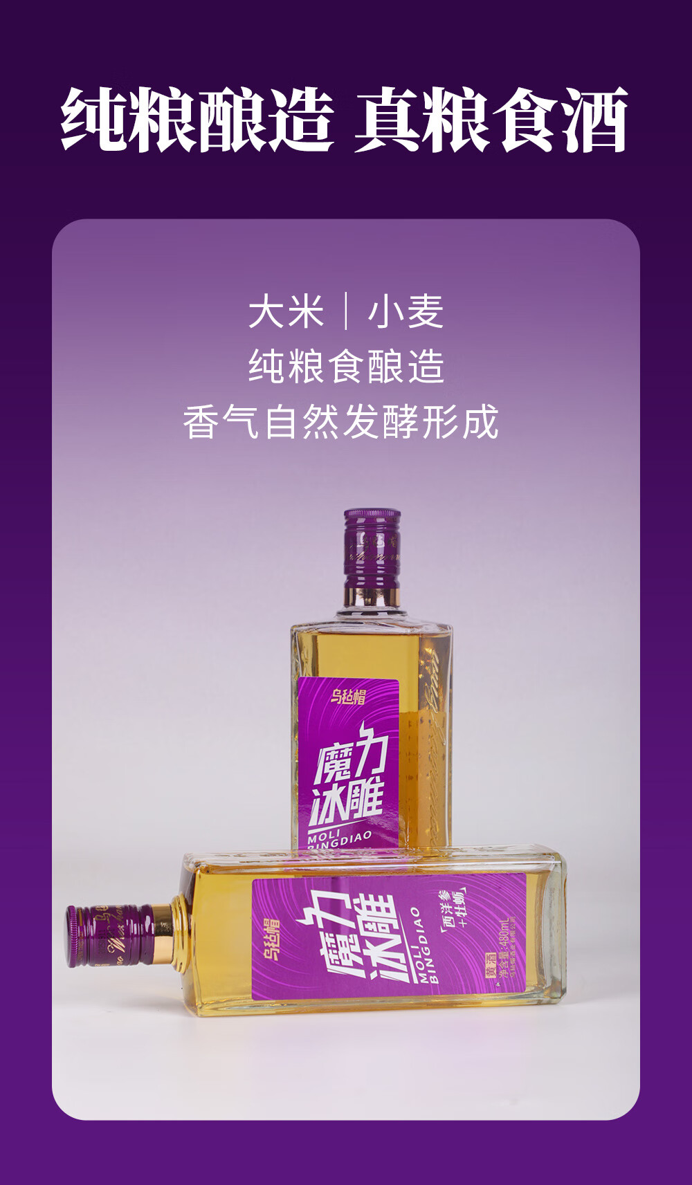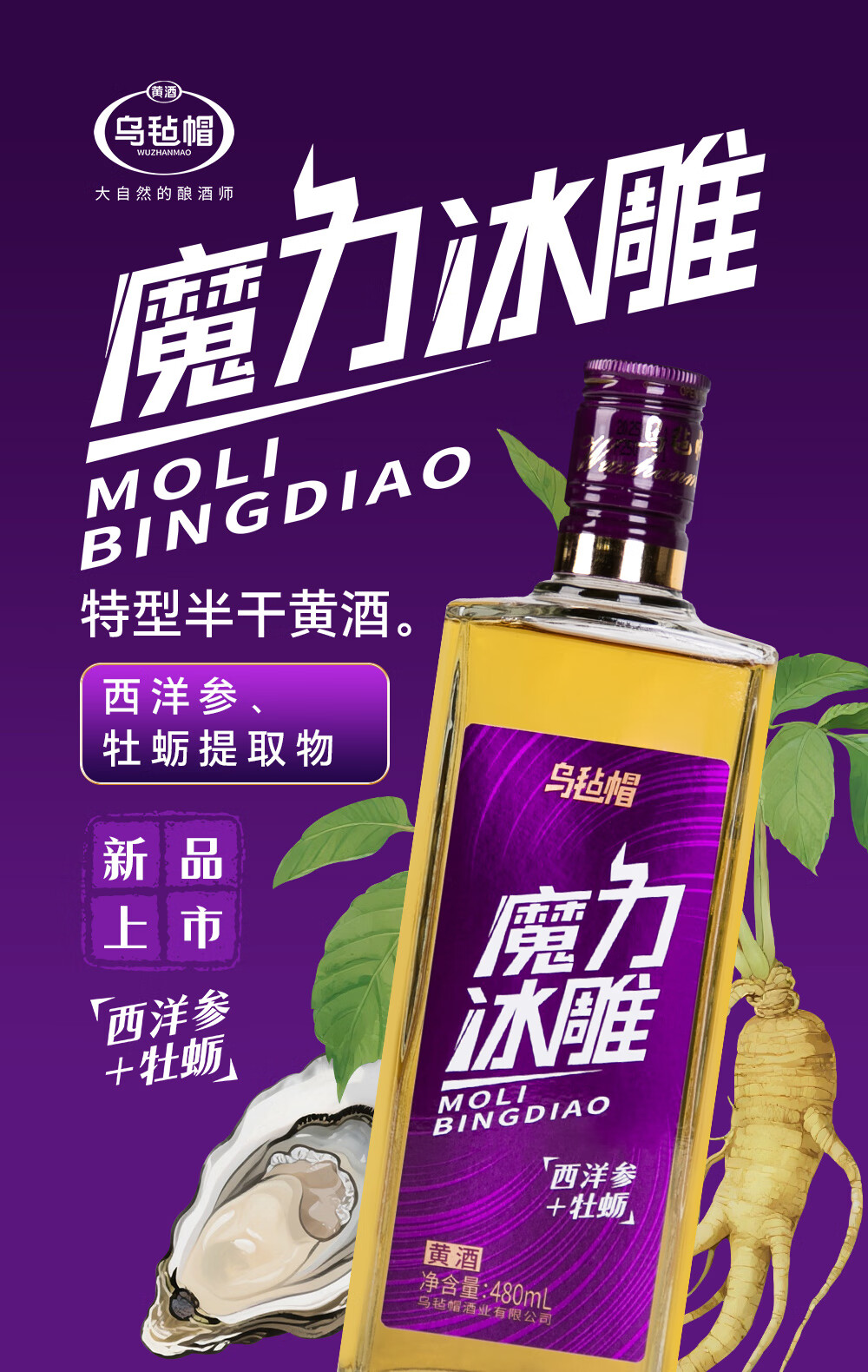 乌毡帽魔力冰雕绍兴工艺西洋参牡蛎提取物无焦糖色黄酒480ml*6瓶 乌毡帽魔力冰雕黄酒 480mL 6瓶 整箱装