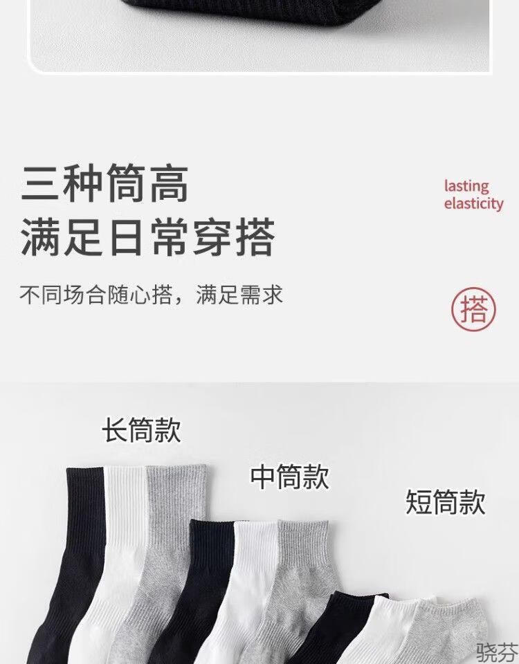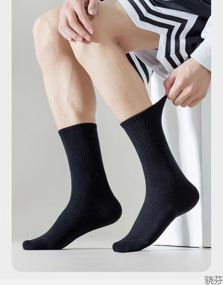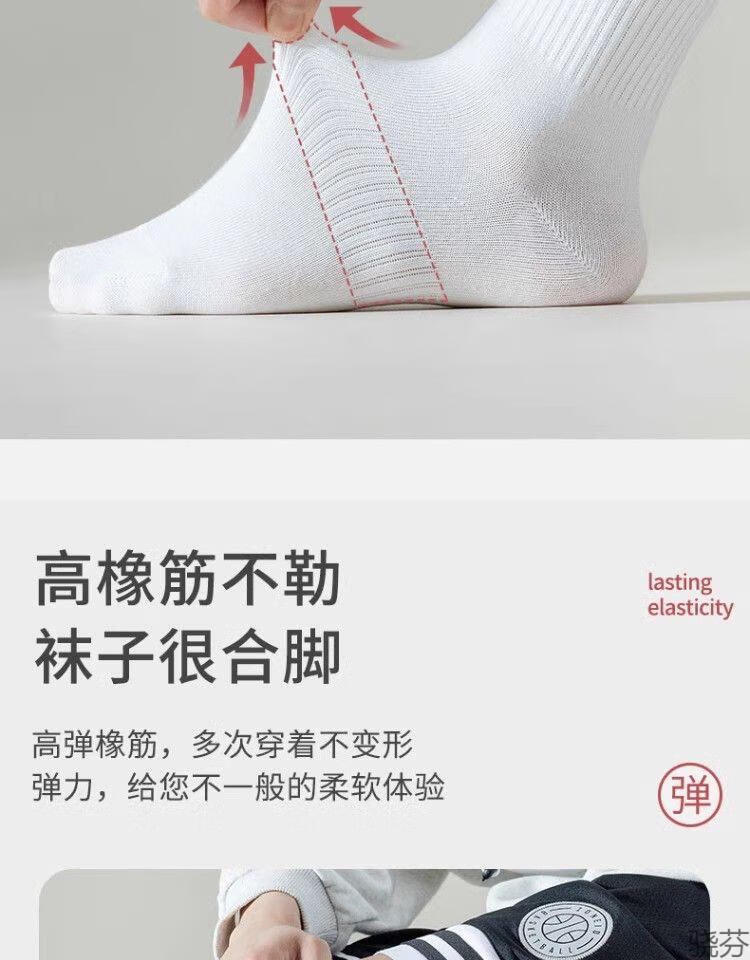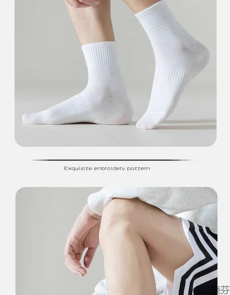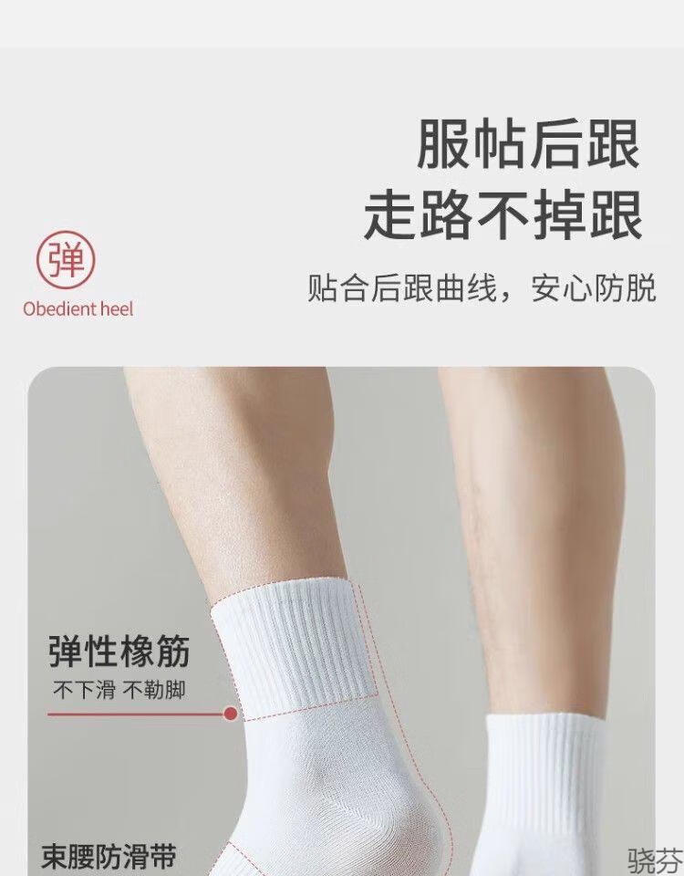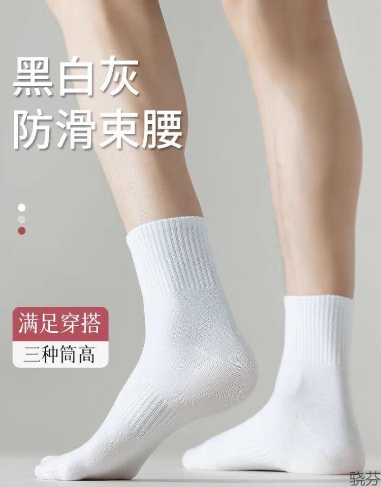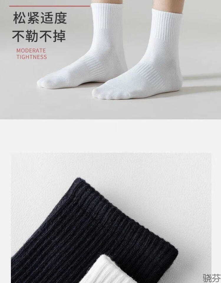 骁芬【新疆棉】袜子男款白色中筒男生运动男士短袜纯色诸暨袜子长筒 白色【中筒】新疆棉5双 均码【36-43】