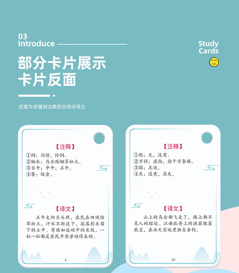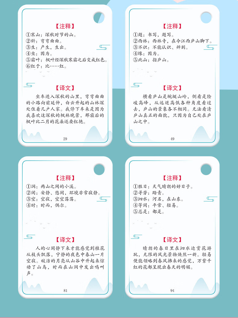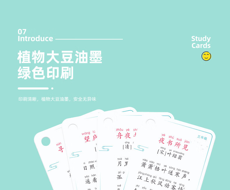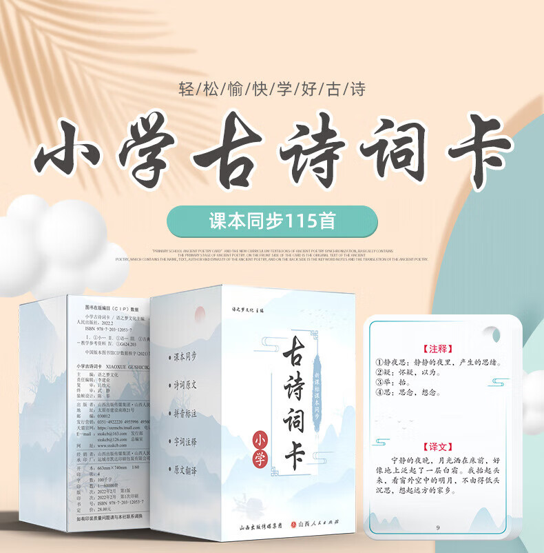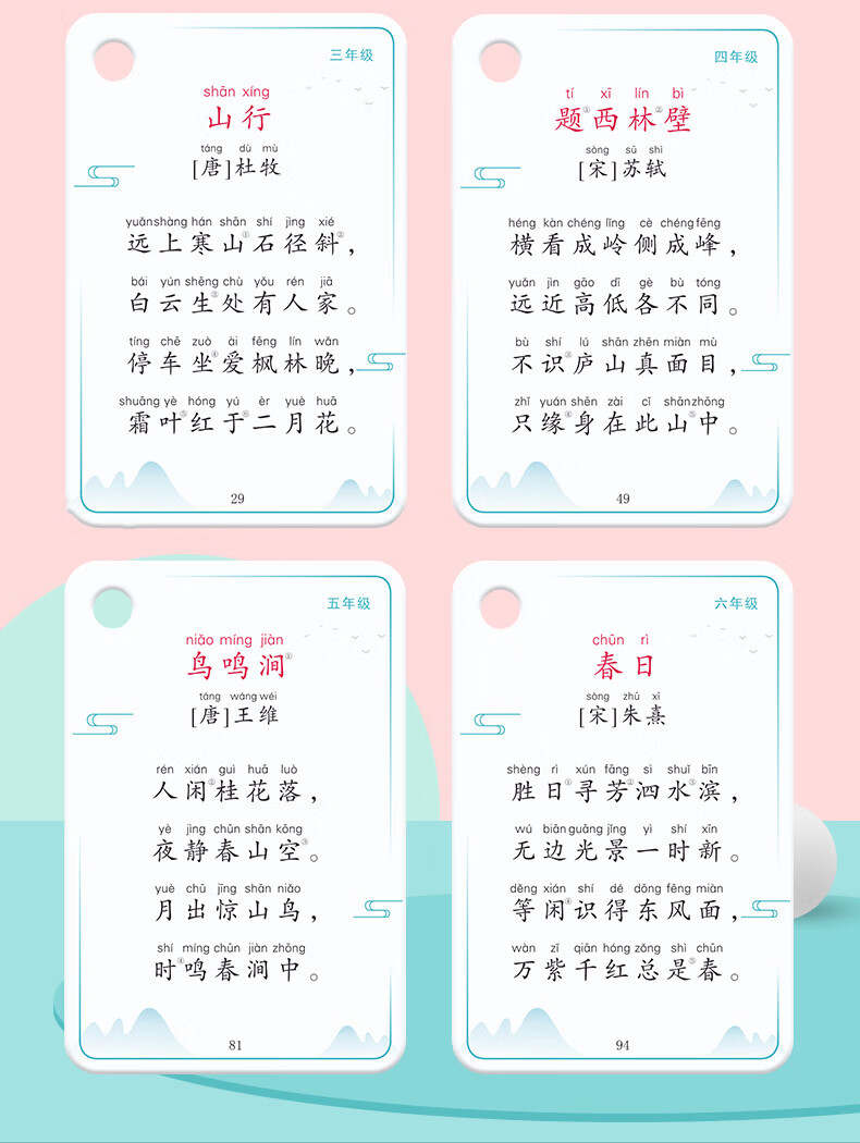 京佳儿童古诗卡片点读全套小学生1到6年级同步人教版儿童必背唐诗 小学古诗词卡/115首230面