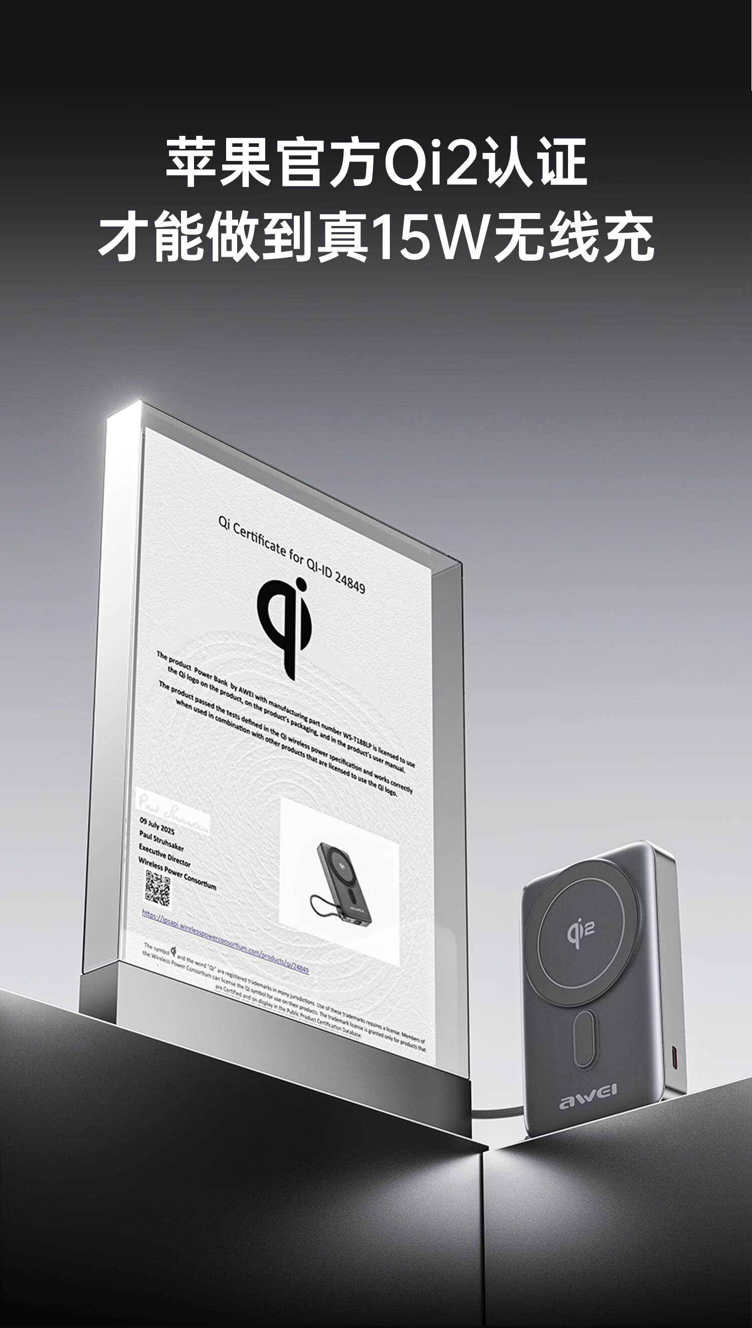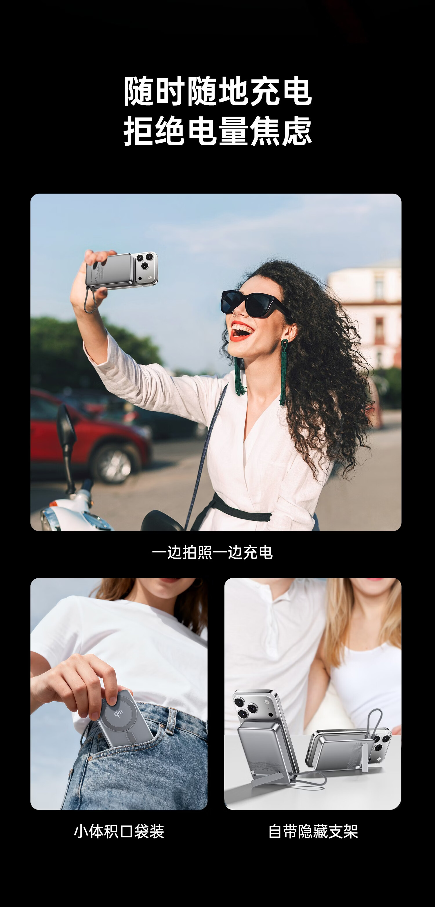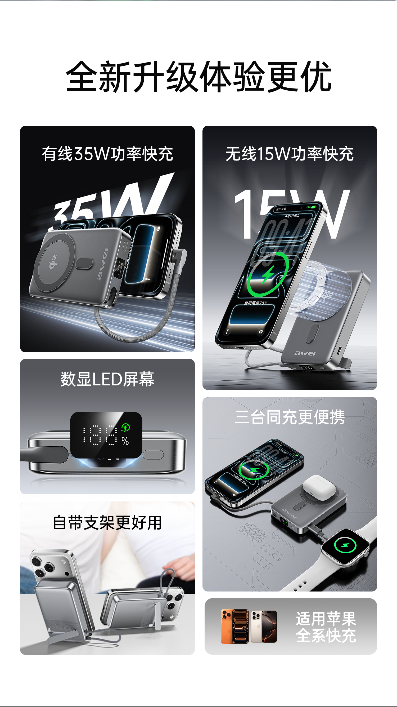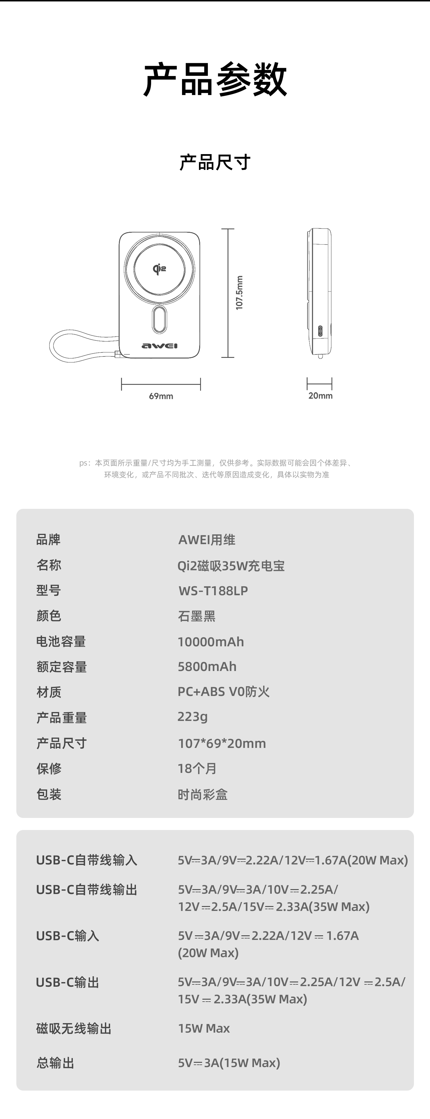 用维(AWEI)充电宝35W快充自带线三合一Qi2磁吸magsafe支架超薄式移动电源适用苹果【国家3C认证可上飞机】 【石墨黑】Qi2磁吸丨35W快充丨自带支架 10000mAh