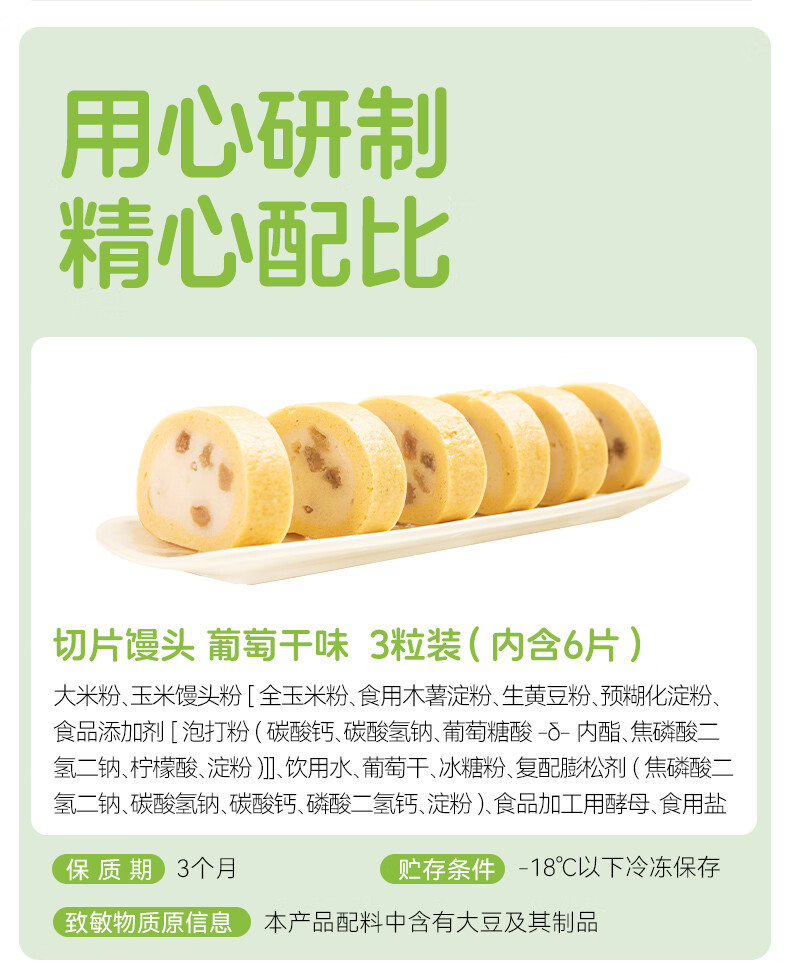 佑儿圆切片馒头210g葡萄干味孩子糕点早餐馒头片 独立无麸质生产线 葡萄干味