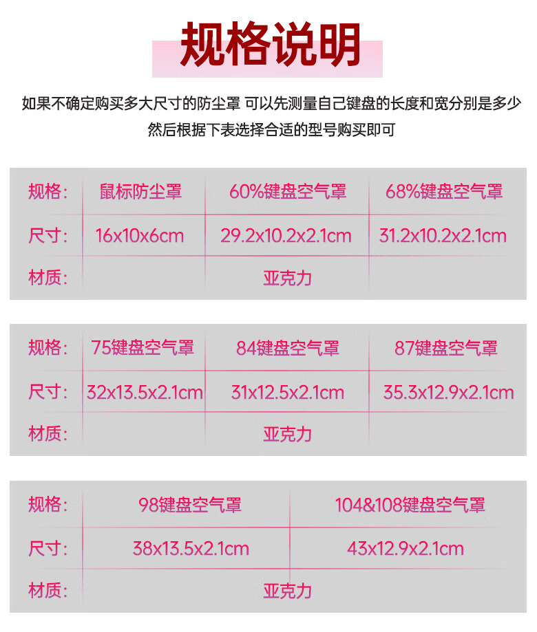 圆佑堂键盘防尘罩亚克力68磨砂透明60键8798104键NJ68阿米洛FL980键帽罩 磨砂鼠标罩160*100*50mm.