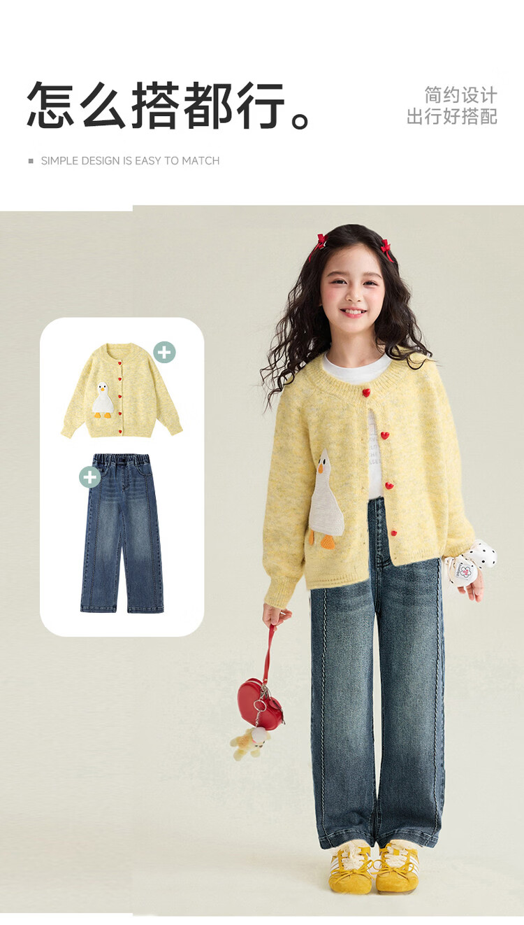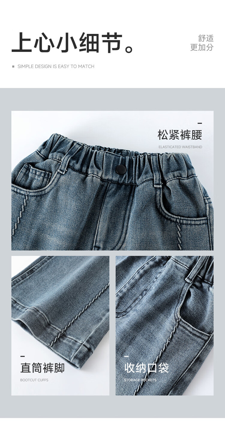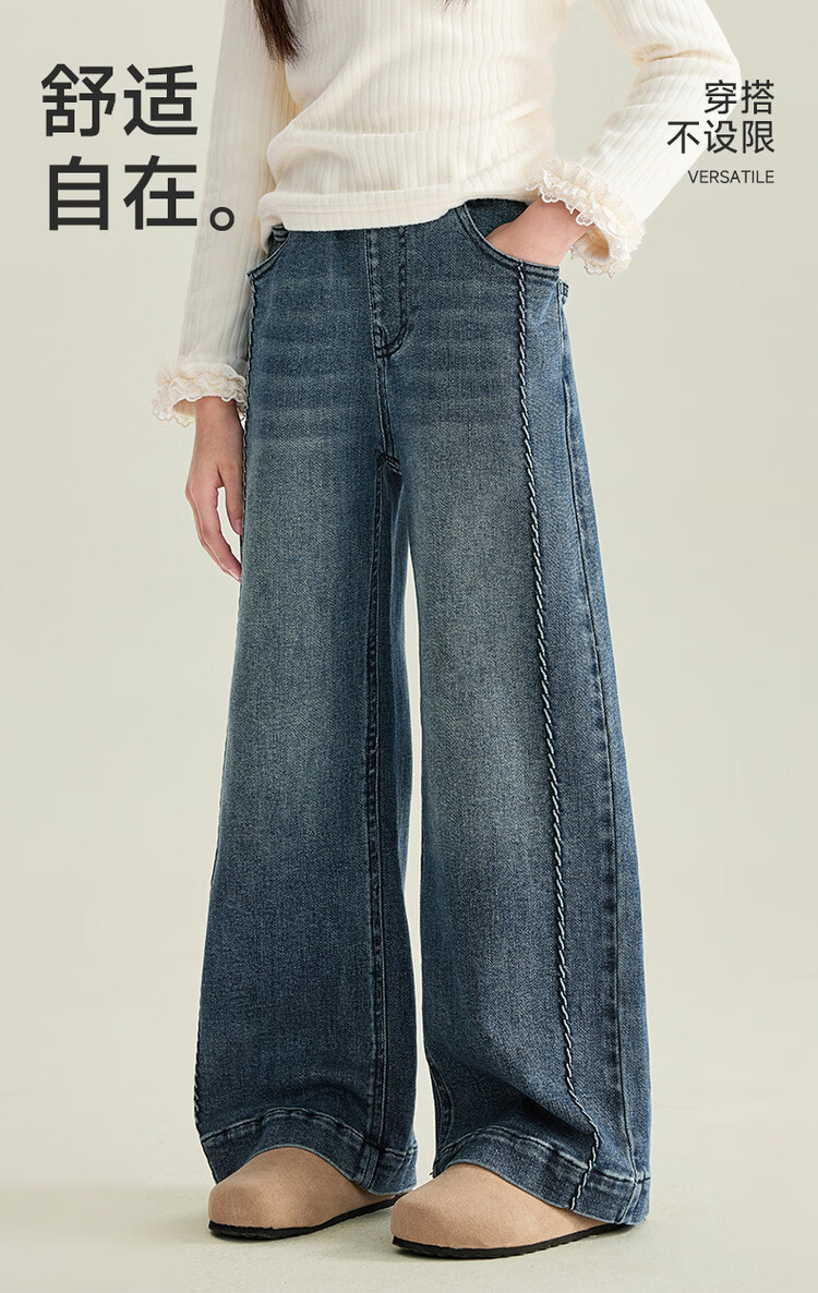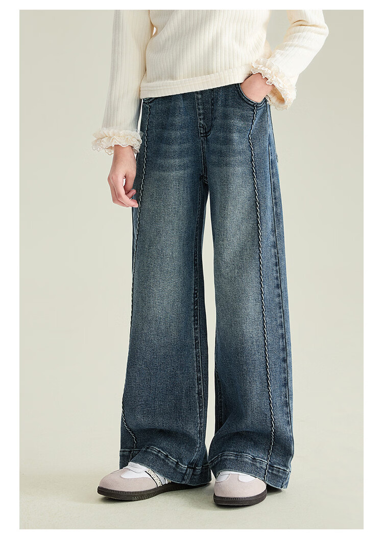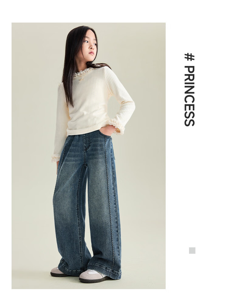 媛媛公主【经典百搭高棉牛仔裤】儿童长裤秋冬款女童加绒柔软阔腿裤直筒裤 牛仔蓝(加绒加厚款) 110