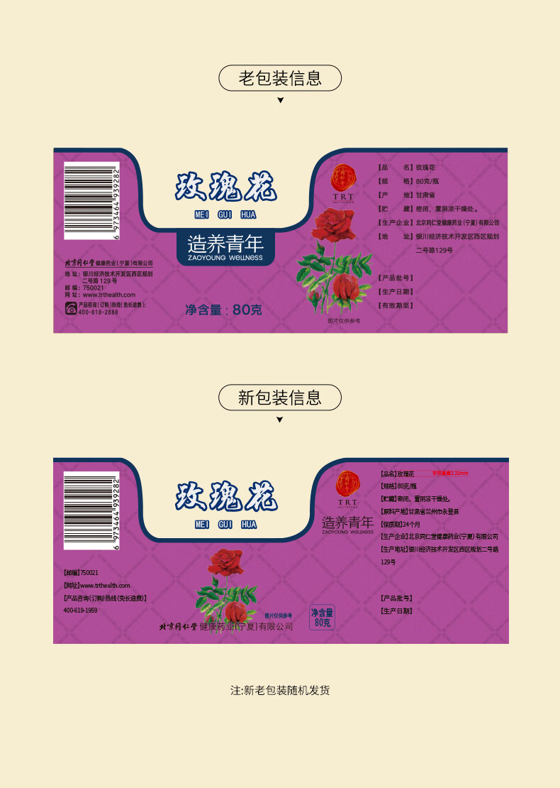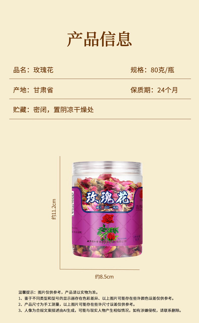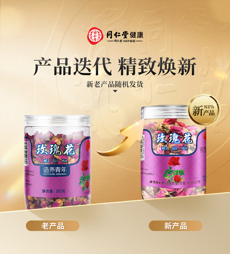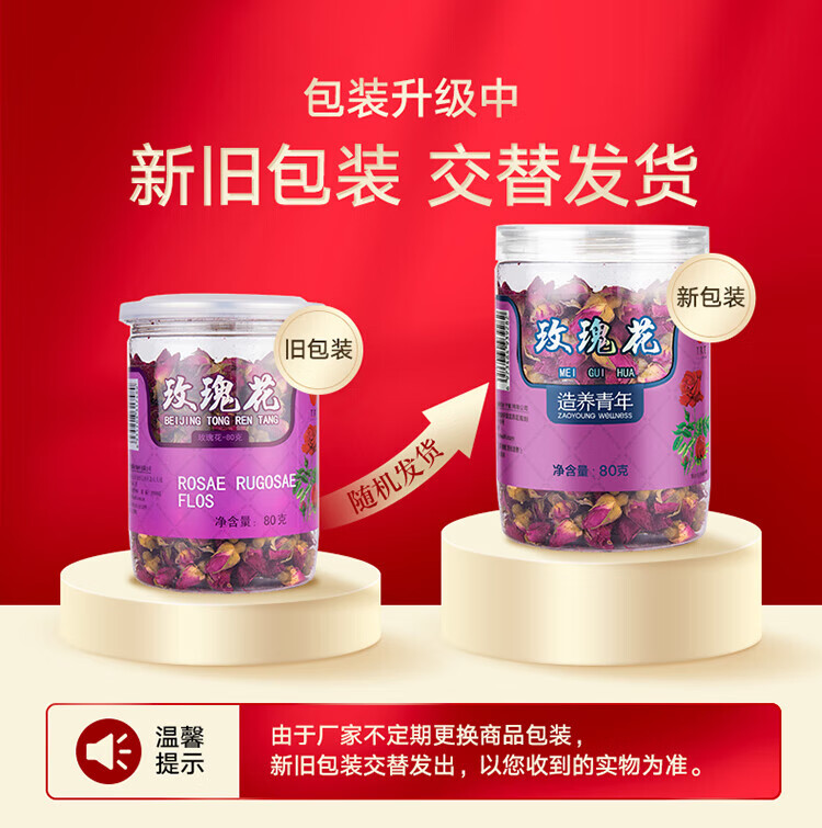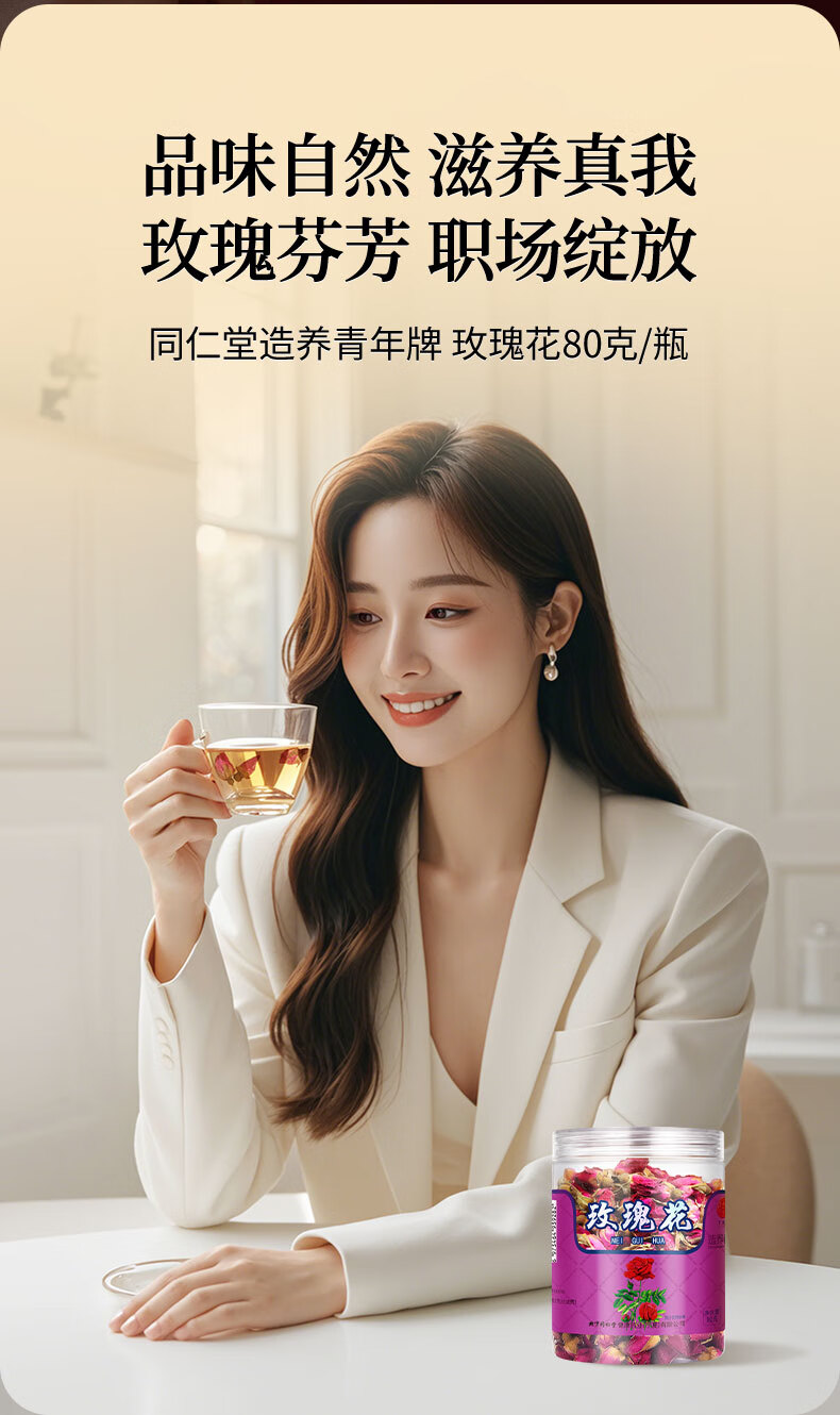 同仁堂品牌 北京同仁堂玫瑰花80g玫瑰花干玫瑰花茶泡水搭菊花女神养生茶