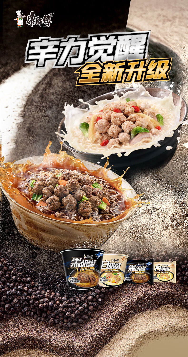 康师傅方便面【JDG无畏推荐】黑白胡椒 黑胡椒牛排味面五连包104g*5泡面